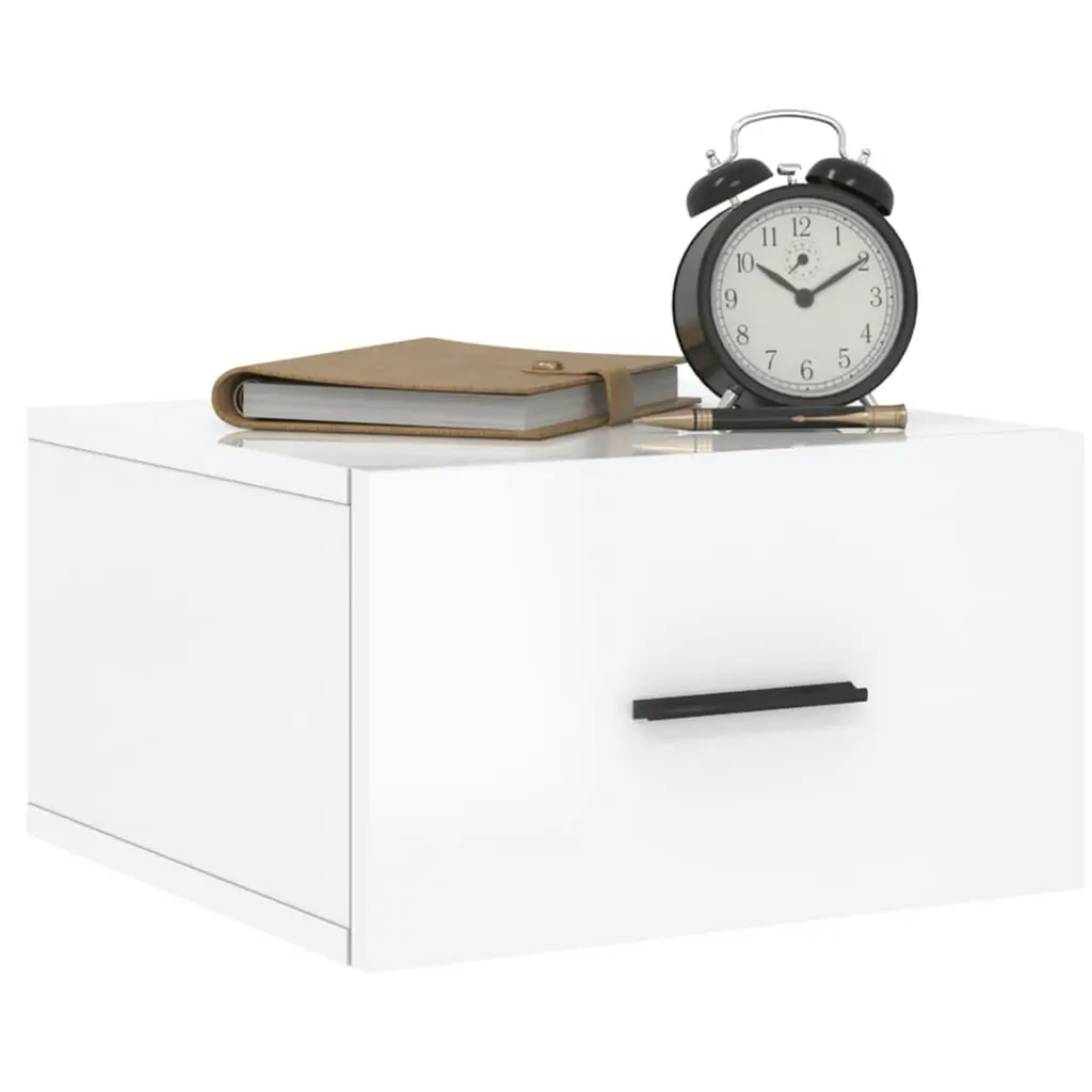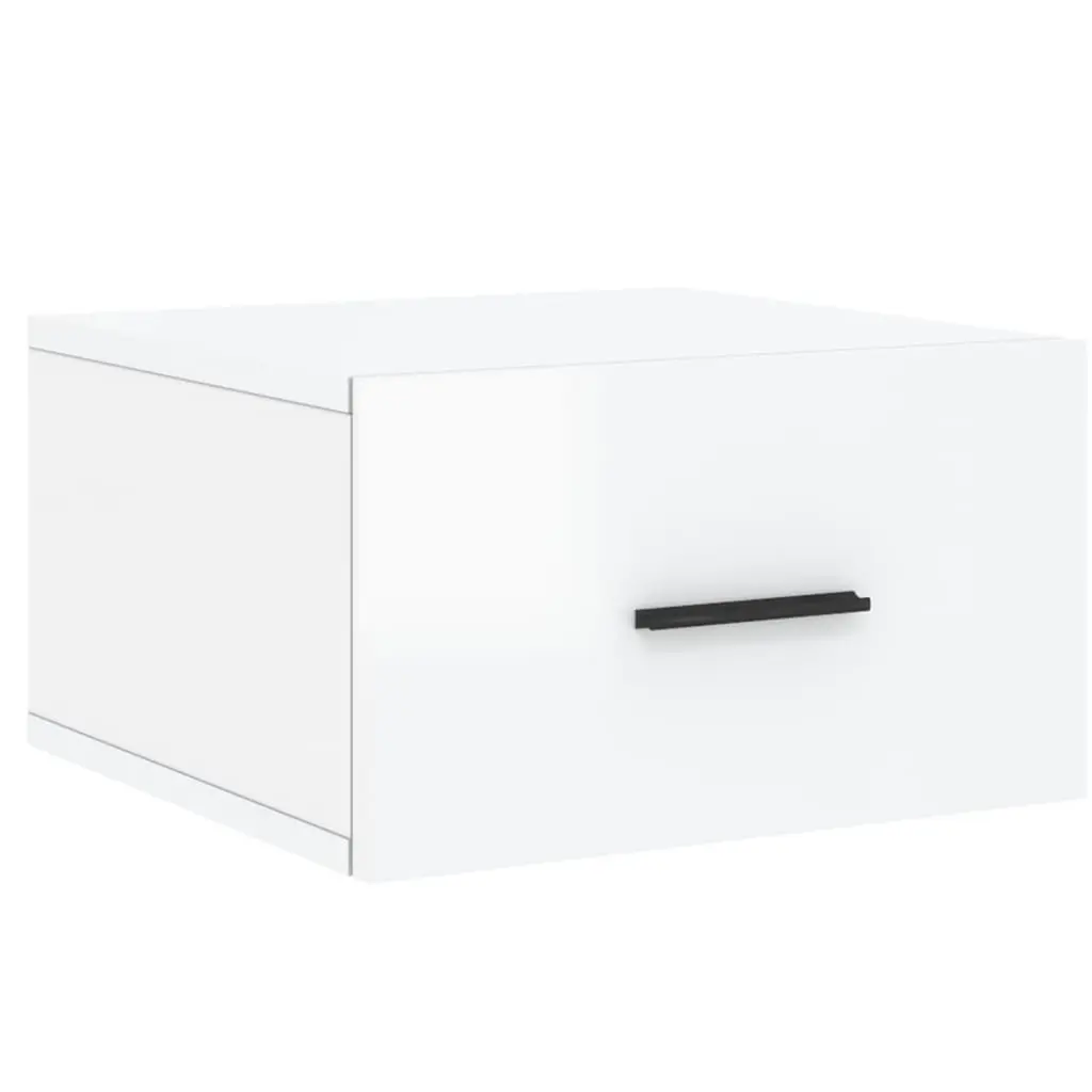 This wall-mounted bedside cabinet set is a stylish solution for modern living, blending practicality with a sleek design. With its high-gloss white finish and minimalist look, these cabinets provide a classy way to store your essentials while maximizing your floor space, making them perfect for any contemporary bedroom or living area. Ample Storage: Each cabinet has loads of space for your books, gadgets, or personal items, keeping your essentials close by. Perfect for tight spots, these cabinets tidy up surfaces while enhancing your decor.Wall-Mounted Design: By mounting on the wall, you free up valuable floor space, making your room feel bigger. This design not only improves accessibility but also adds a stylish twist to your interior.High-Gloss Finish: The stunning high-gloss finish brightens up the whole room with its reflective surface, creating a fresh and airy feel. It's not just a great look but also easy to clean with a quick wipe.Versatile Use: These cabinets can serve different purposes and fit in various setups, whether as bedside tables or sleek storage in your living room. Their straightforward design lets them blend in easily with your current decor.Easy Assembly: The cabinets come with clear instructions and need minimal tools, making them super simple to set up for anyone who wants to spruce up their space in a jiffy.