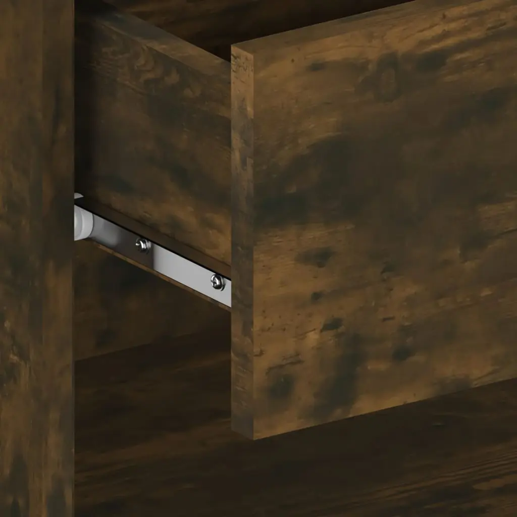 This wall-mounted bedside cabinet set is a great storage option, mixing modern style with practical use. The smoked oak finish adds a rustic touch to any bedroom while offering plenty of space for books, lamps, and other personal items. Floating design looks fab and reduces clutter.Made from moisture-resistant engineered wood for long-lasting use.Wipe-clean surface that just needs a damp cloth.Perfect for modern bedrooms, giving a sleek look.Includes one undermount drawer for hiding away stuff.
