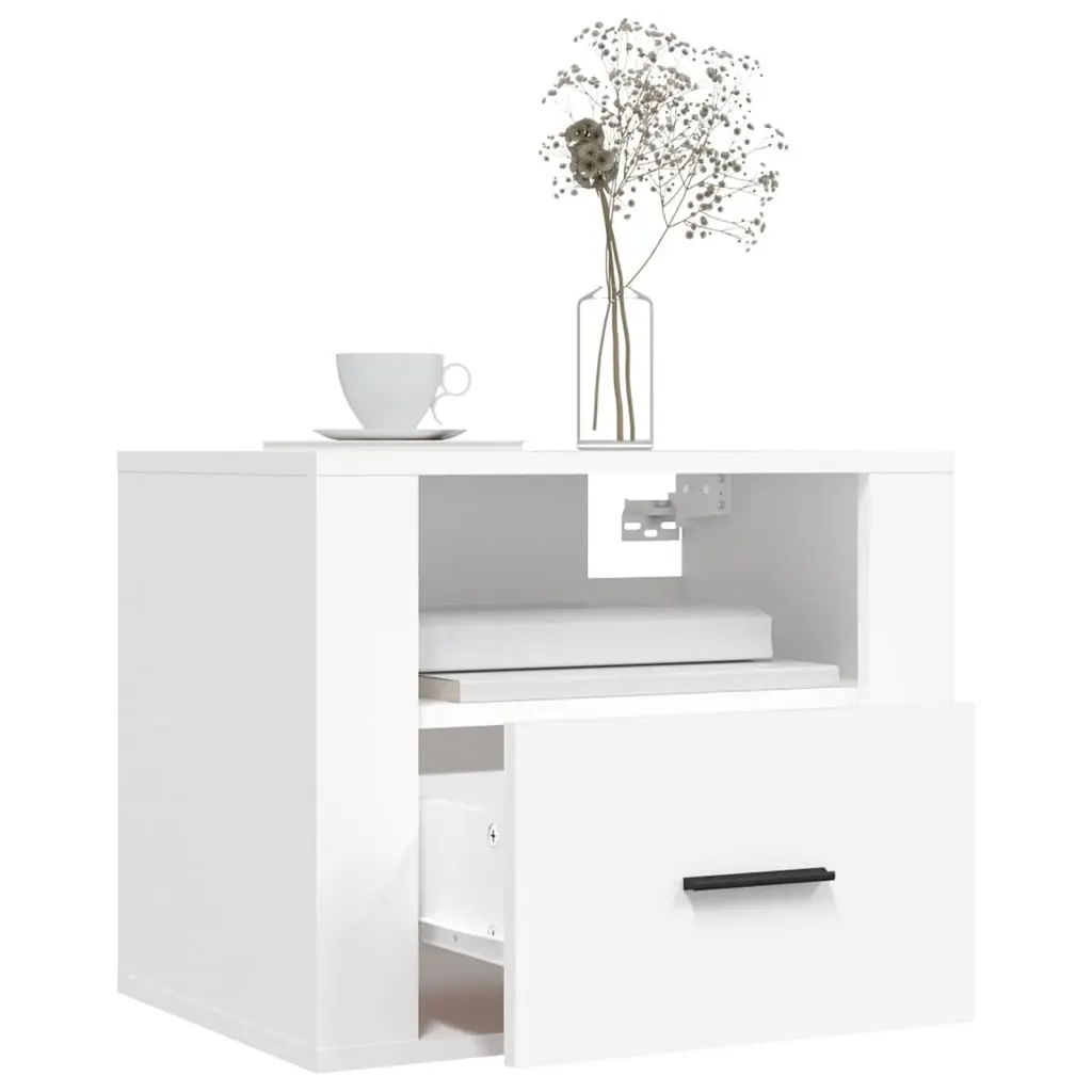Vidaxl Wall-Mounted Bedside Cabinet Set Of 2 White Engineered Wood
