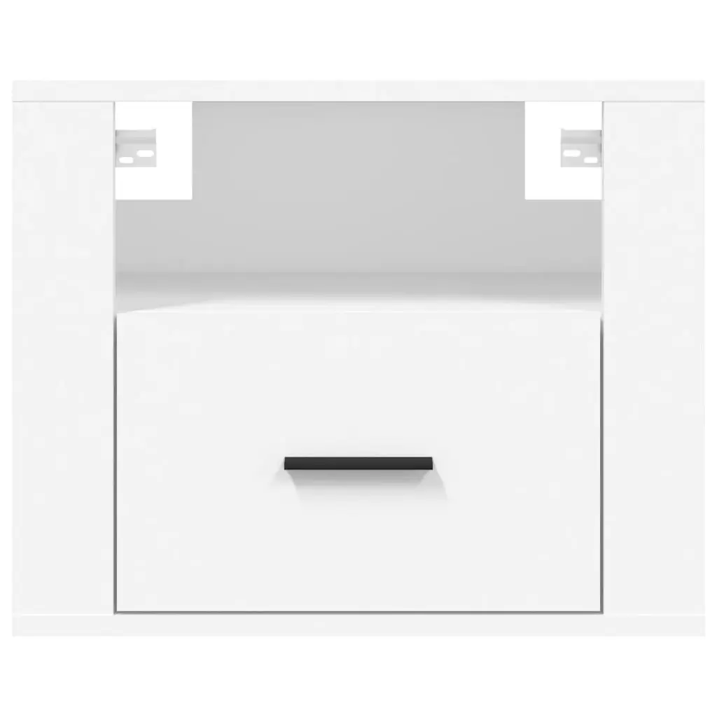 This wall-mounted bedside cabinet mixes functionality with contemporary style, creating an organized and trendy spot next to your bed. Built with modern spaces in mind, it's perfect for displaying personal items and stashing away essentials, enhancing any bedroom vibe. Elegant Visual Appeal: The matte white finish lends a sleek, modern look that seamlessly fits into various bedroom settings, enhancing the overall decor.Efficient Storage Capability: The spacious drawer keeps your bedside clear of clutter and gives easy access to your nighttime essentials.Space Optimization: By mounting it on the wall, you gain precious floor space, making it a solid choice for smaller bedrooms or minimalist setups.Durable Construction: Built from engineered wood, designed for durability and low maintenance, so it stays a staple in your bedroom for years.Versatile Use: Great for organizing books, glasses, or personal items, turning your sleep area into a stylish and functional spot.