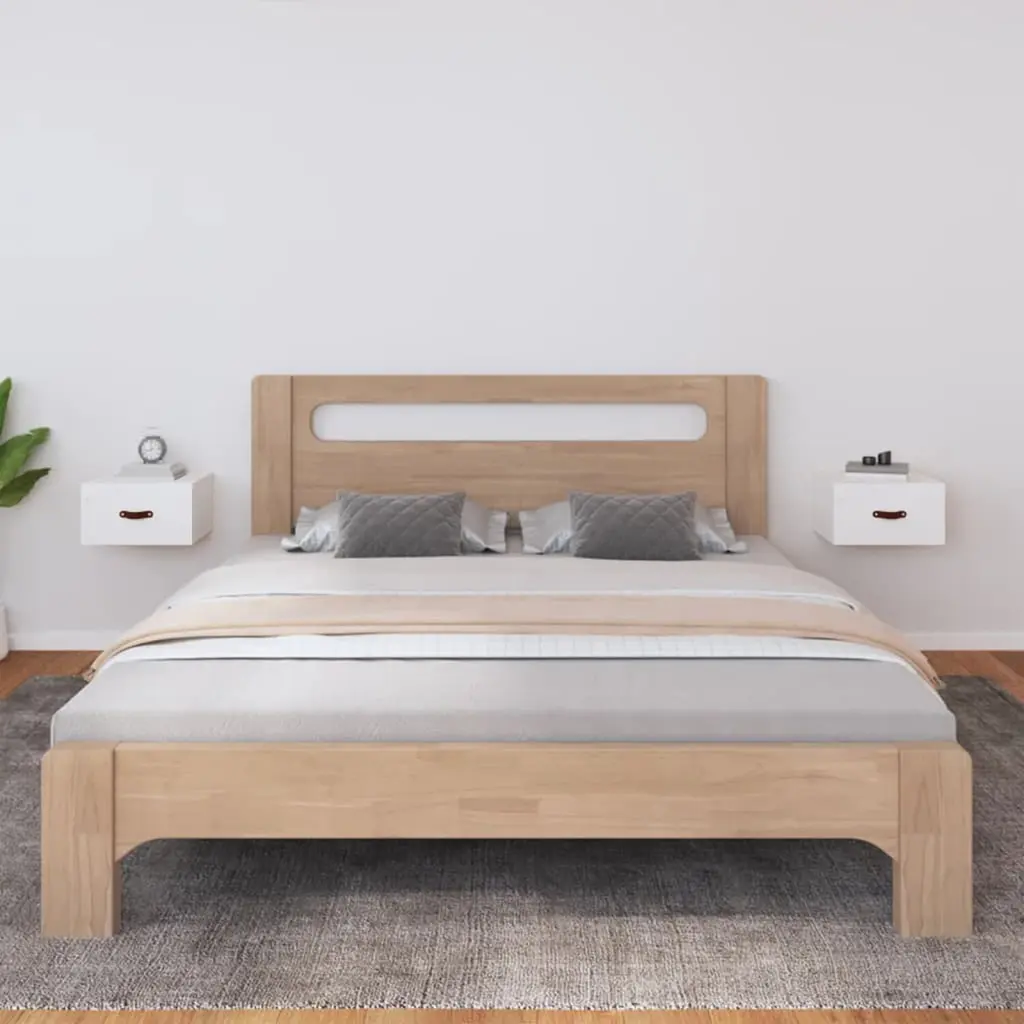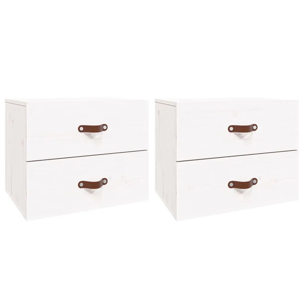 Vidaxl Wall-Mounted Bedside Cabinet Set Of 2 White Solid Pine Wood Small
