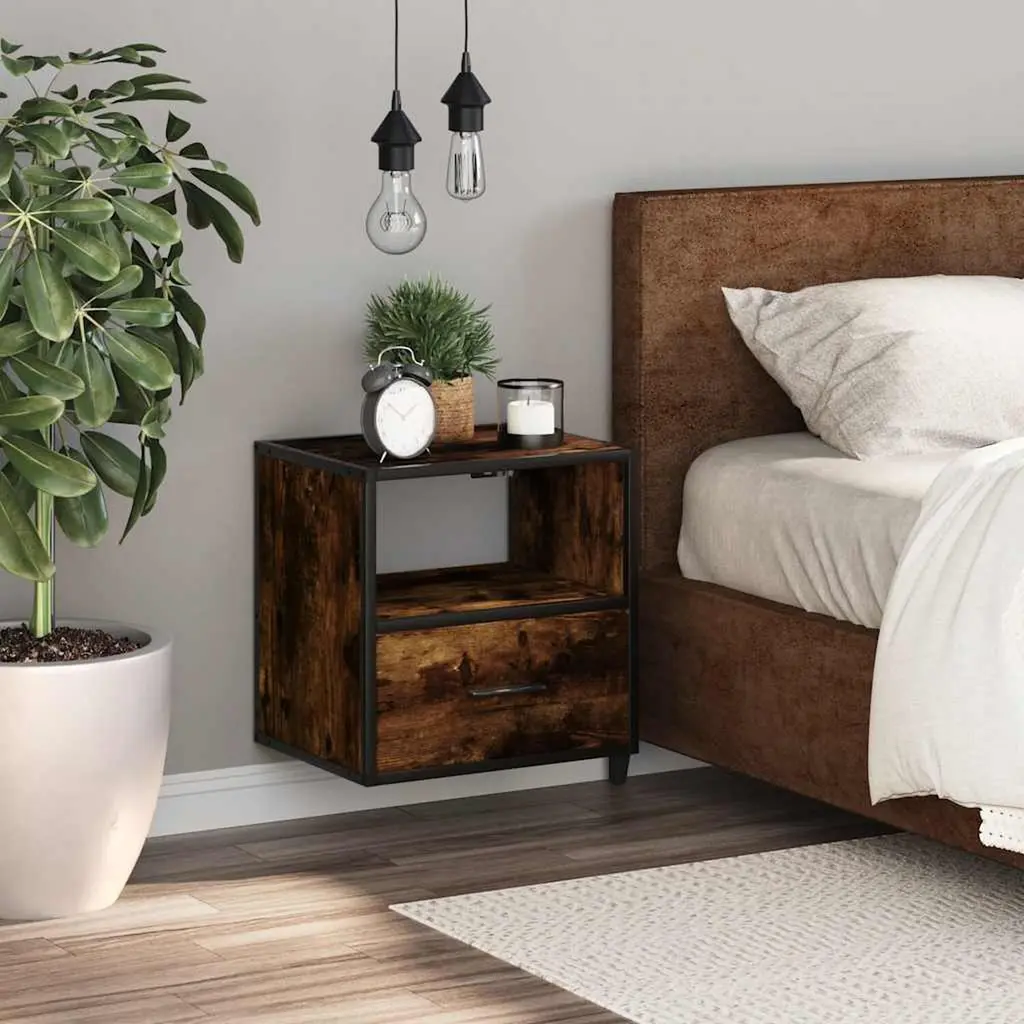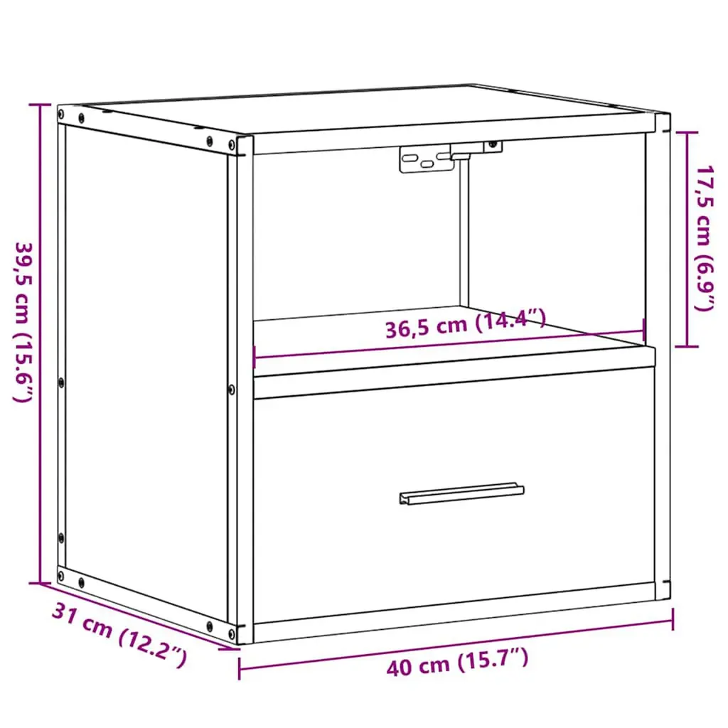Vidaxl Wall-Mounted Bedside Cabinet Smoked Oak Engineered Wood, Metal