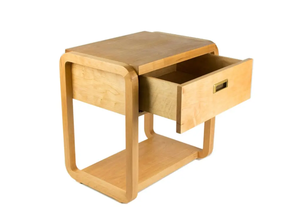 The Violette Nightstand is part of a collection of bedroom furniture pieces including matching bedframe, headboard and vanity table. The nightstand's simple but elegant design features an inset oil rubbed bronze handle, undermount soft close slides for the drawer, and solid hardwood joinery.KLN Studio designs and makes each piece by hand in their Brooklyn workshop. All pieces are made to order with the utmost care, ensuring heirloom quality ready for generations of future use and enjoyment. Don't hesitate to reach out about custom sizes, finishes or wood species. Custom projects are also encouraged.