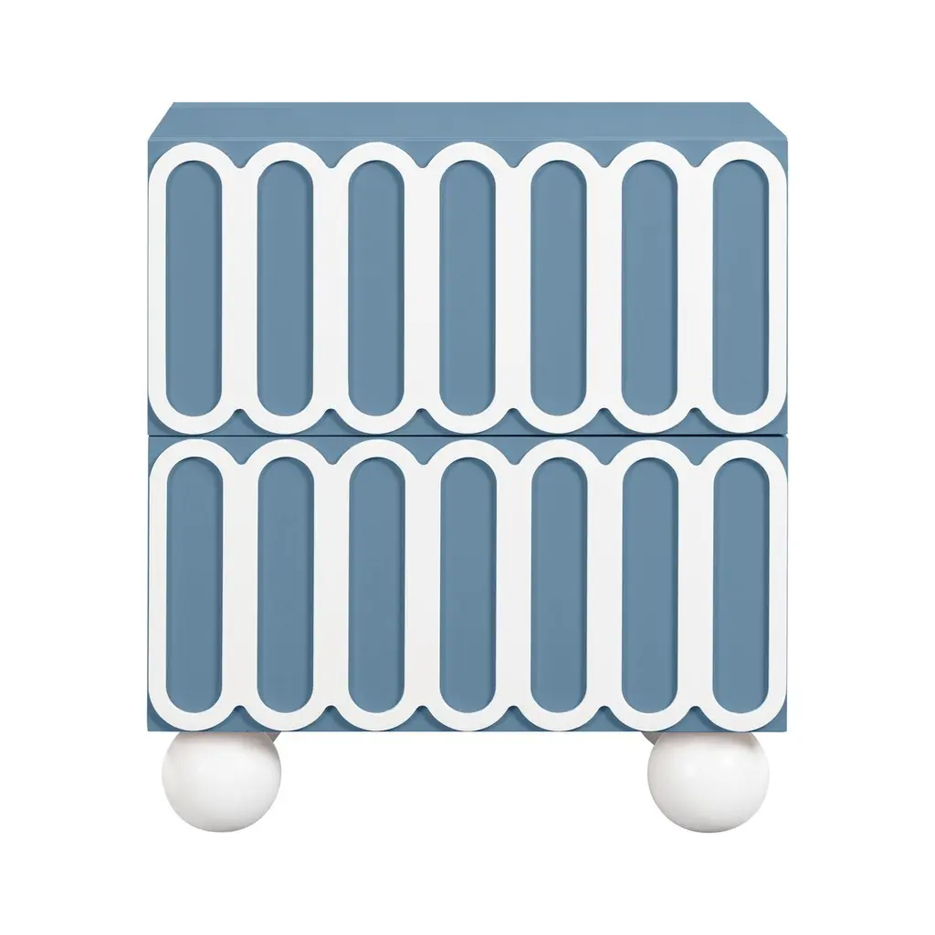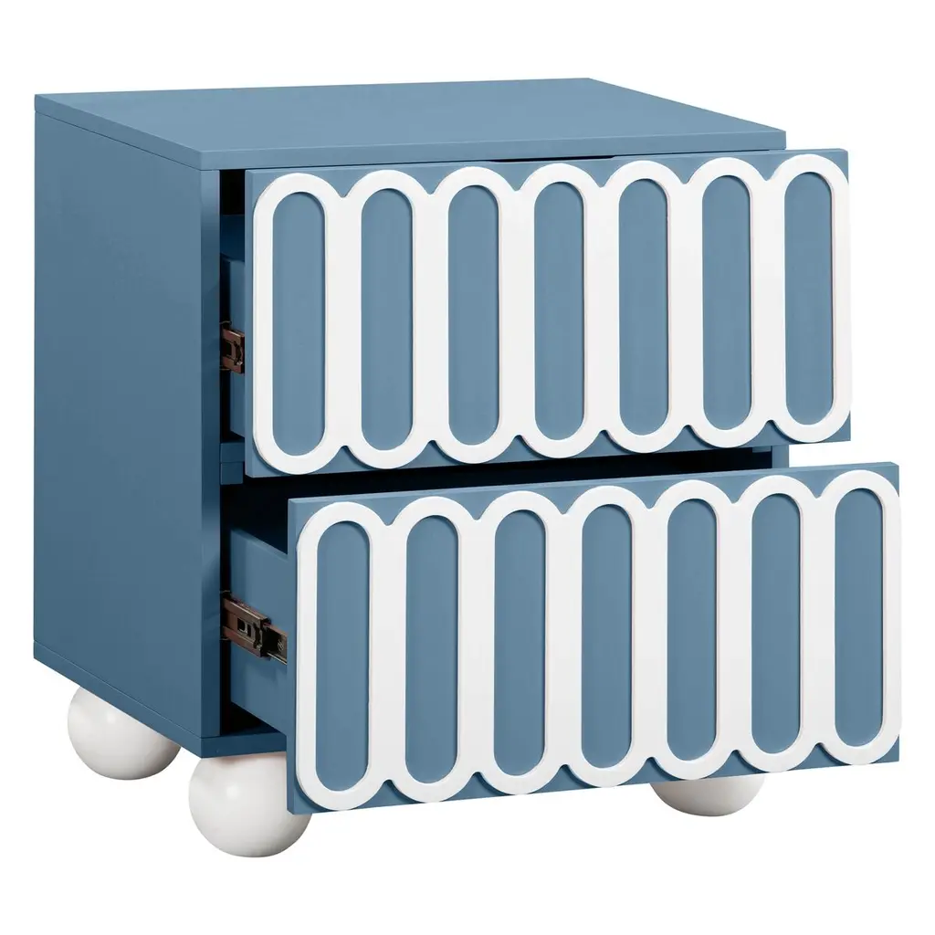 Say goodbye to a boring bedtime routine with the Vionne Motif Nightstand, featuring a statement-making facade that truly pops. Its solid wood, spherical legs infuse a sculptural Hollywood buzz, while the medium sheen on the surfaces delivers just the right amount of drama without fussy maintenance. Plus, the nightstand's drawers glide smoothly on soft-close rails, ensuring you keep the morning peace, not waking your partner as you start your day.
