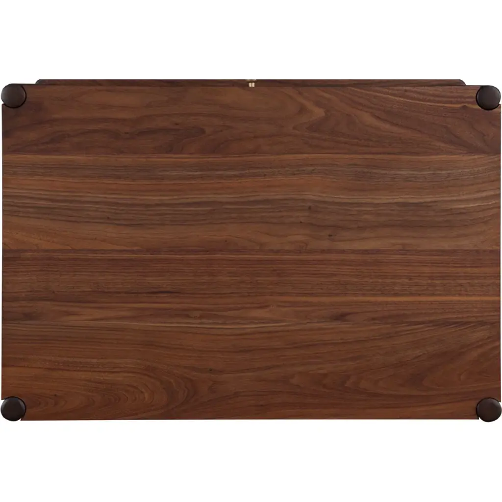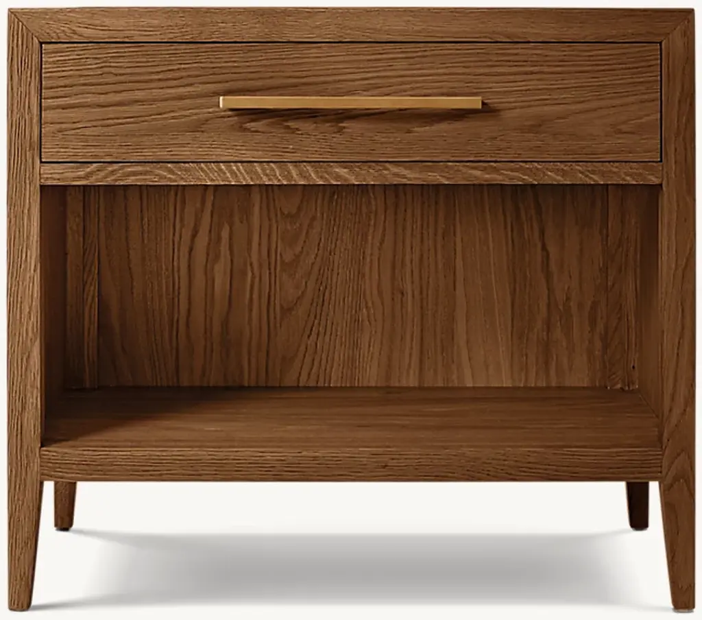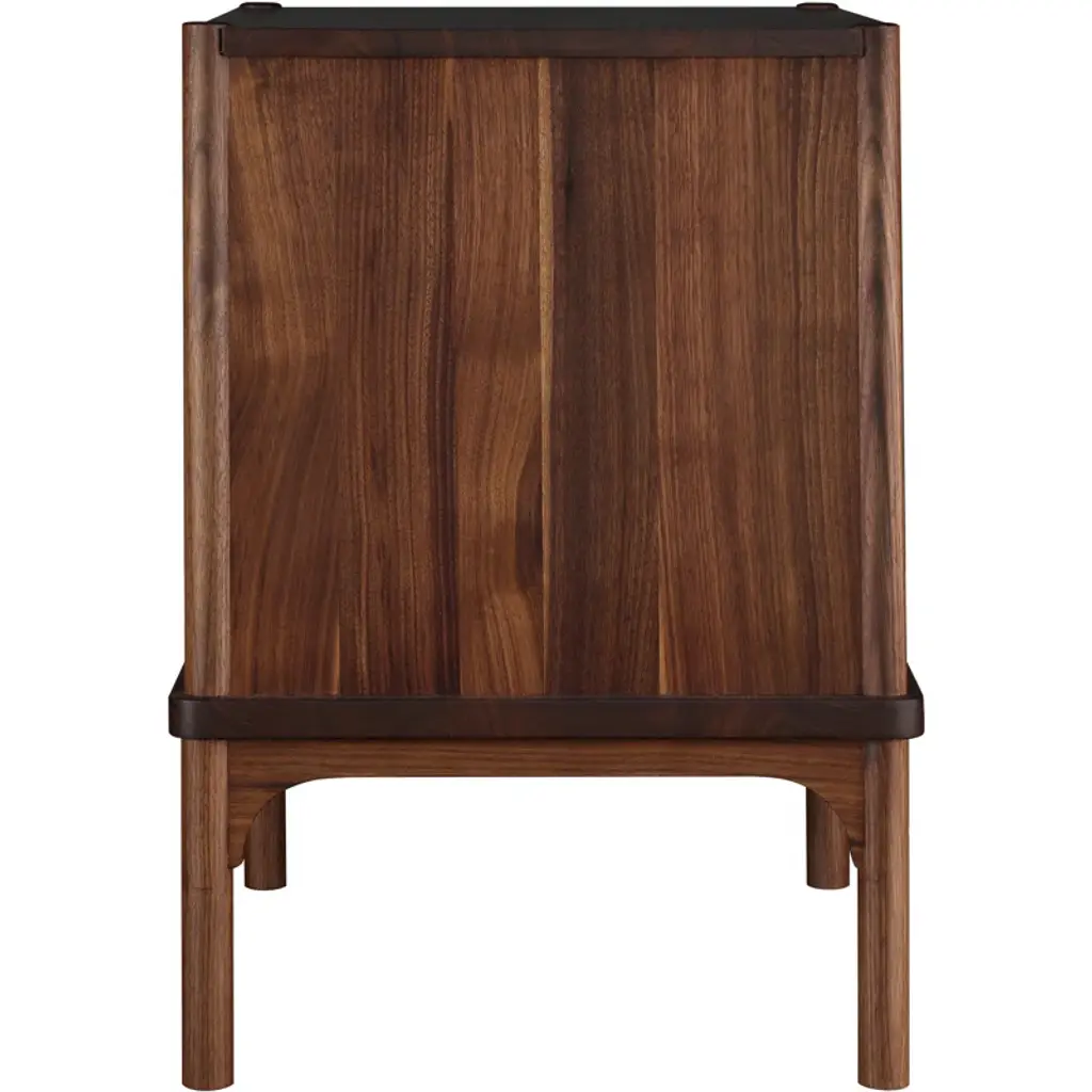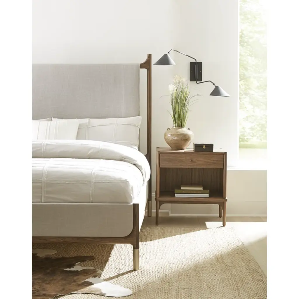 The open nightstand reflects the collection’s details with rounded corners and soft edges. The supporting round posts nest gracefully into the top surface at each corner. Its flexible design means it can function equally well as an end table.