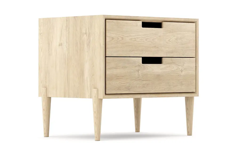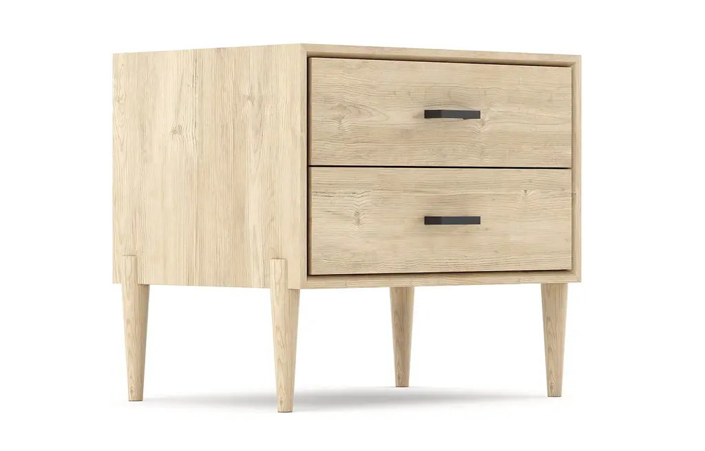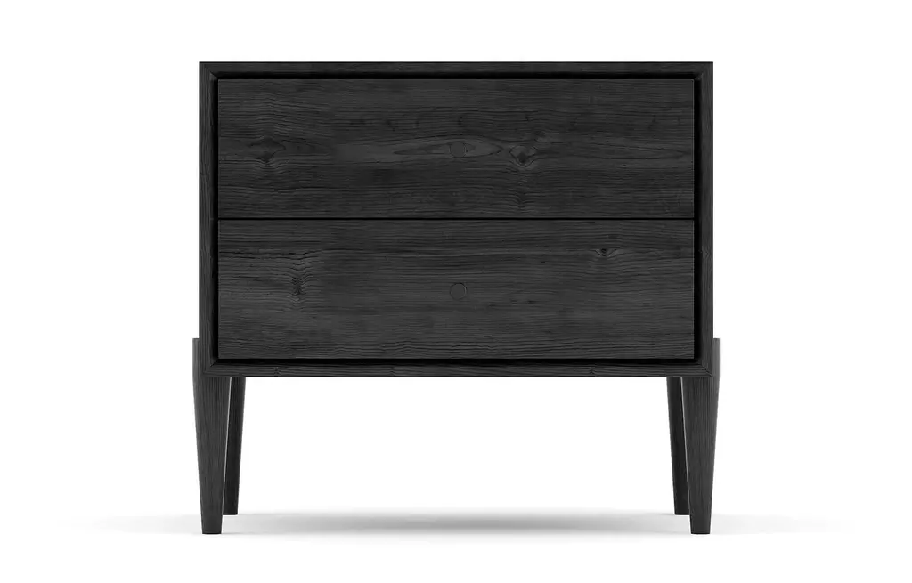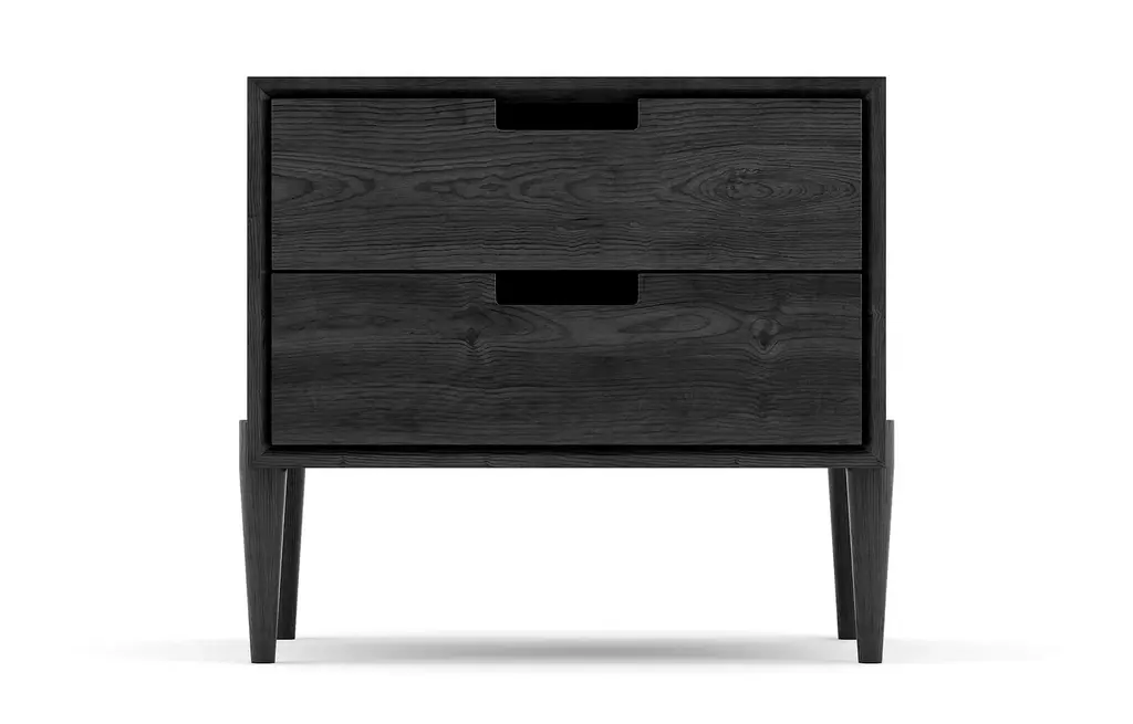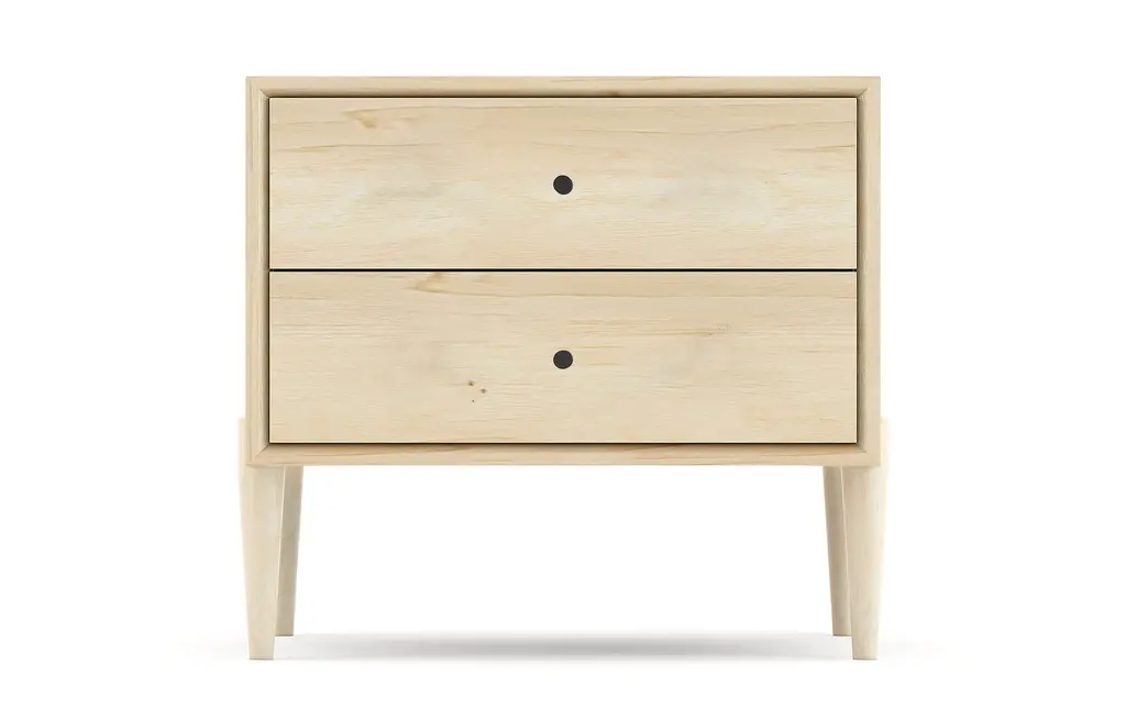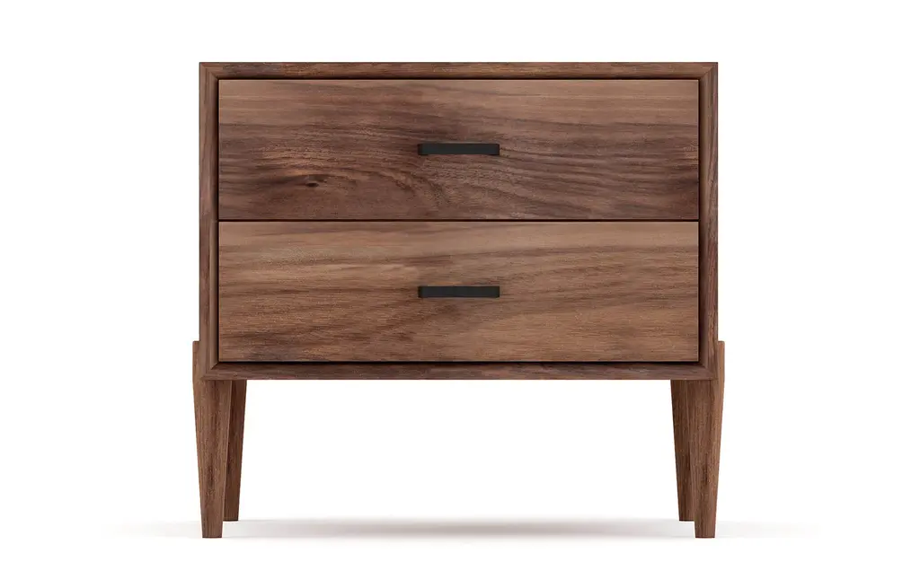 Walt Nightstand's mid-century appeal, warm natural grain, and hand-carved legs come together to bring functional elegance to the bedroom. Spacious, soft-close drawers hold essentials for a clutter-free bedside, with a wide top surface that makes the perfect place for a soft-glowing lamp. Top, sides, and drawer face crafted in your choice of beautiful, 100% solid hard White Maple, White Oak, American Walnut, or Black Stained White Oak. For additional strength and lightness, FSC-certified, low-VOC CARB 2 compliant Maple or Walnut engineered hardwood is used elsewhere.