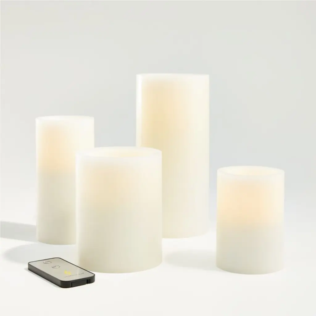 Made of real wax, our flameless candle fools the eye with lifelike flickering and the warm glow of a lit flame. The white pillar candle is safe and mess-free, providing atmosphere and gentle illumination on the nightstand, next to the bathtub or anywhere a burning candle would be impractical. Use the remote control (sold separately) to turn the pillar on, or set the timer for five automatic hours of delightful, worry-free candlelight every evening.