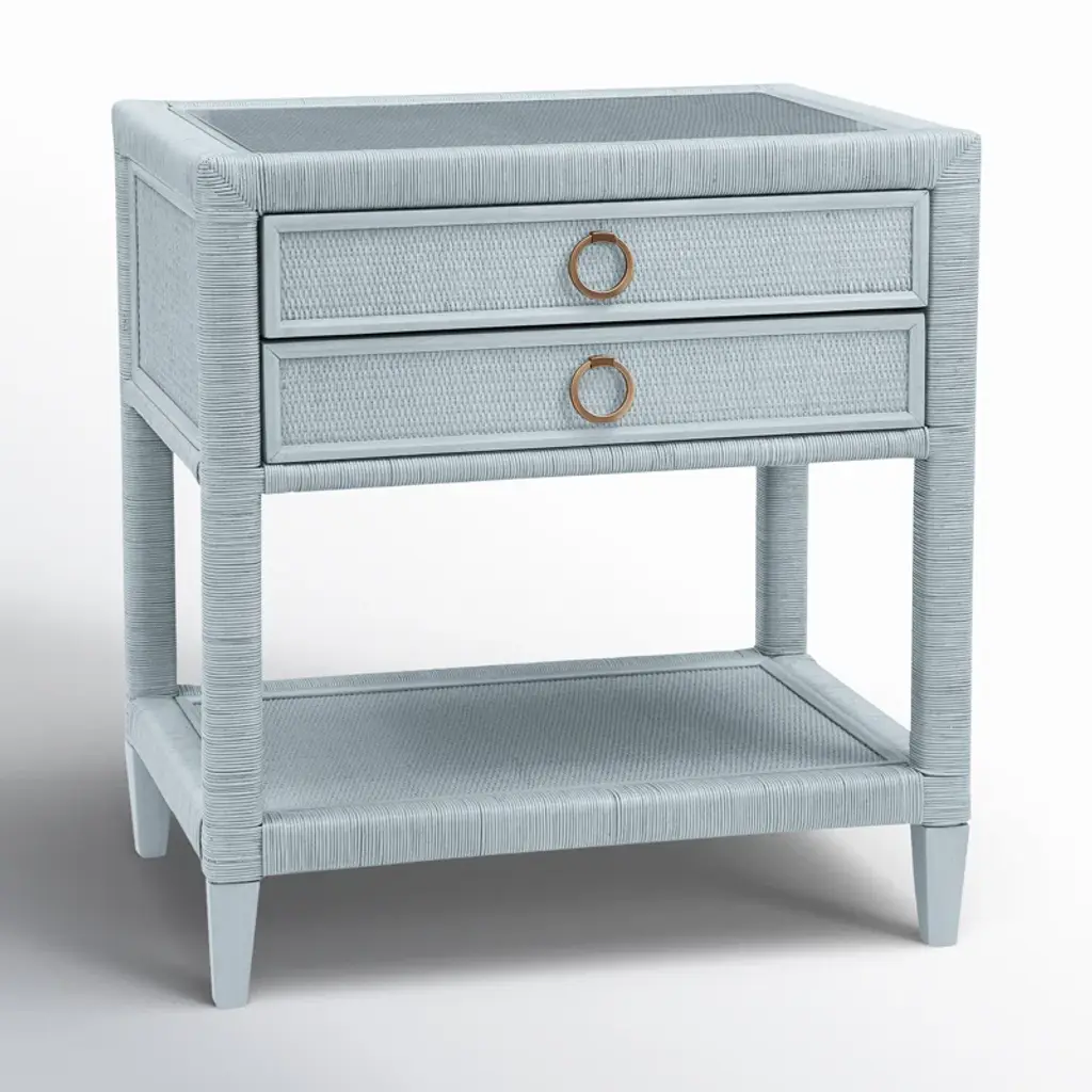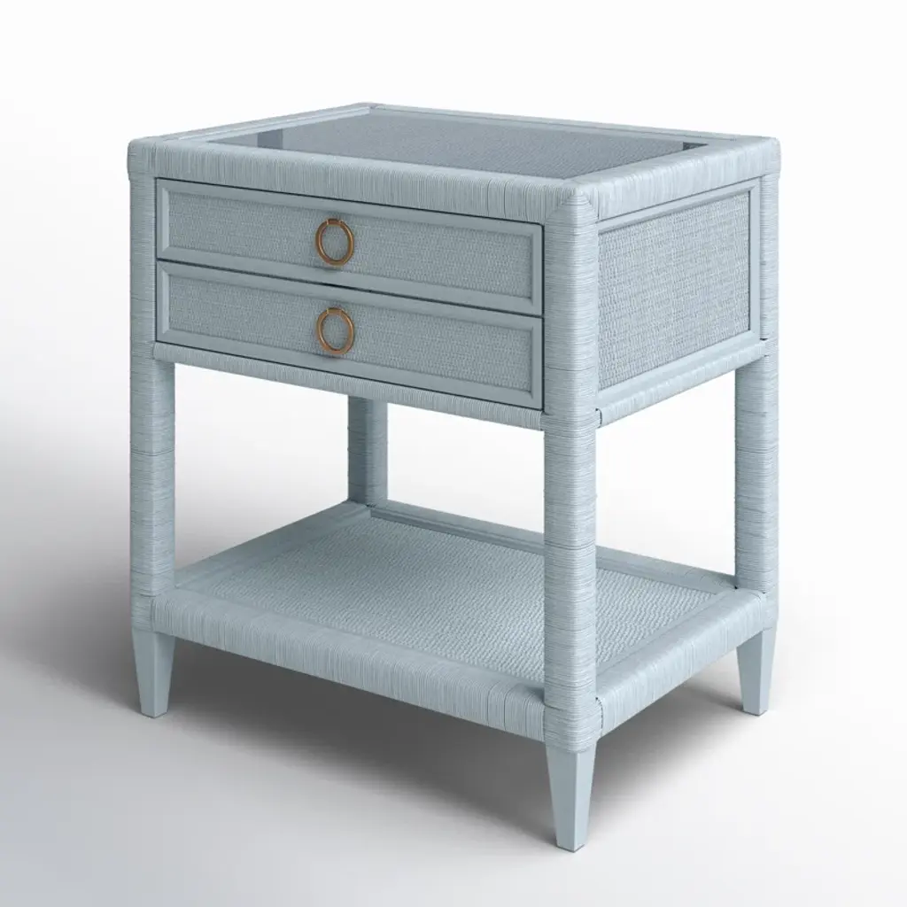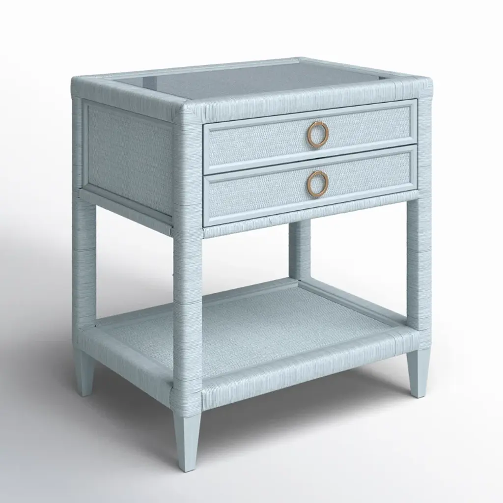 Elevate your bedroom with this elegant 2-drawer nightstand, crafted from solid wood and topped with a sleek glass surface. The ball bearing drawer glides make opening and closing a breeze, while the mortise and tenon joinery ensures a well-built piece. The nightstand features a handy shelf for additional storage and removable metal handles for a touch of sophistication. Designed for everyday living, it's a versatile addition to your home that's both functional and fashionable. Just remember, this piece is intended for your personal sanctuary, not for commercial use.