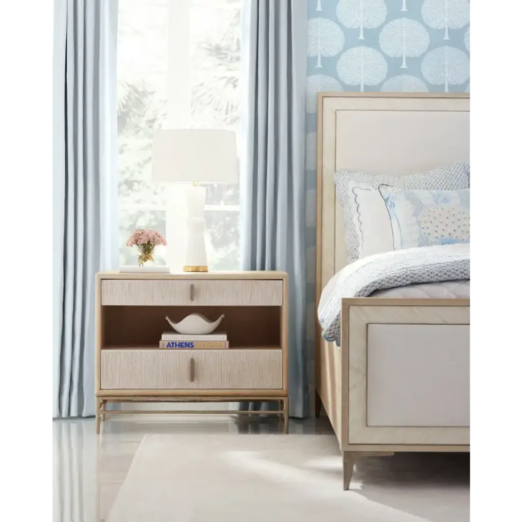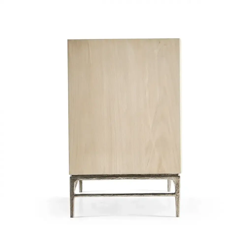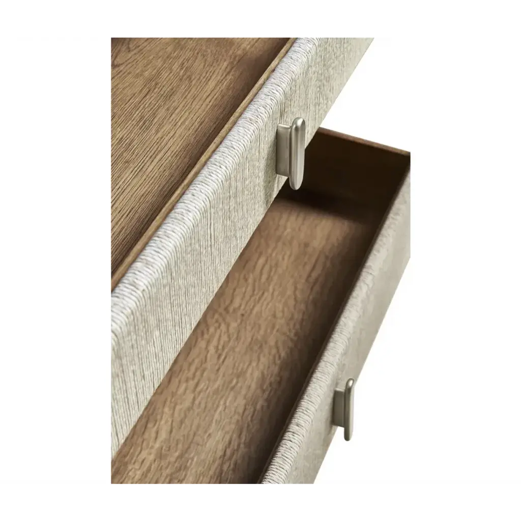 001-1-802-CRD (36.125") & 001-1-803-CRD (42") The stylish design of Jonathan Charles' Clapotis Nightstand, replete with two Danish Cord-wrapped drawer fronts adding style to the classic tone and feel of contemporary vision without shortcuts. A Cast Stainless Steel base and vertical hardware handcast in Jonathan Charles' foundry are finished in elegant Satin White Brass for a luxurious and sleek effect befitting refined and eclectic spaces.