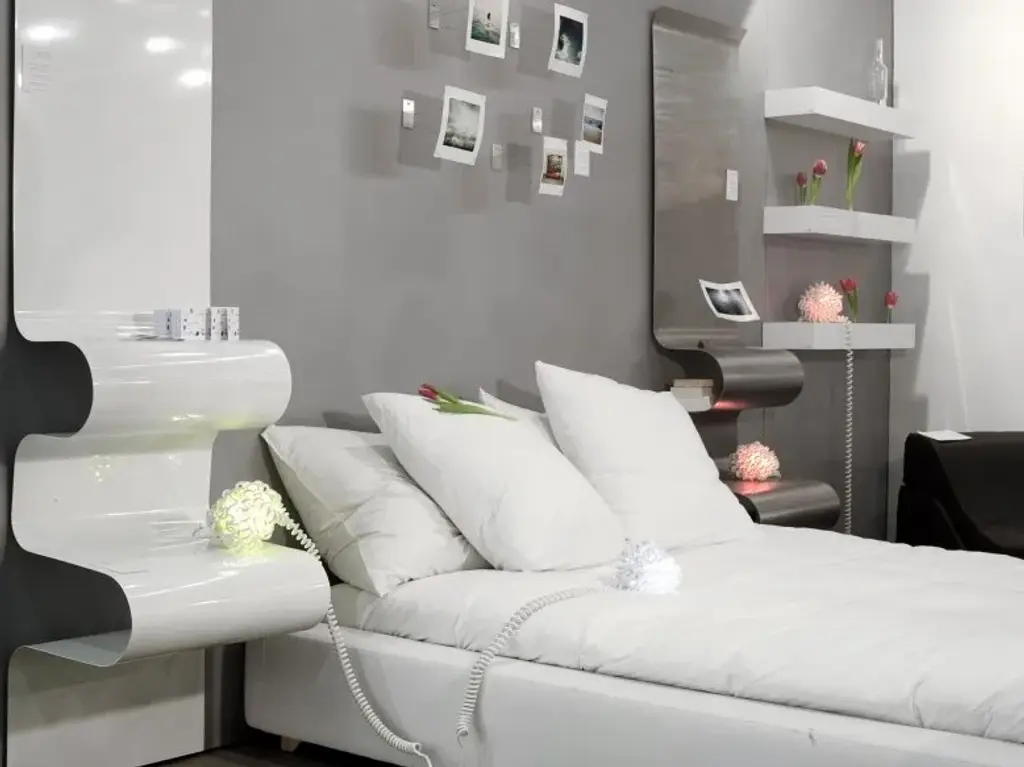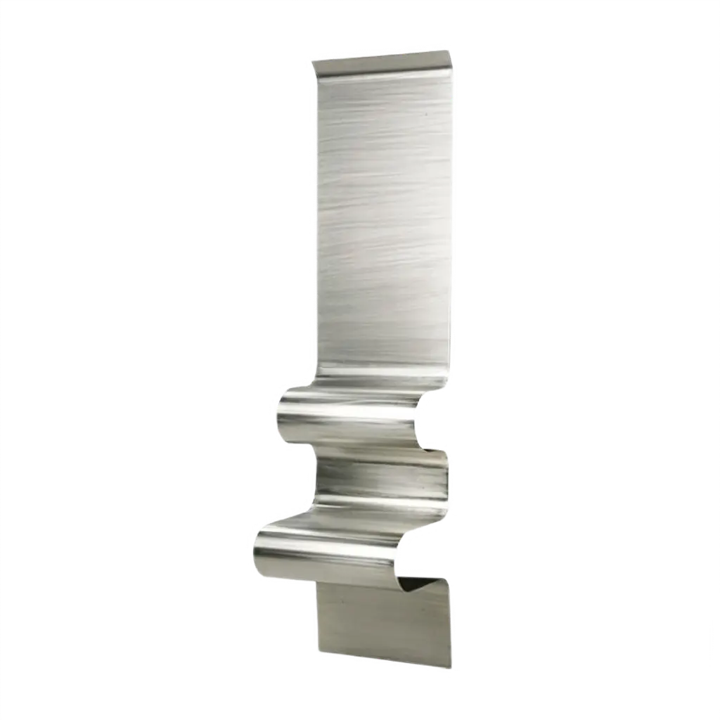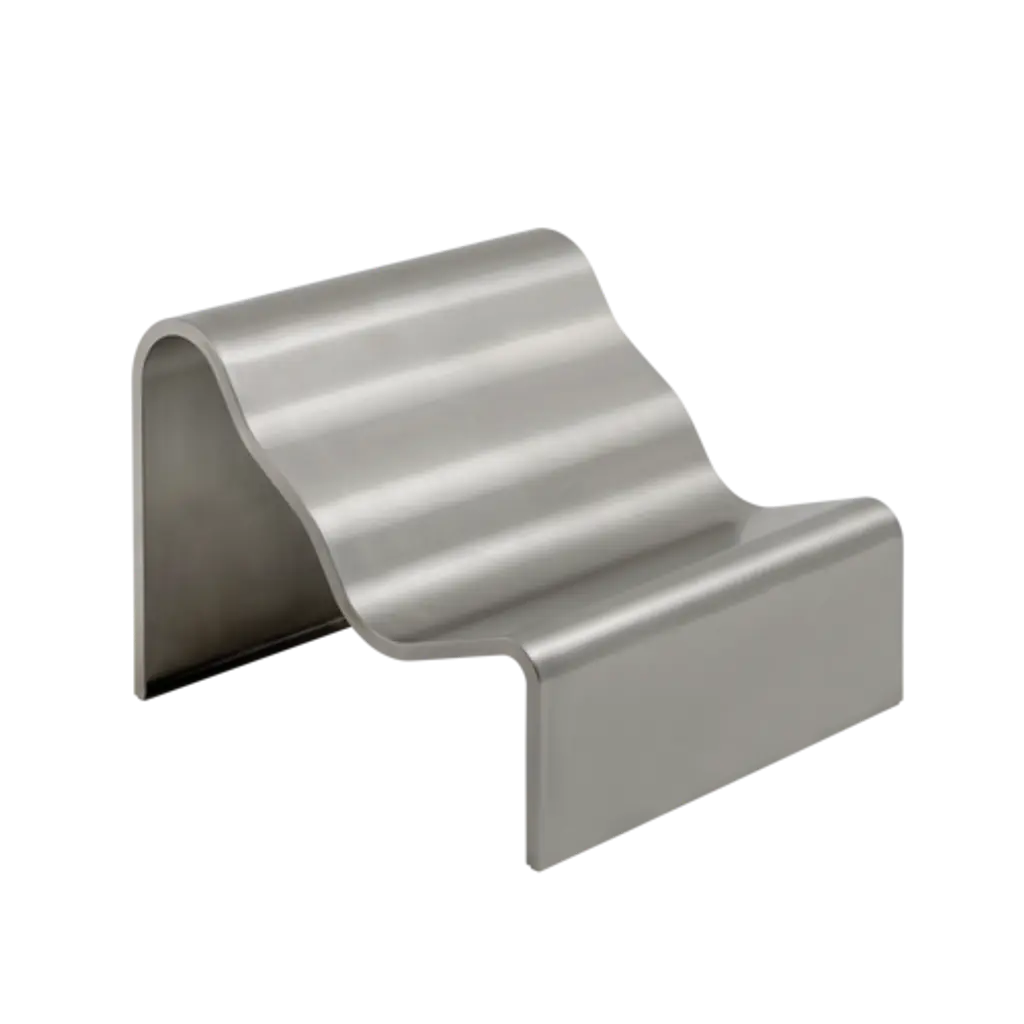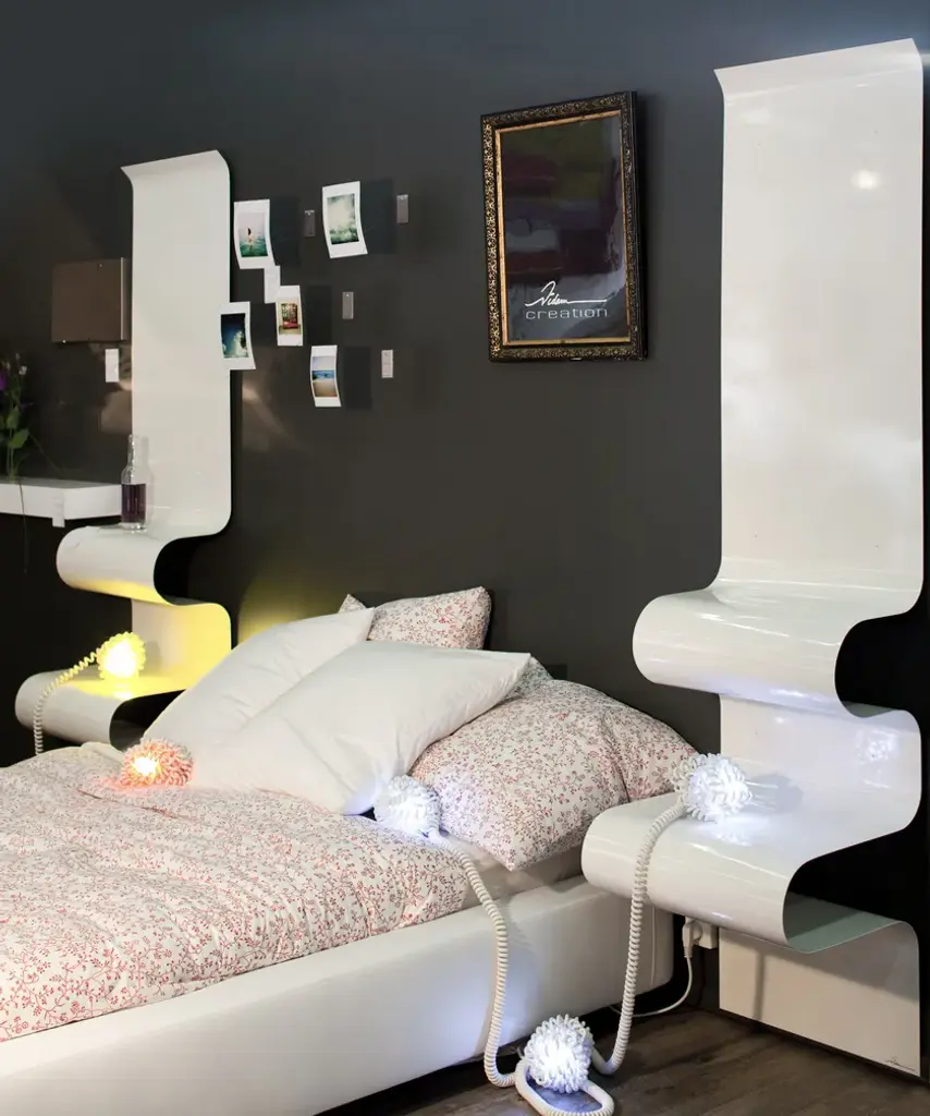 Powder coated aluminium Bookshelf, low table, bedside or small furniture. Range of shelves in powder-coated aluminium or silver aluminium, also available customized, in all colours.Julien Vidame has built his own bending machine to get that shape because manufacturers could not. Waves are studied to receive objects, books, lights, above or inside, which offers a hiding game. They are much functional (strong) because there's a lot of space, and a flat surface to avoid objects to slide, as we can expect. Entirely pured, they bring out the impression of movement in a room. It's extremely simple, the setting up is made in 15min with its movable racks, become invisibles and peel off the wall 1cm this waved line.The range is studied to be stacked, the bookshelf above the small one goes from the floor to a standard ceiling high. This product works well for interior designers who wish to fill a wall with a deep and forceful concept, and functional too.