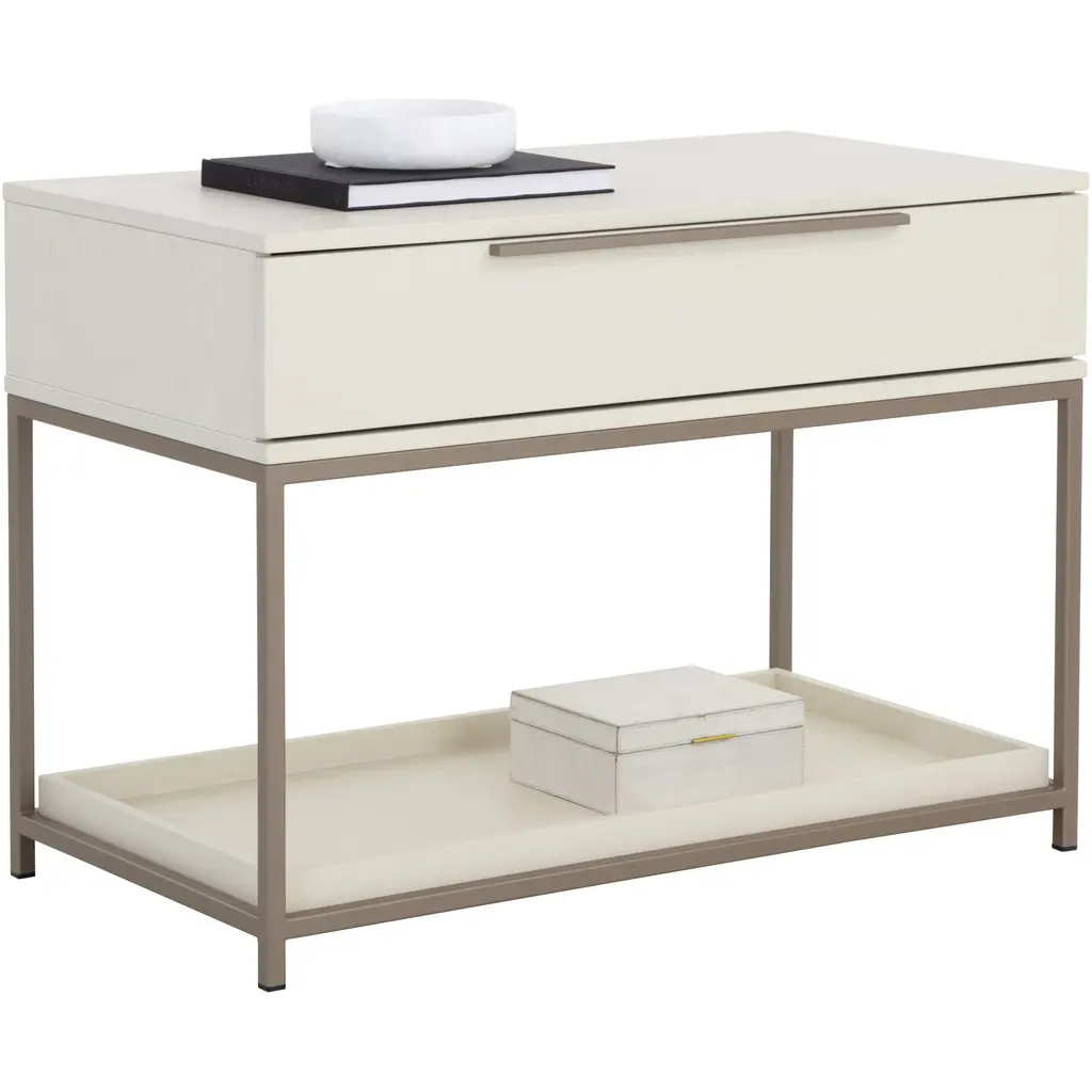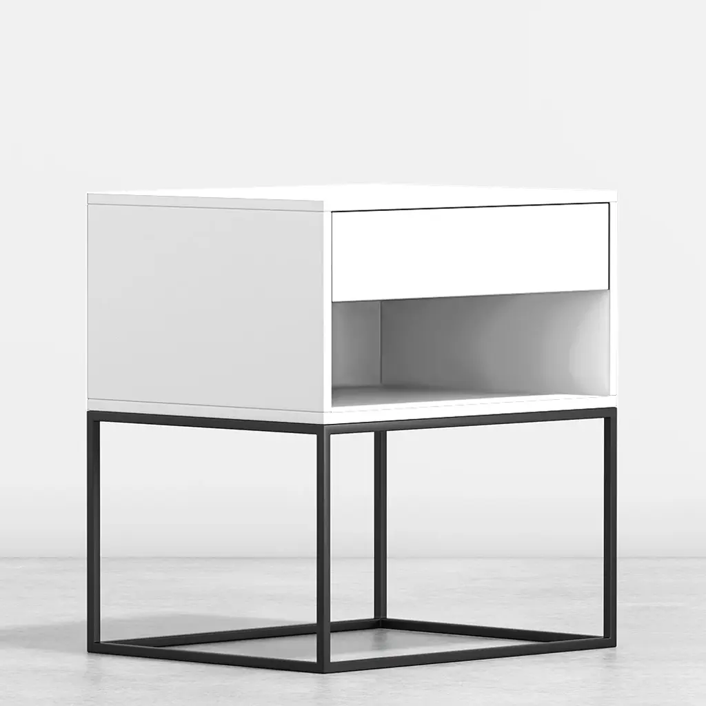 White Lacquer Bedside Table With 2 Drawers With Stainless Steel Frame Set Of 2