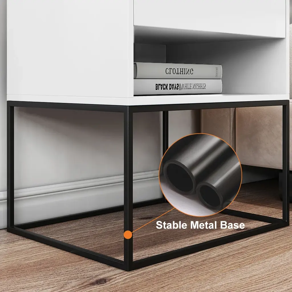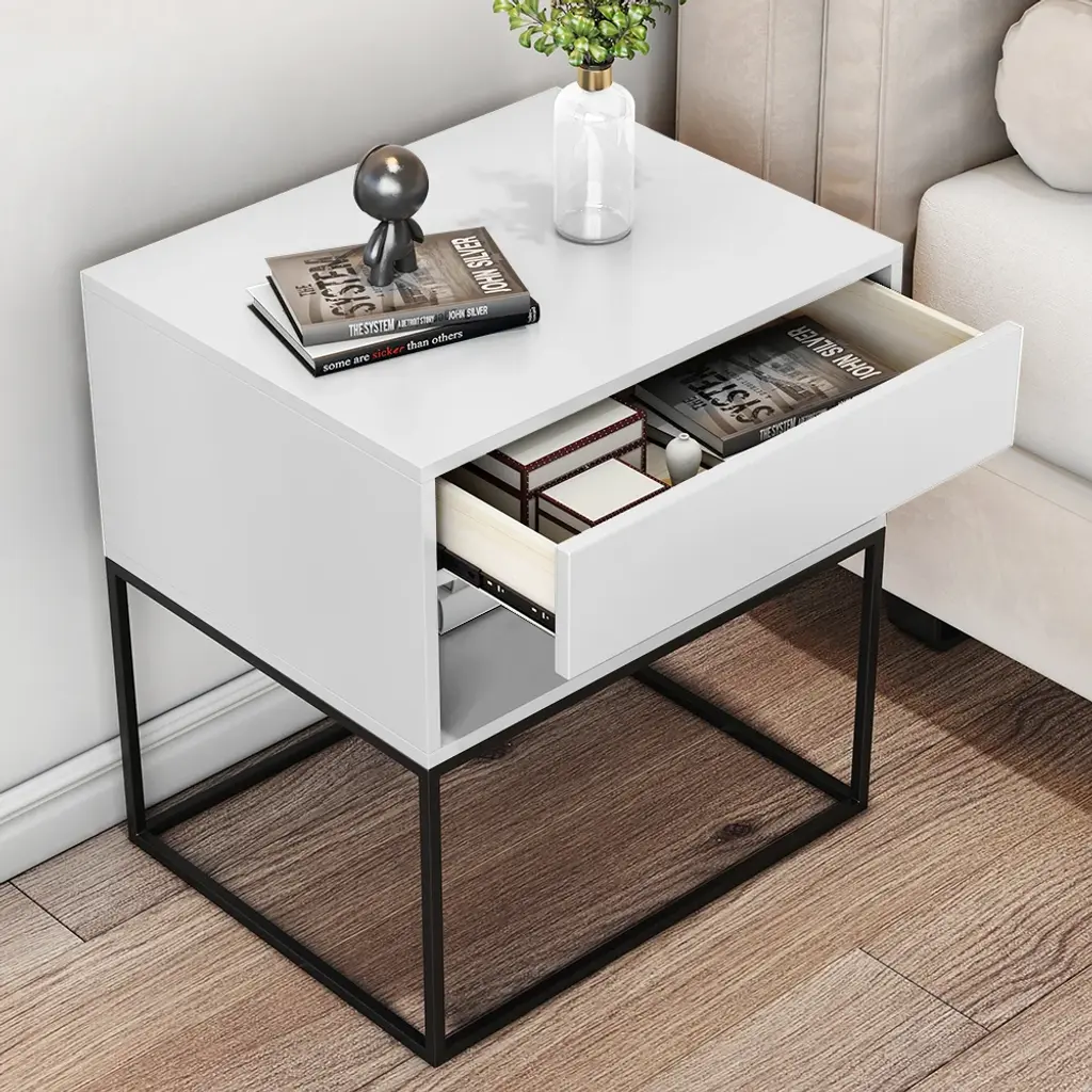 Bring the simple yet stylish statement to your bedroom with this contemporary nightstand. This nightstand has a high gloss lacquered surface that is luxurious and easy to clean, gives a beautiful accompaniment for your photographs, flowers, alarm clocks, and other personal items. Coming with 2 drawers, it offers a large capacity for storage, otherwise, it can ensure dust-free and privacy. Constructed from quality MDF, this nightstand offers long-lasting service while a refined stainless steel base provides sturdy support and stability. It is a perfect choice for accenting your room area.