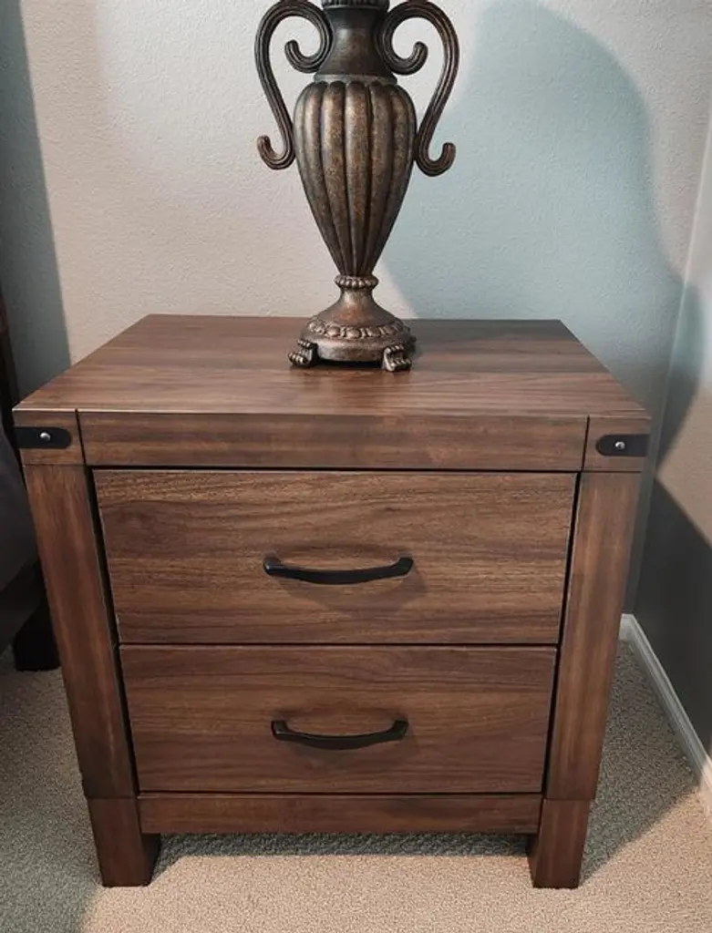 The Willow Creek II Brown Wood 2-Drawer 25" Nightstand is a perfect addition to your bedroom. Its traditional style and Columbia Walnut color bring a timeless charm to any space. Made from melamine veneer and solid rubberwood, this nightstand is both durable and easy to clean.