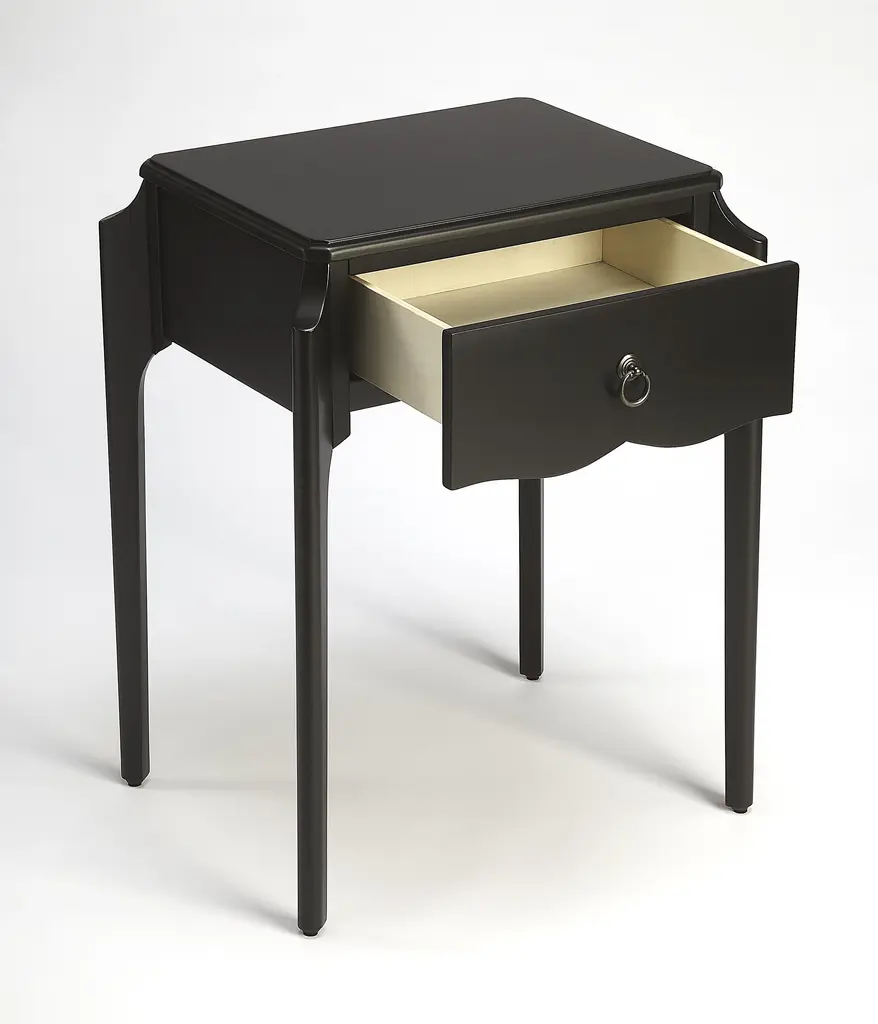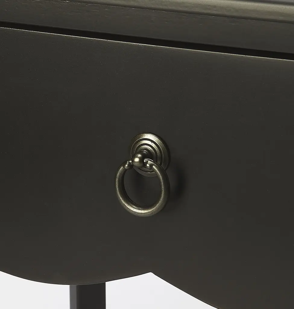 The multi-dimensional design with its soft curve lines and destinctive leg shape of this nightstand offer a crafted treasure for every bedside. The scalloped appeal of the single drawer is adourned by the oil rubbed bronze hardware pull. This lovely nightstand is ready to make a statement to your bedroom, home office, or anywhere you desire additional storage in a beautiful style. The style collection offers additional pieces to bring your space" all together". Durably Constructed With: Rubberwood Solids, MDF, Oak Veneers Product Construction Features: Metal Slide,Finish Distressing Product Assembled Measurement & Weight: 26.5" H x 20.0" W x 16.0" D -- 18.0 lbs. 200 lbs. Suggested weight capacity Item Arrives: Needs Assembly N/A Photo may slightly differ from actual item in terms of color/finish due to the lighting during photo shoot or the monitor's display.