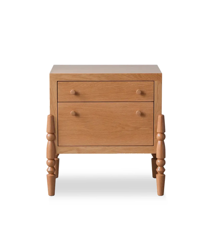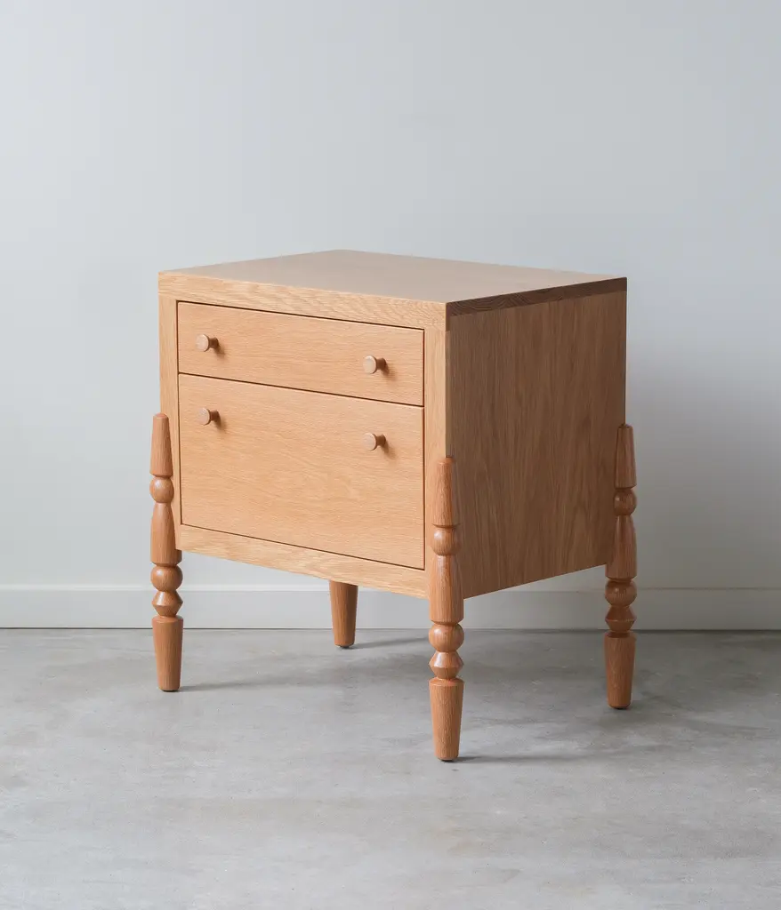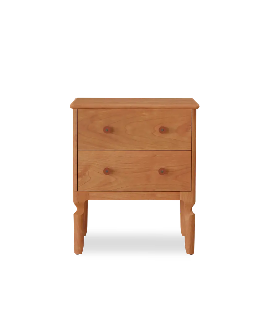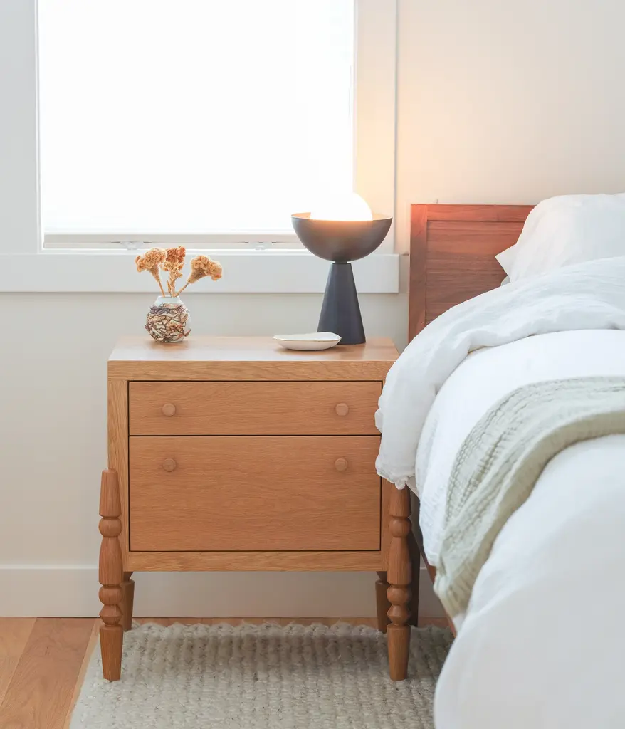 Our Witmer Nightstand has a smaller footprint but is big on function. The two dovetail drawers utilize under mount, soft close slides.