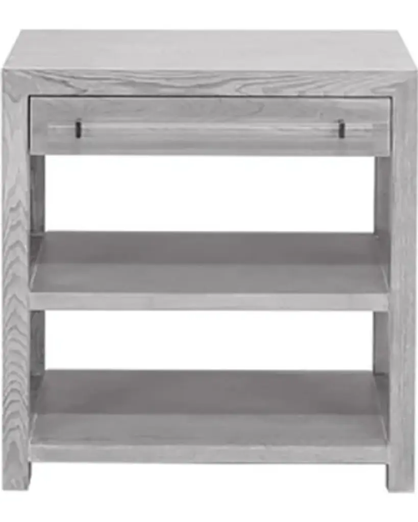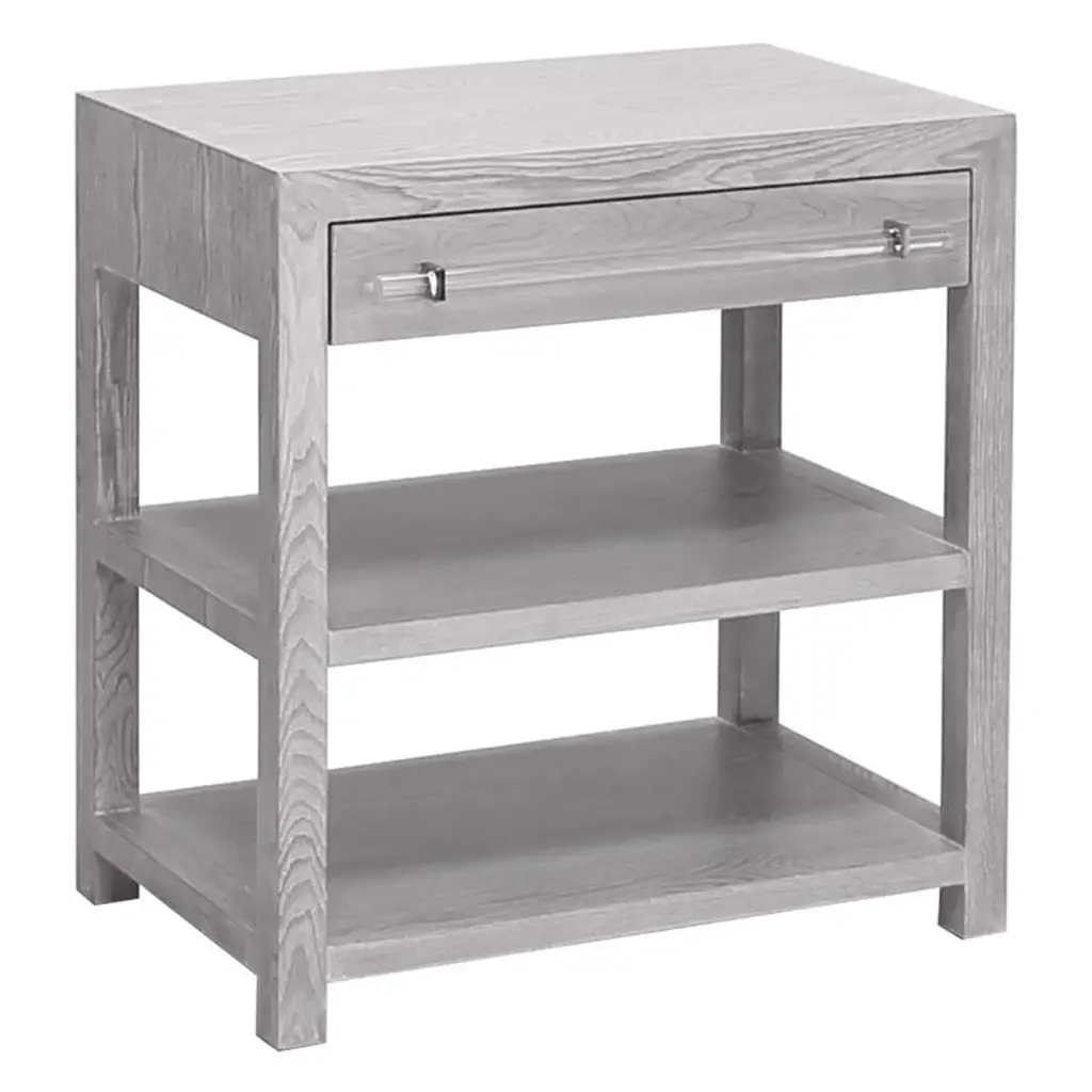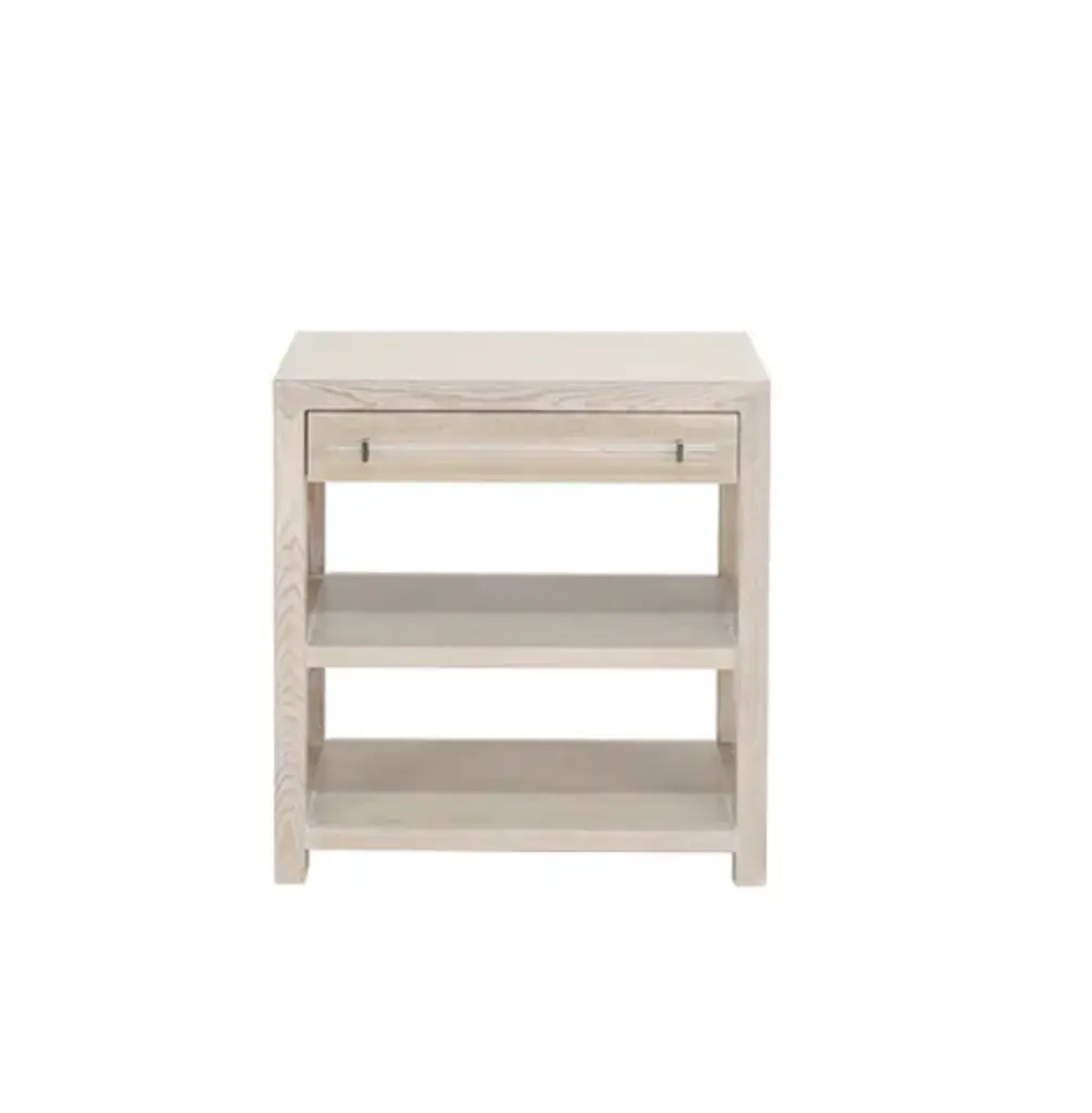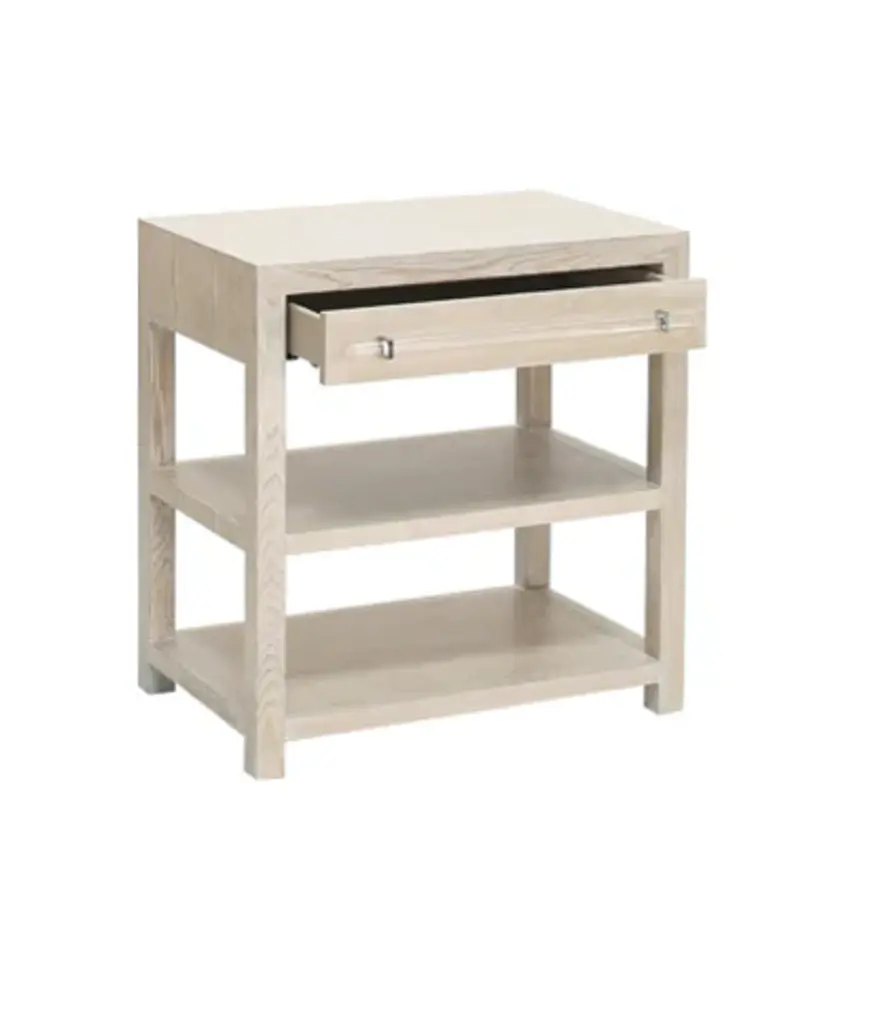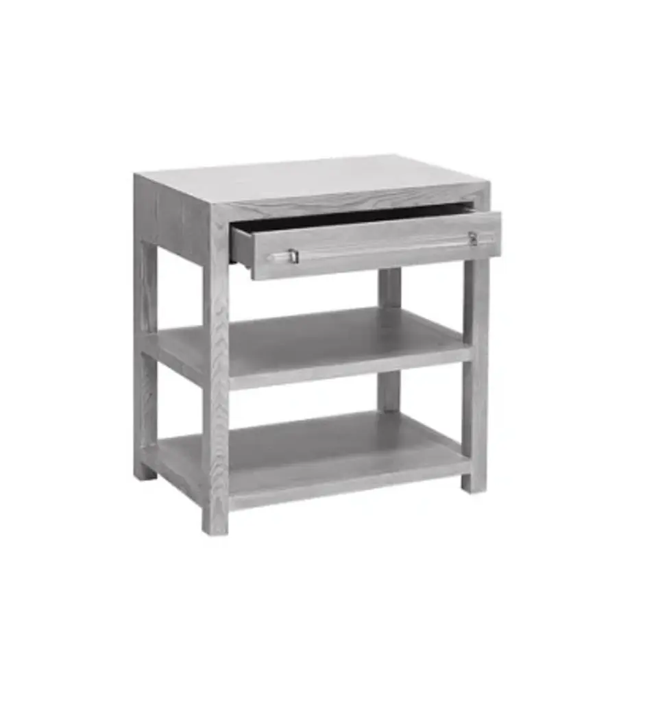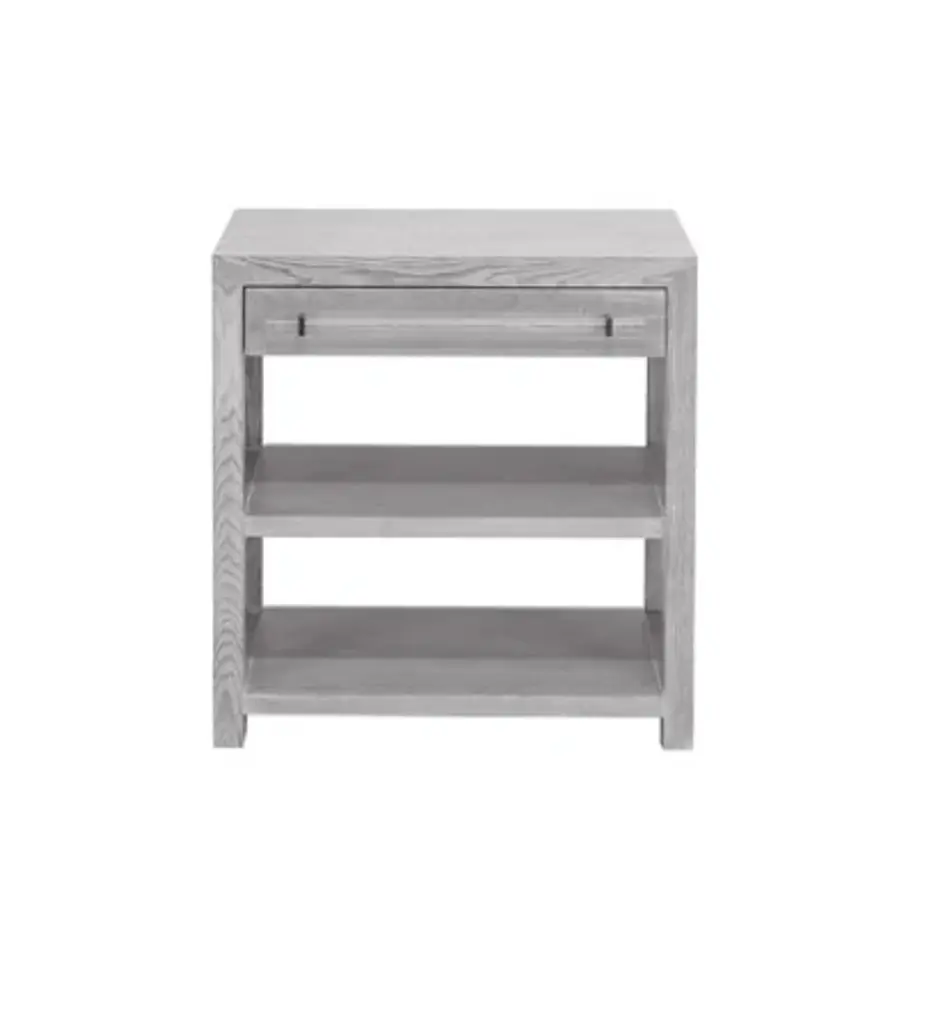 Worlds Away Garbo side table or nightstand in grey, white lacquer or natural cerused oak.