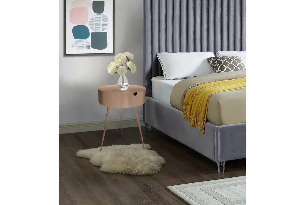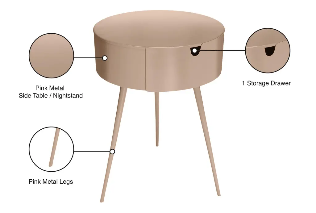 Xylen Pink Metal 1-Drawer Bedside Table Nightstand