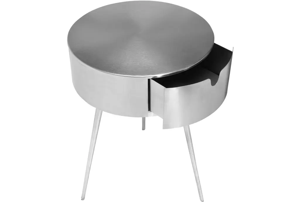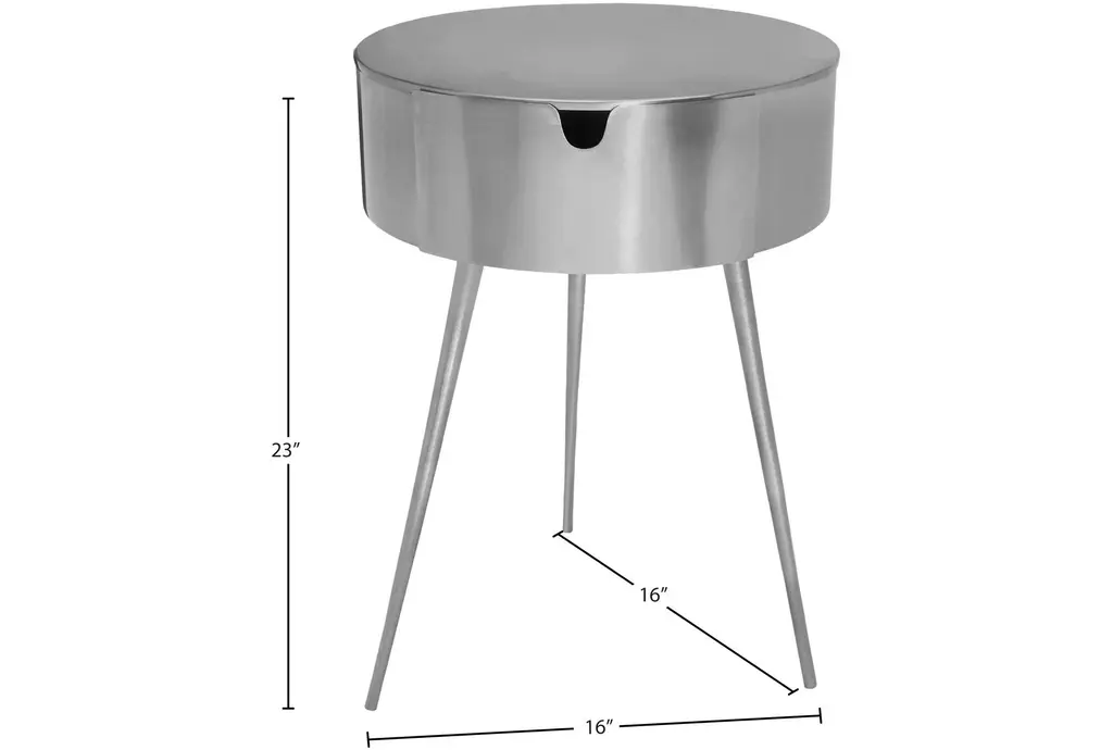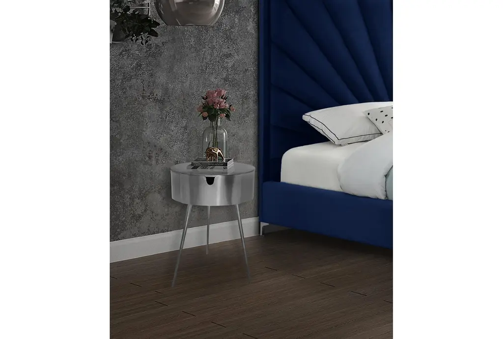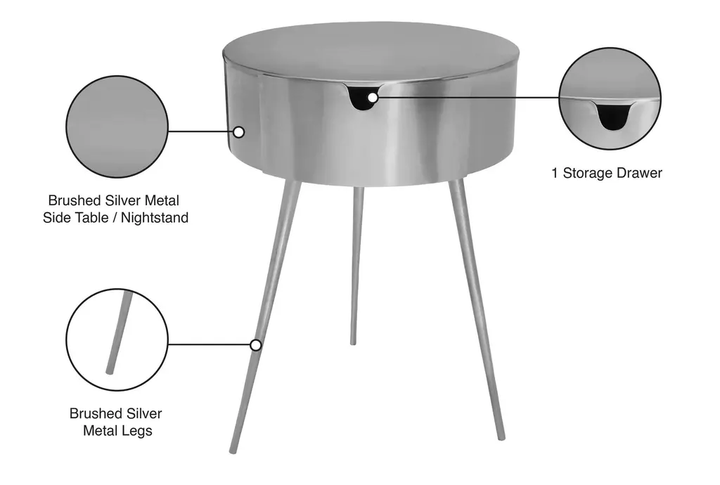 The Xylen Silver Metal 1-Drawer Night Table is a sleek and stylish addition to any modern bedroom. Crafted from durable iron, this nightstand features a brushed silver finish that adds a touch of contemporary elegance to your space. Its single storage drawer provides convenient space for your bedside essentials.