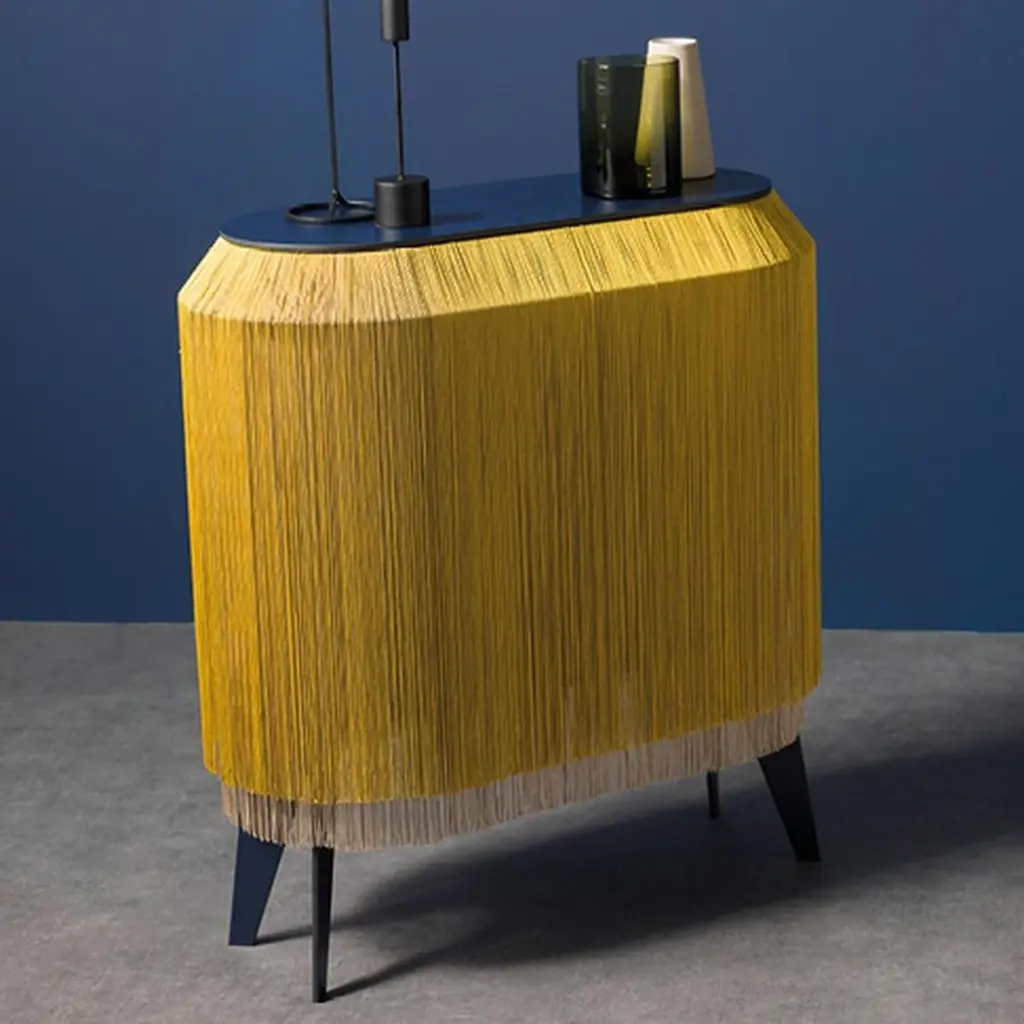 Yellow Gold Fringe Side Table Nightstand Made In France