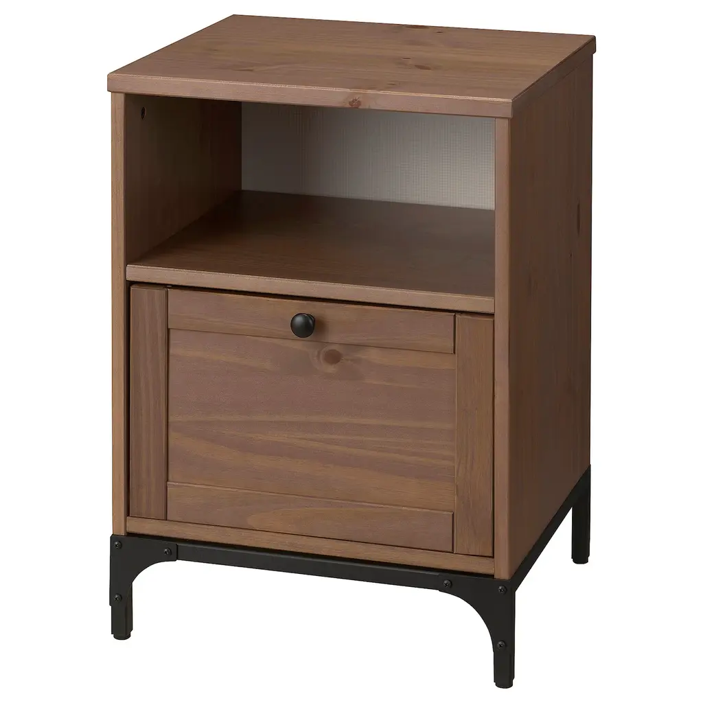 YTTERVÅG Nightstand - gray-brown 18 1/2x16 1/8 ". Made of solid wood, which is a durable and warm natural material. Plenty of room in the large drawer for your belongings. Adjustable feet make it possible to compensate for any irregularities in the floor. Smooth running drawer with pull-out stop.