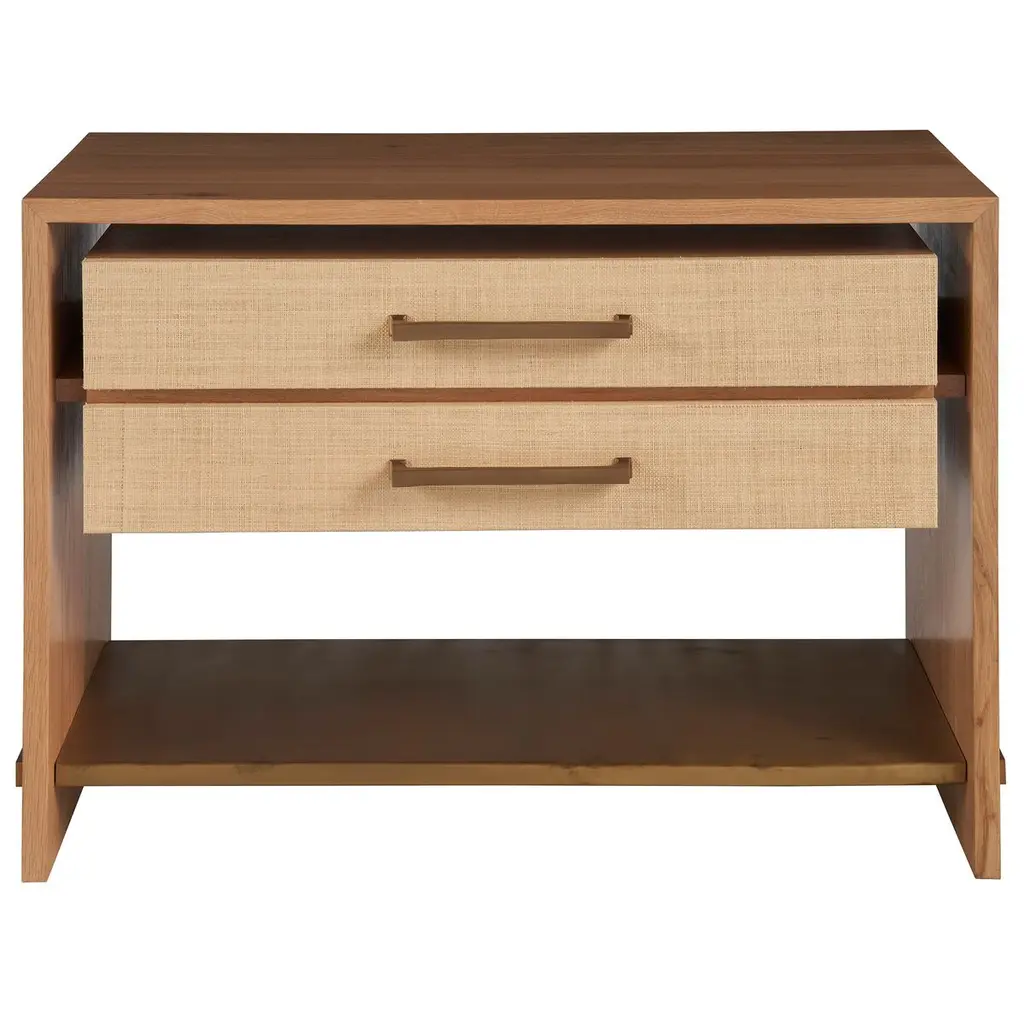 Zander 2-drawer Nightstand, Oak/natural Raffia/brass