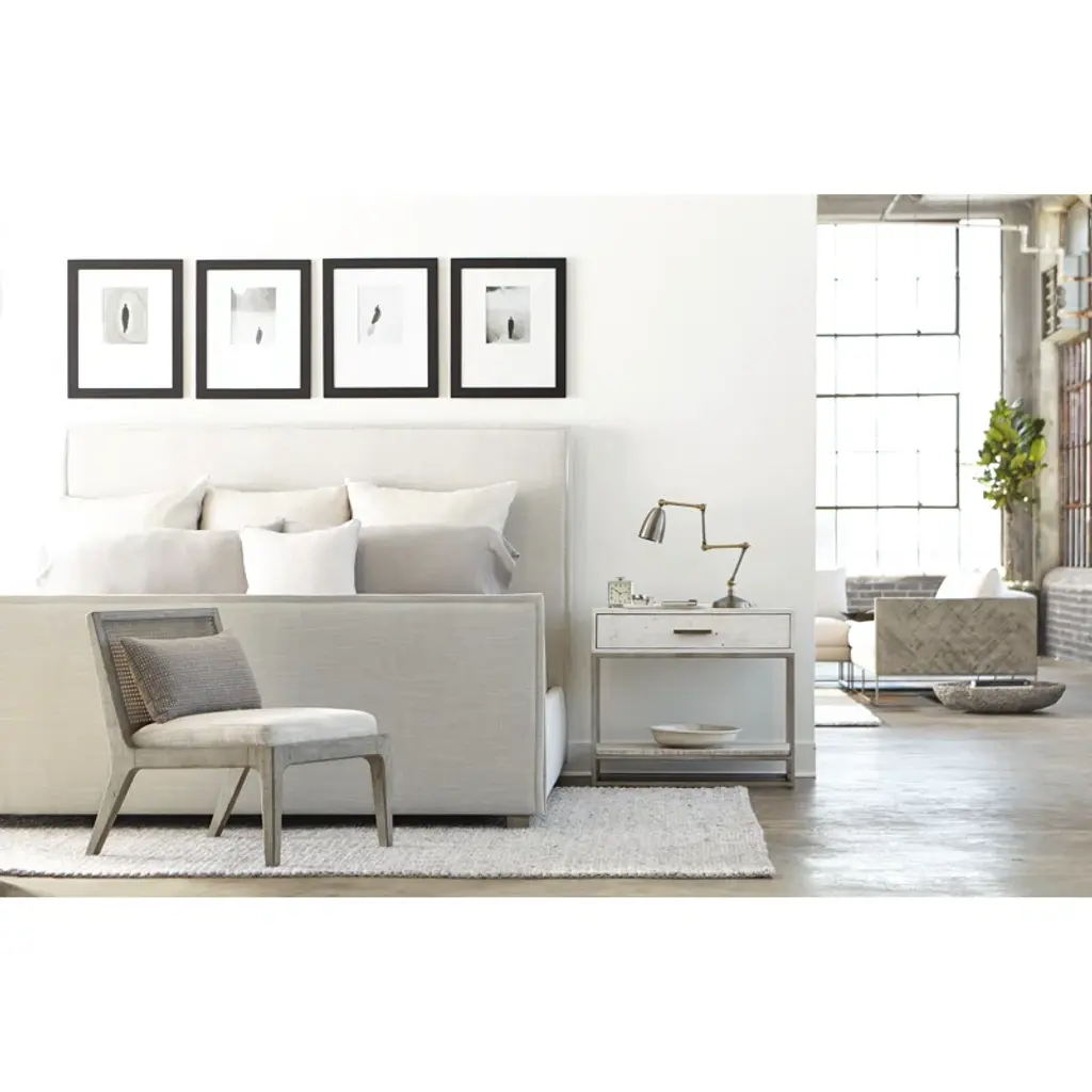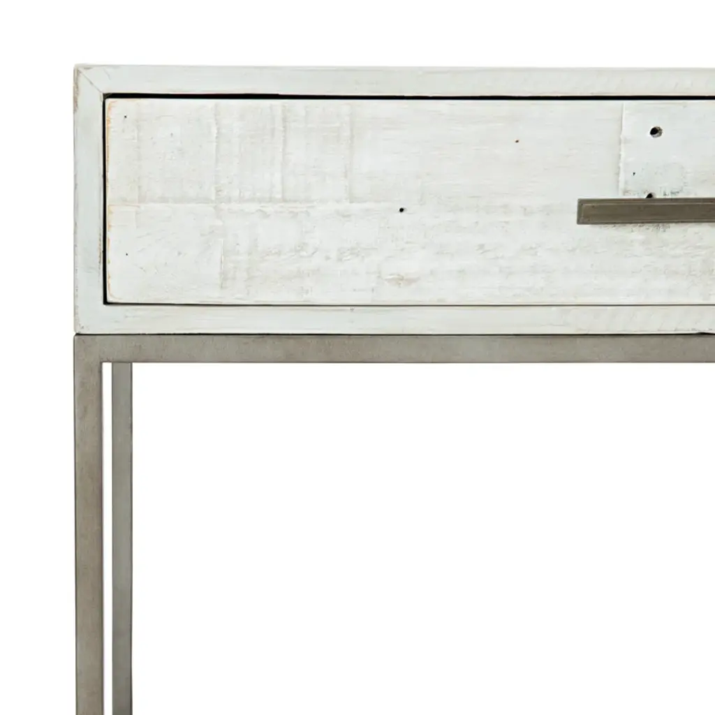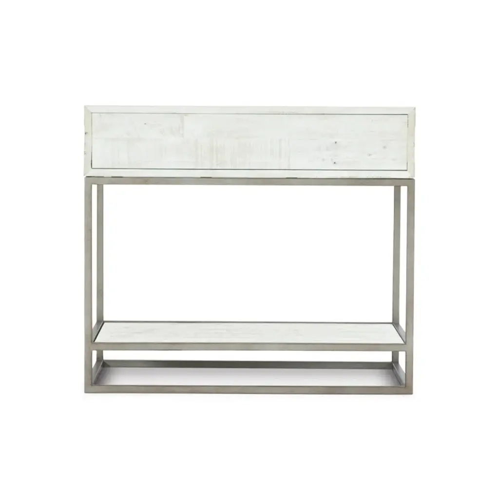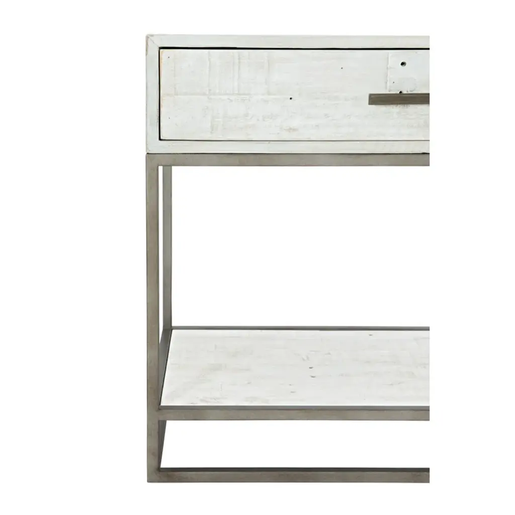 This collection, part of Bernhardt's eclectic Loft brand, blends the best features of the farmhouse and mid-century design, with a one-of-a-kind appeal and laid-back vibe. The planked wood top and drawer box with a single drawer are supported by a tubular steel base with stark, clean lines. A bottom wood shelf matches the top's design. This piece is designed by Bernhardt Furniture, a luxury heritage brand that is renowned for iconic furniture design.