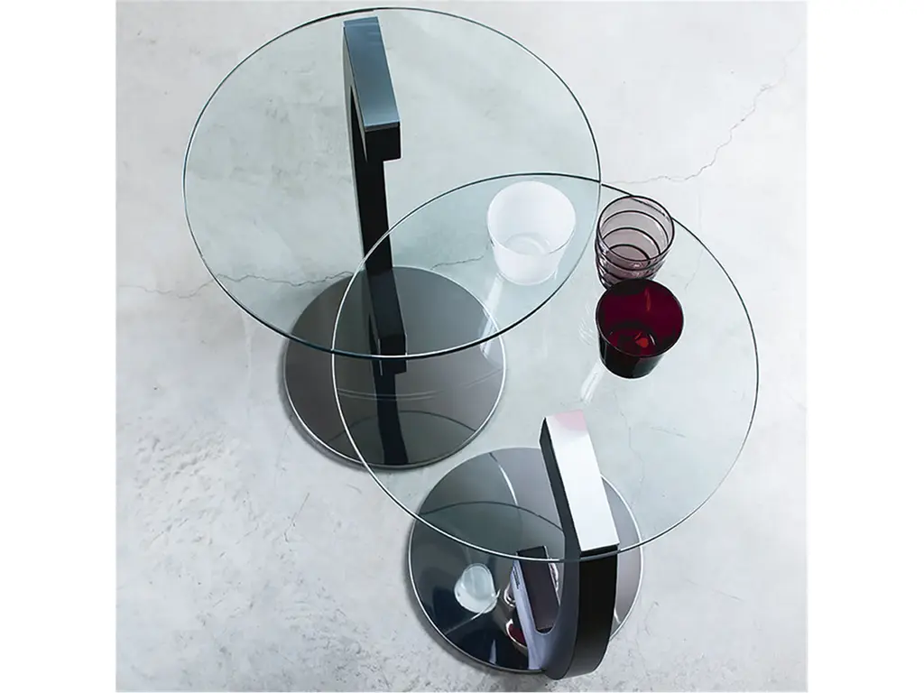 The Zen side table is agile, luminous, and unobtrusive. The table is designed to slide underneath a couch, chair, or bed to create a makeshift work area or place to eat. With a geometrically inspired silhouette, it adds an edgy style to the room. The contrasting finishes stand out against one another and create a one-of-a-kind look. Thanks to the use of the best quality materials, it is sustainable for years to come. Designed by Giorgio Cattelan, the Zen side table is available in two heights. It features a round polished stainless steel base connected to its round top by a wenge wood finished curved leg. The round top is available in clear, as well as polished stainless steel. Made in Italy by Cattelan Italia, Zen can also be used as a nightstand.