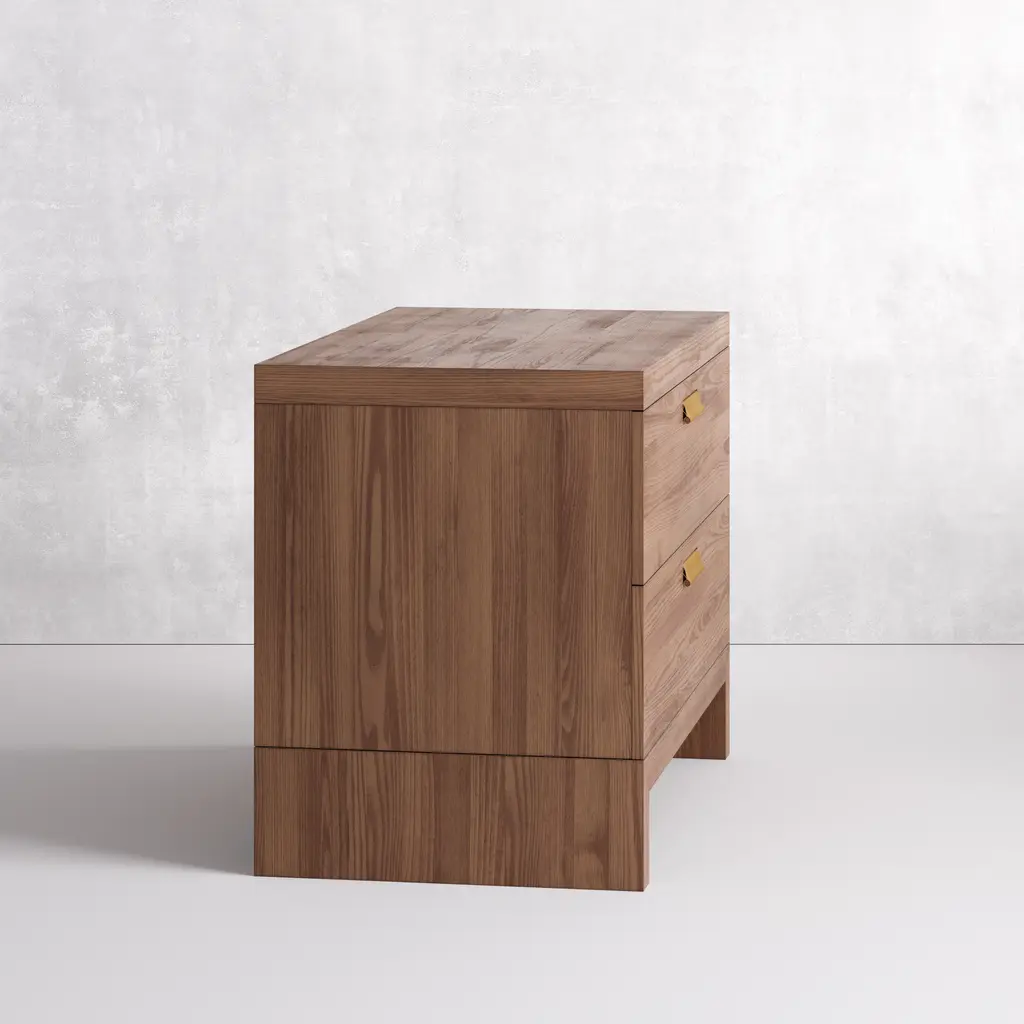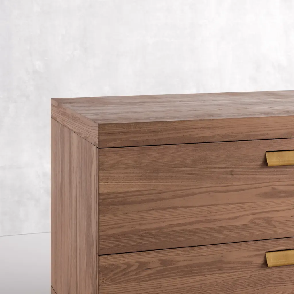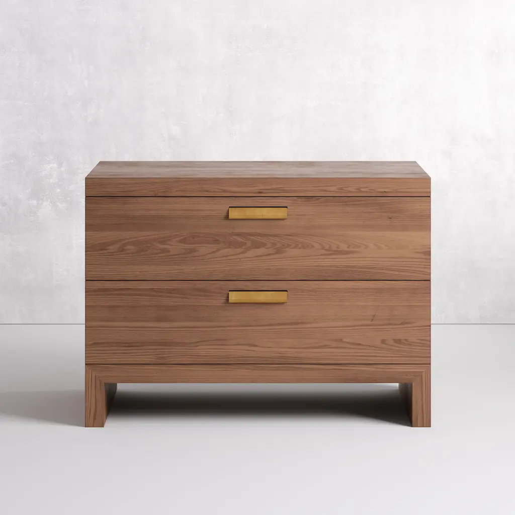 Our retro Zenzy nightstand is Mid-century modern perfection. The veneer finish complements the understated taupe handles. It's easy to fall in love with the wide-set drawers the stretch edge-to-edge. The Zenzy's simple structure takes the best of the past and present to create a timeless look. Place our Zenzy nightstand in your bedroom next to a low-profile bed. Dimensions: 36.0''W x 20.0''D x 26.0''H Tear Sheet
