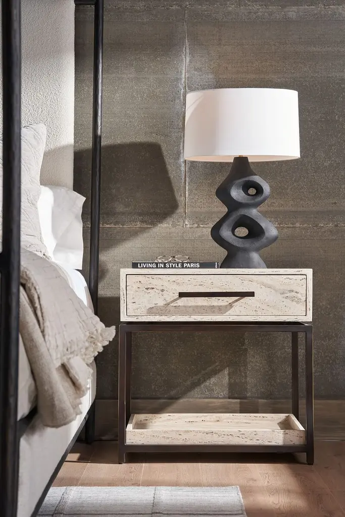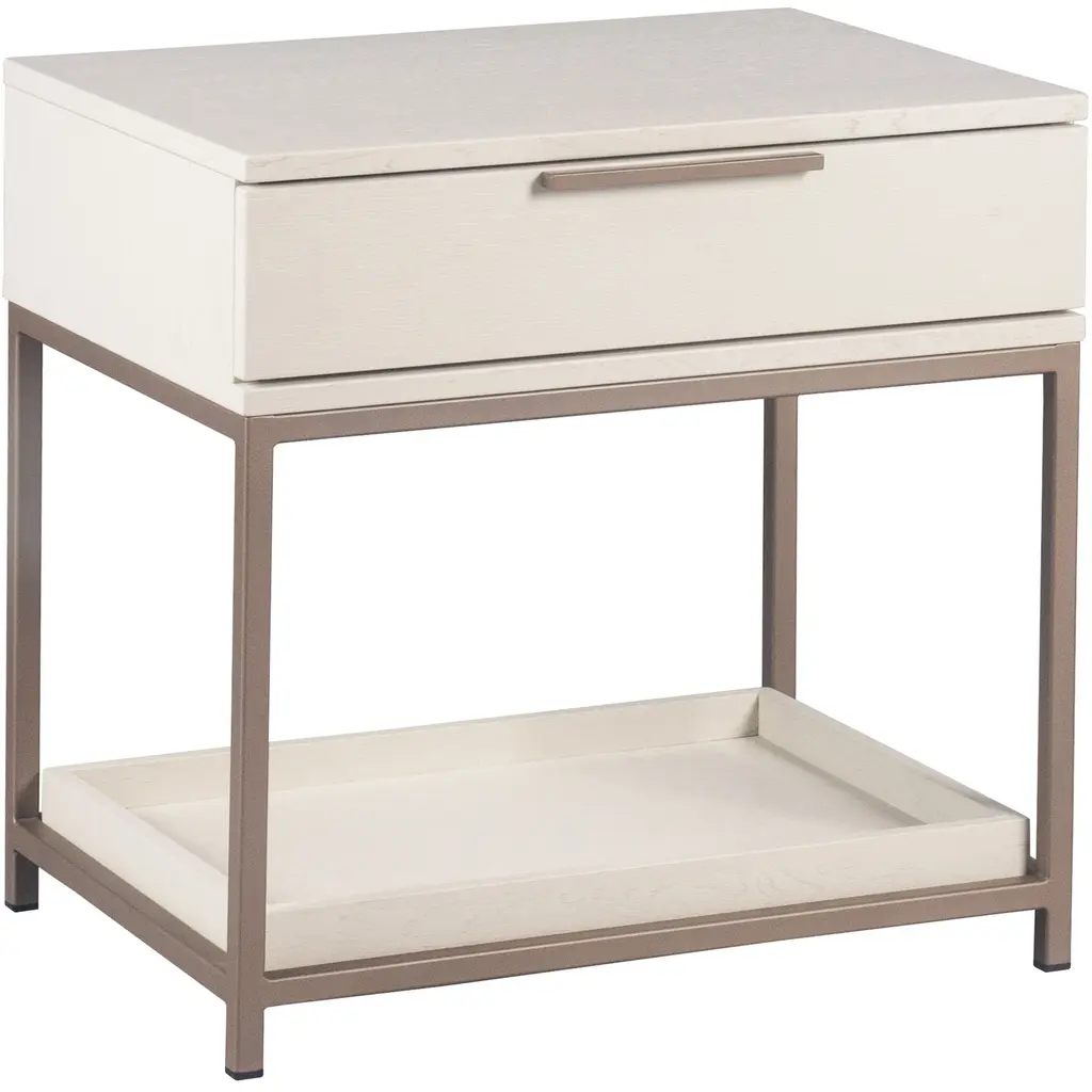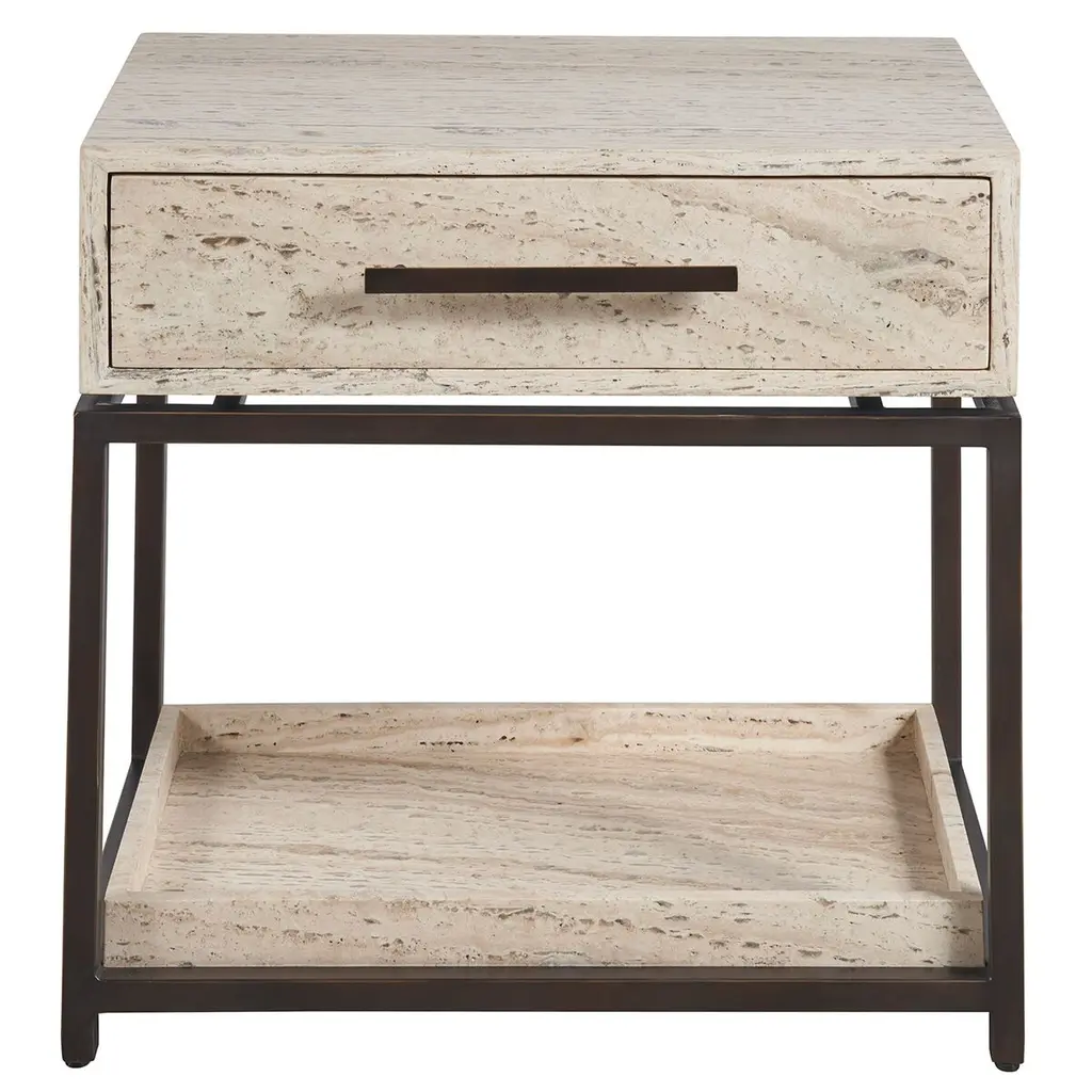 Zora 1-drawer Nightstand, White Travertine/bronze