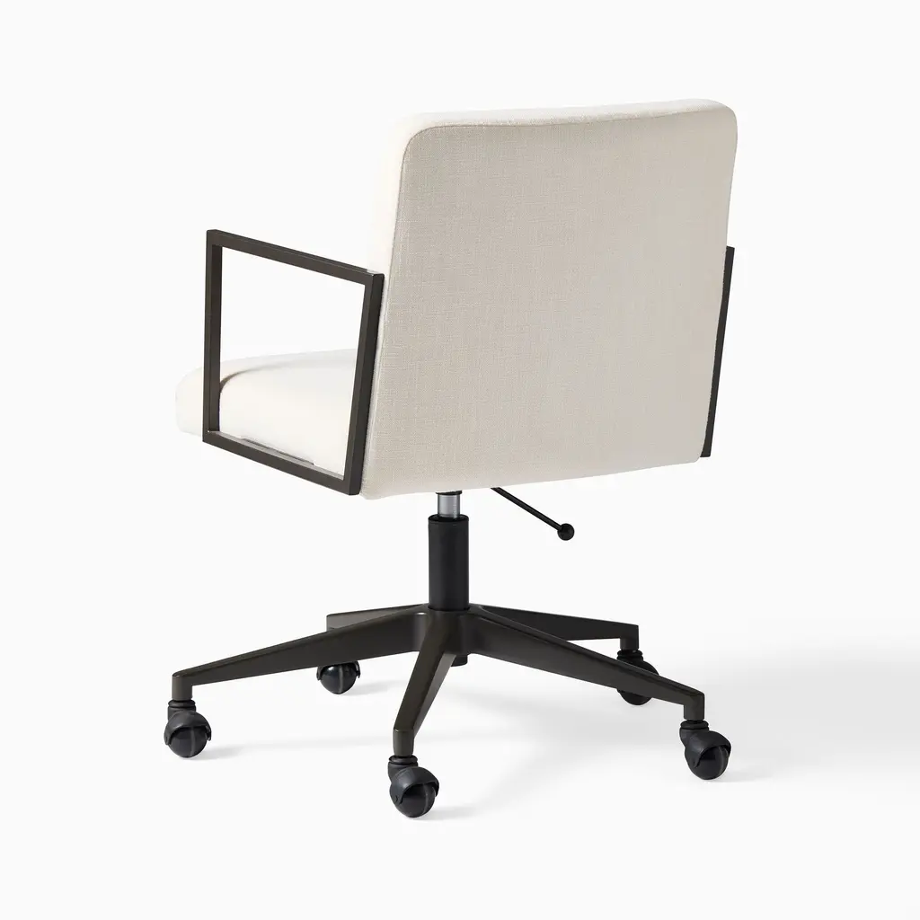Brings a clean-lined, modern vibe to a home office. Fully padded seat and back are ultra comfortable. Covered in your choice of stylish upholstery. Contract Grade for unmatched durability.