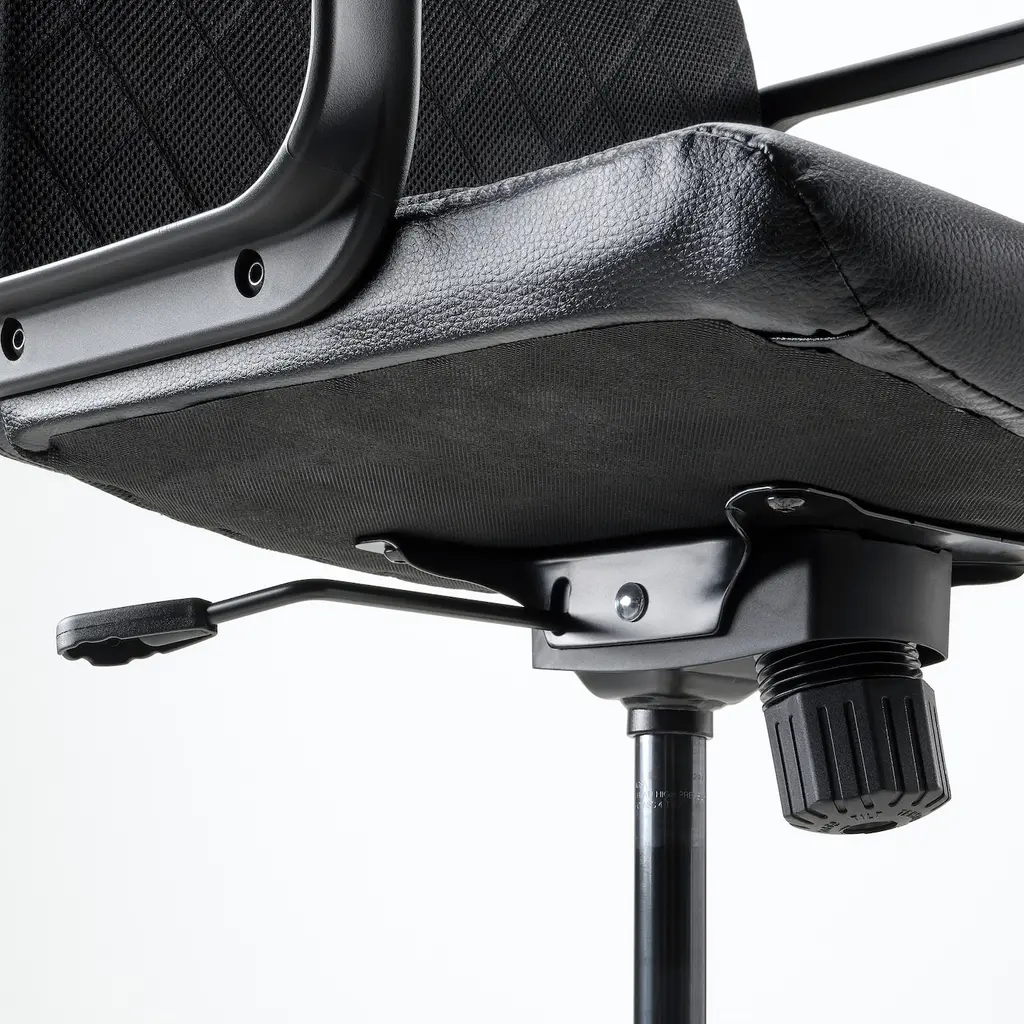 RENBERGET Swivel chair - Bomstad black. This swivel chair has adjustable tilt tension that allows you to adjust the resistance to suit your movements and weight. To adjust the tilt tension, turn the knob under the seat to increase or decrease the resistance. May be used with KOLON floor protector.