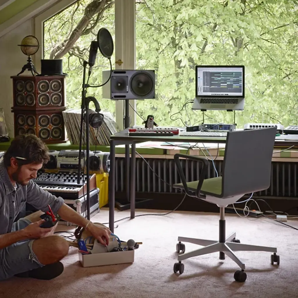 Add a real element of industry to your workspace with the Vitra .04 Task Chair. Designed by Maarten van Severen, this office chair provides a pleasingly minimalist look and ergonomic comfort. Its seat is molded out of single piece of flexible yet supportive polyurethane, and a rocking mechanism allows for movement in all directions (sitting, reclining and gentle side-to-side movement).