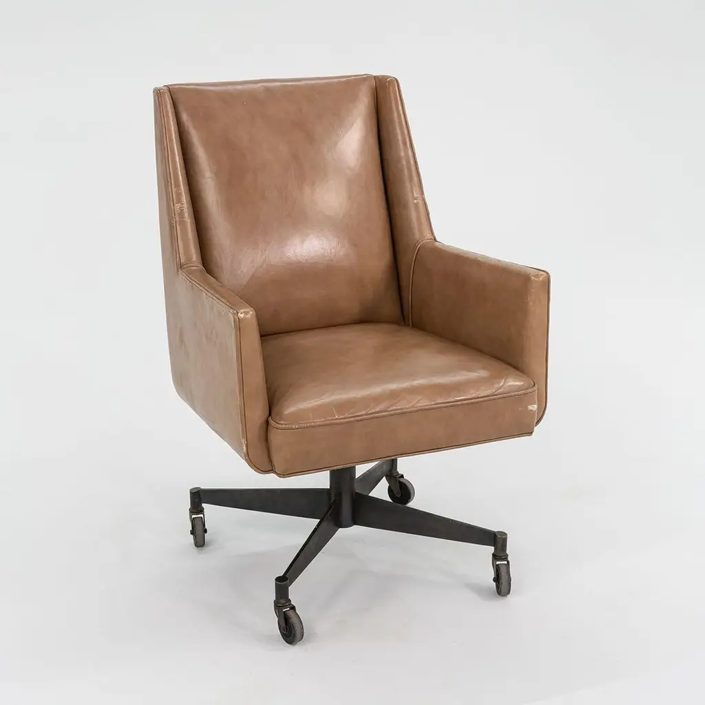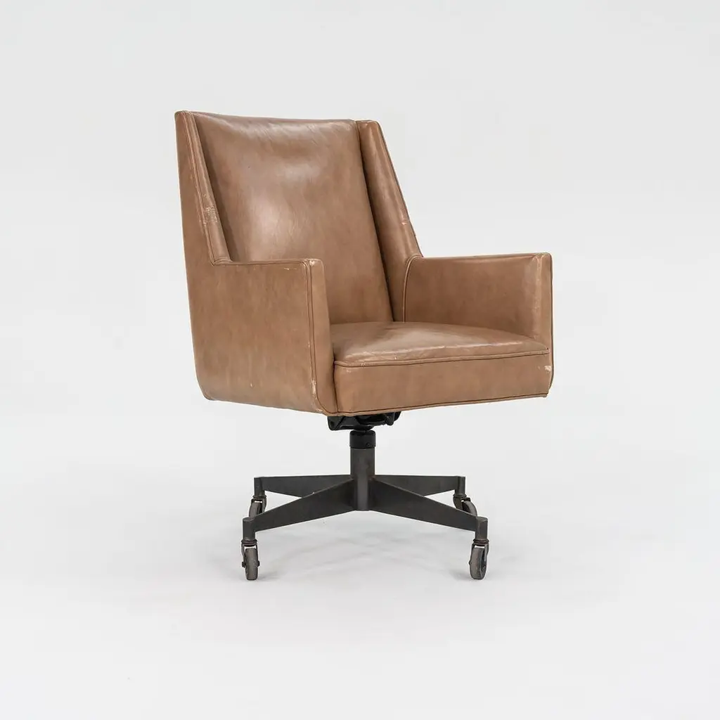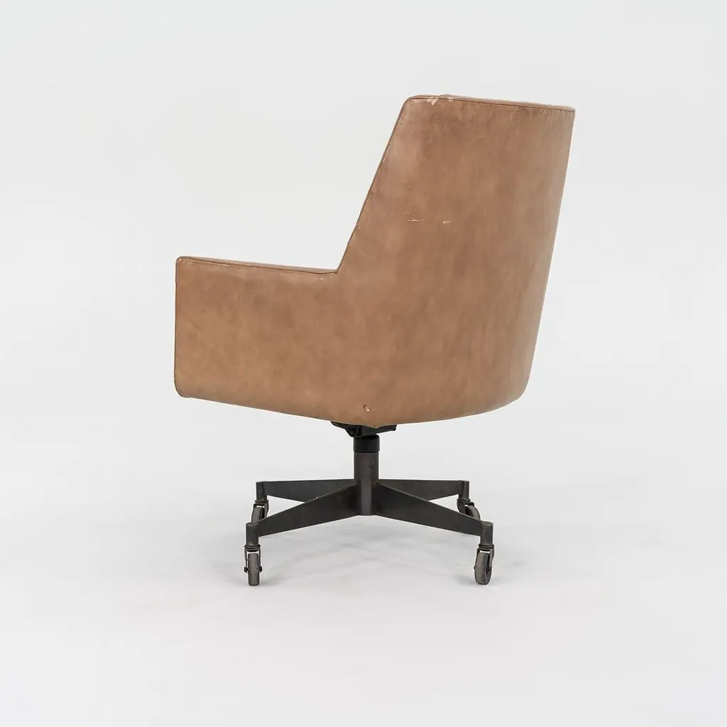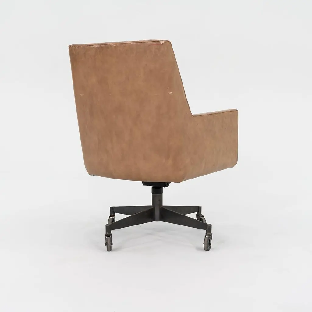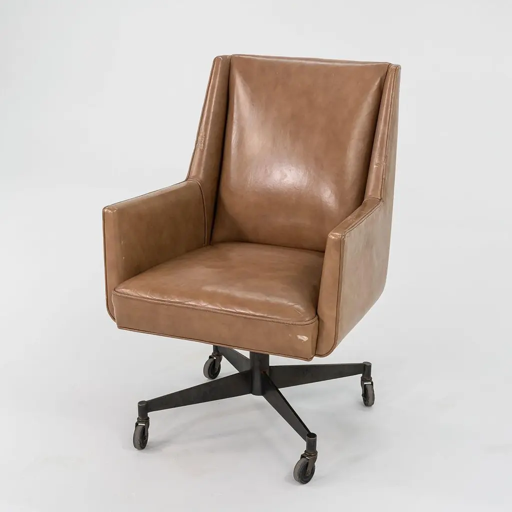 1960s Stow Davis Office Desk Chairs In Tan Leather W/ Bronze Bases 3X Available