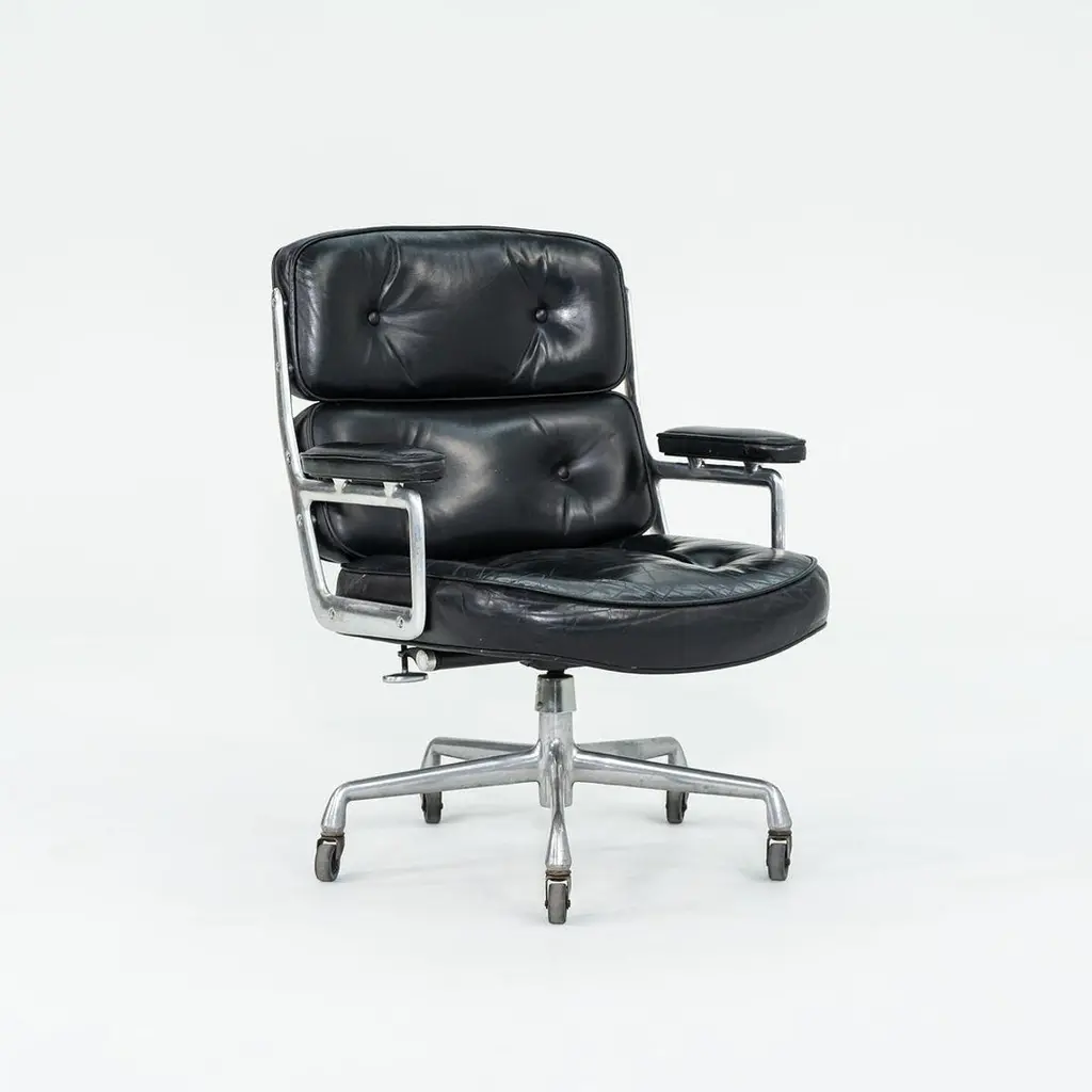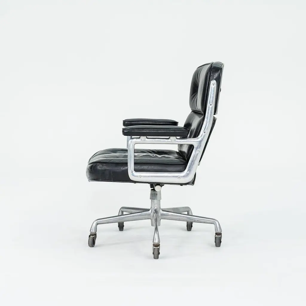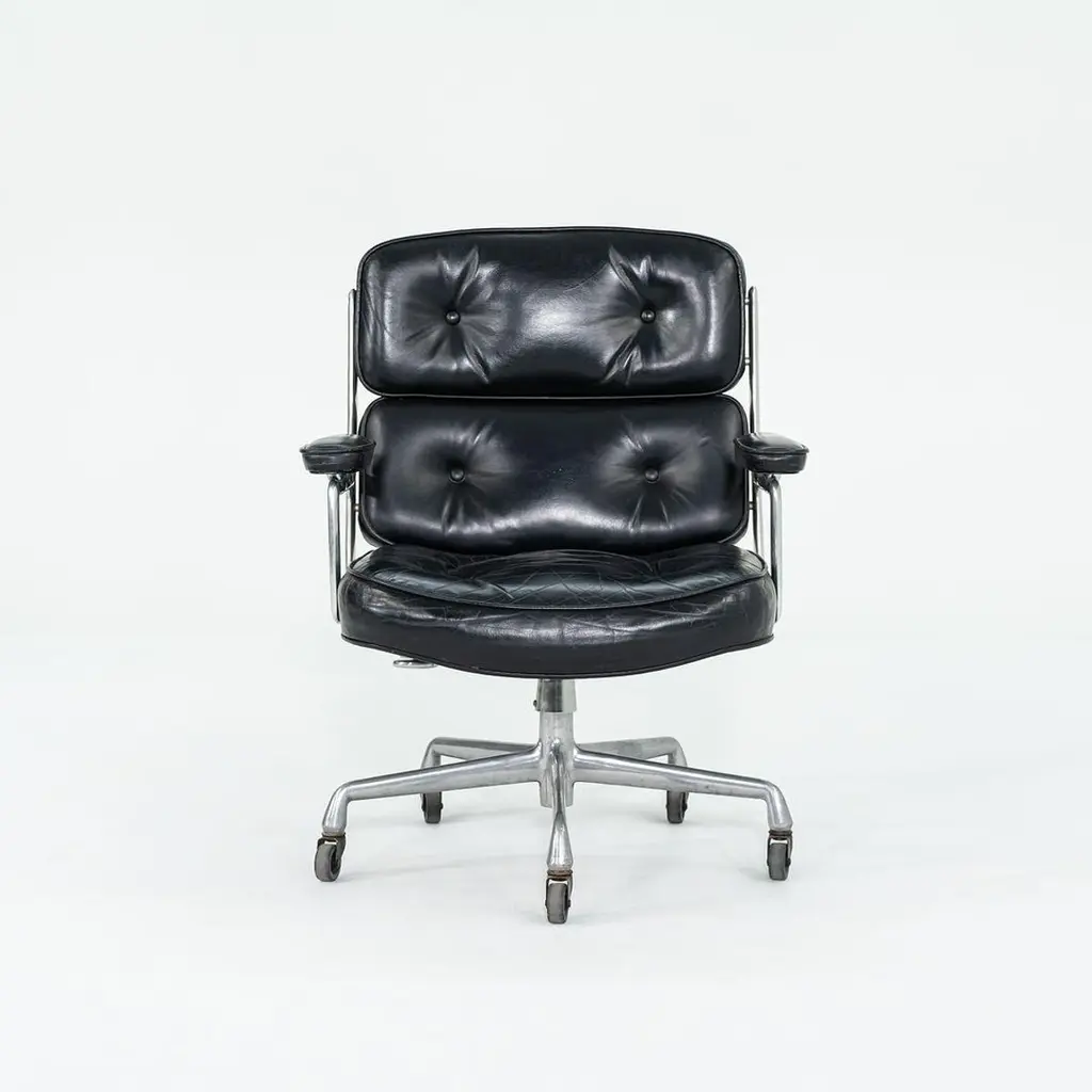 These are Eames Time Life Executive Desk Chairs, model 3474 , initially designed in 1961 by Charles and Ray Eames for Herman Miller. The listing price includes one executive chair, and we have several chairs available for purchase. Their design was born as a bespoke concept for the lobby of the Time Life Building in New York. This model is slightly less wide than the Time Life Lobby Chair. The pieces feature polished aluminum frames and have 5-Star swivel bases. They retain their original black leather upholstery. These examples date to 1968, however, have more contemporary 5-star bases. Everything aside from the 5-star base is original 1968 production. Each chair measures 19.5 inches deep, 26.5 inches wide, and 34.5 inches high at their lowest adjustable height. They are adjustable upwards to 37.5 inches high. They have a seat height that measures between 17-20 inches, and an adjustable arm height that measures between 24.5-27.5 inches. There are some small imperfections on their bases, and some wear on the leather upholstery . There is a warm patina to the leather on these, one that can only be realized via years of loving use. Overall, these chairs are in excellent vintage condition with some wear apparent. Please see photos. Genuinely faulty goods will be replaced or money refunded on a case by case basis, however we must be advised of any faulty goods upon receipt of the item. It is the customer's responsibility to pay for return shipping and ship the item back to us. If the item is found to be faulty, we will also refund the postage cost. If there is no damage to the item, but a return is approved, the buyer will be responsible for both the initial and return shipping cost. It is at our discretion to refuse the refund of undamaged goods. If an order is placed and you would like to cancel the order, please notify us immediately. Any refunds will be processed via the same means that payment was made.