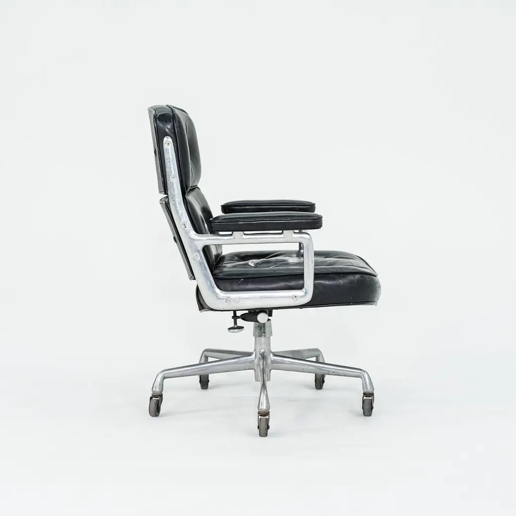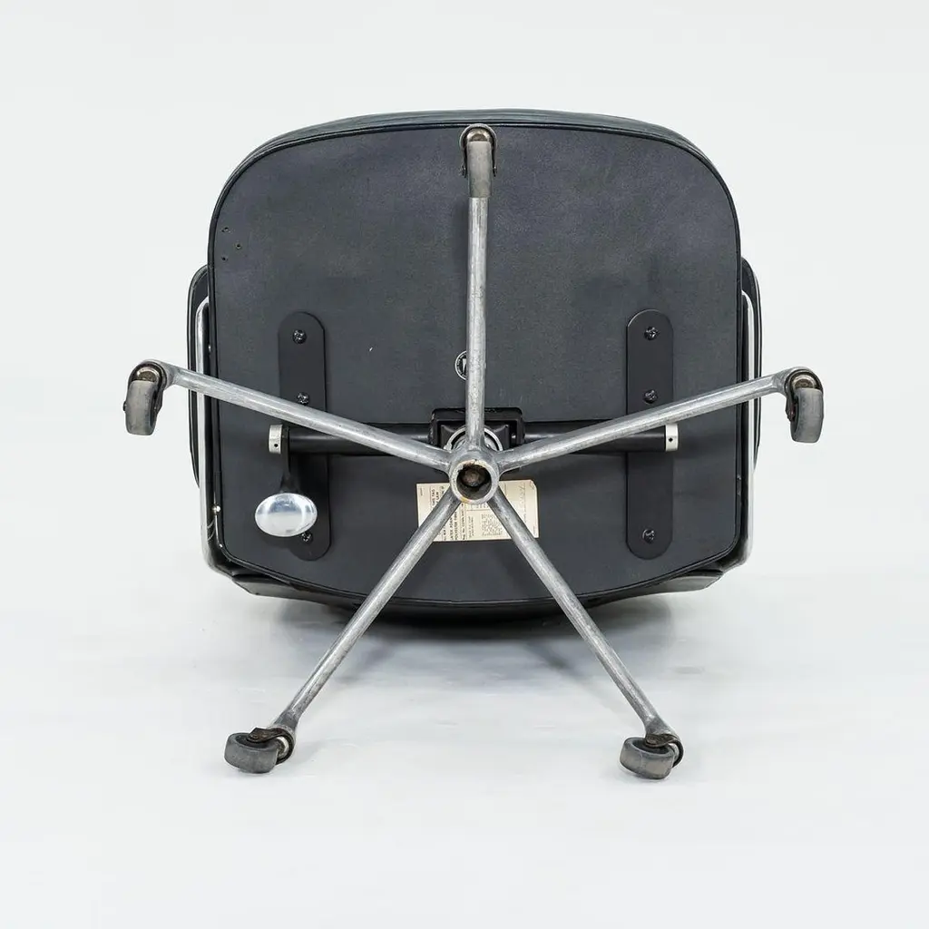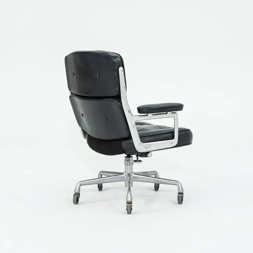 These are Eames Time Life Executive Desk Chairs, model 3474 , initially designed in 1961 by Charles and Ray Eames for Herman Miller. The listing price includes one executive chair, and we have several chairs available for purchase. Their design was born as a bespoke concept for the lobby of the Time Life Building in New York. This model is slightly less wide than the Time Life Lobby Chair. The pieces feature polished aluminum frames and have 5-Star swivel bases. They retain their original black leather upholstery. These examples date to 1968, however, have more contemporary 5-star bases. Everything aside from the 5-star base is original 1968 production. Each chair measures 19.5 inches deep, 26.5 inches wide, and 34.5 inches high at their lowest adjustable height. They are adjustable upwards to 37.5 inches high. They have a seat height that measures between 17-20 inches, and an adjustable arm height that measures between 24.5-27.5 inches. There are some small imperfections on their bases, and some wear on the leather upholstery . There is a warm patina to the leather on these, one that can only be realized via years of loving use. Overall, these chairs are in excellent vintage condition with some wear apparent. Please see photos. Genuinely faulty goods will be replaced or money refunded on a case by case basis, however we must be advised of any faulty goods upon receipt of the item. It is the customer's responsibility to pay for return shipping and ship the item back to us. If the item is found to be faulty, we will also refund the postage cost. If there is no damage to the item, but a return is approved, the buyer will be responsible for both the initial and return shipping cost. It is at our discretion to refuse the refund of undamaged goods. If an order is placed and you would like to cancel the order, please notify us immediately. Any refunds will be processed via the same means that payment was made.