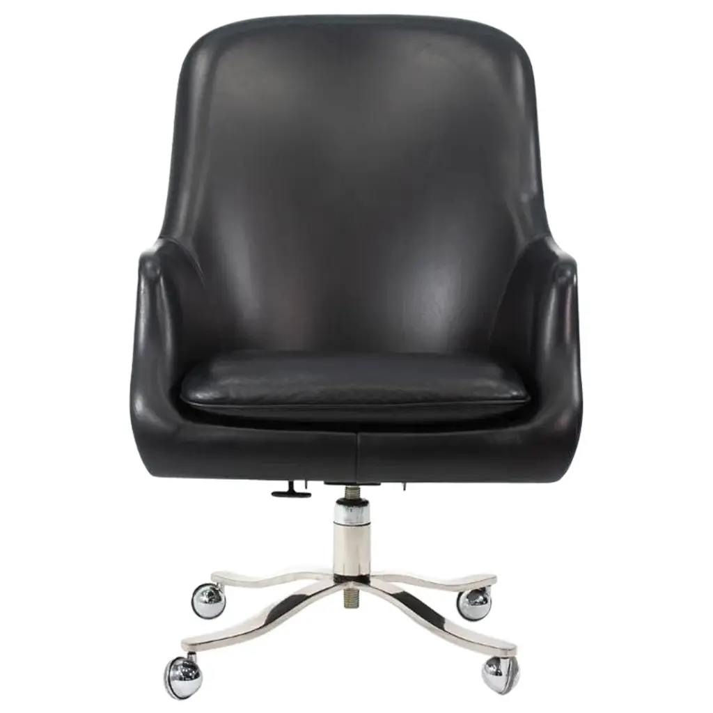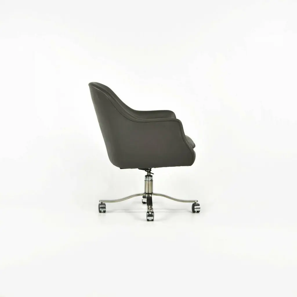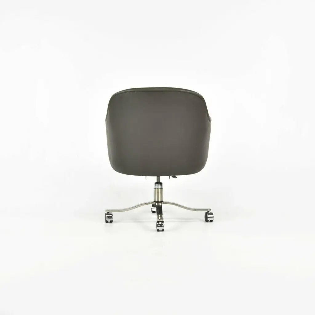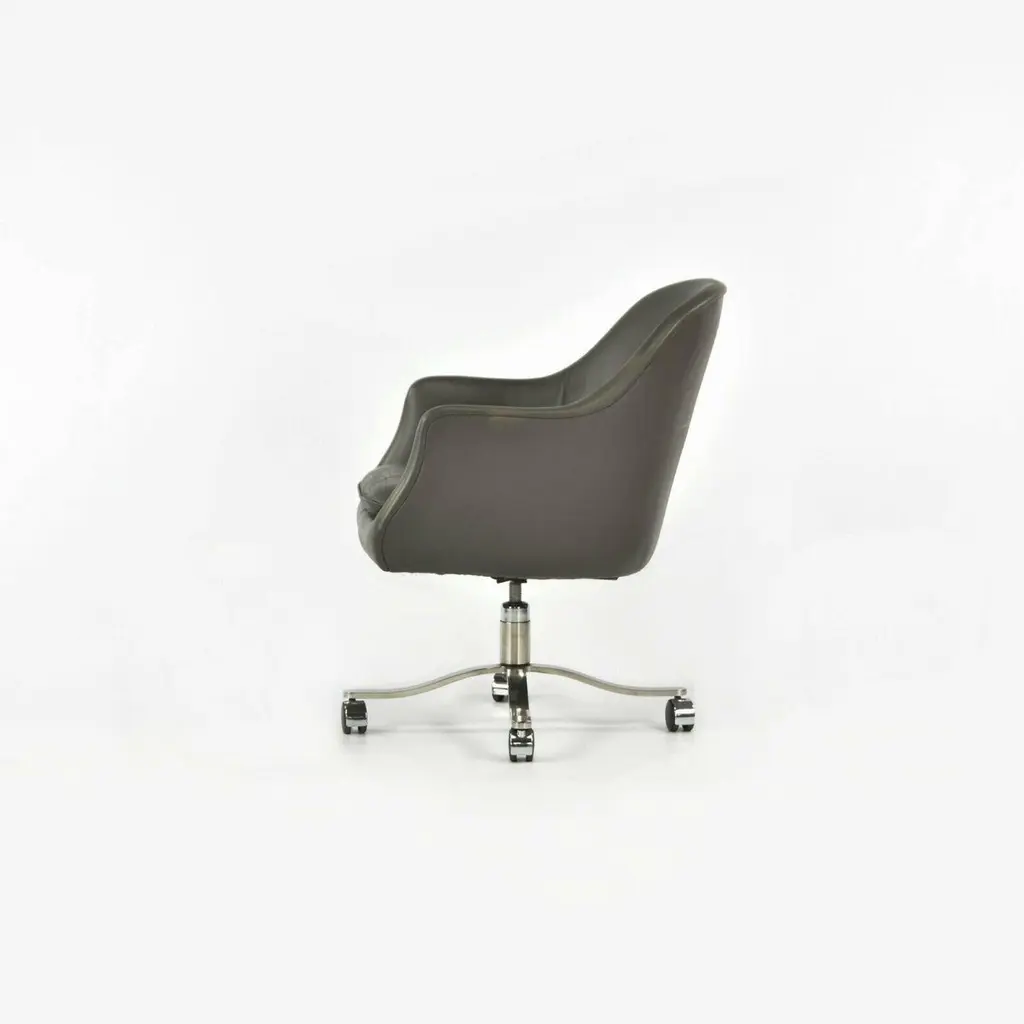 Listed for sale is one (the price listed is for one chair, but two are available) very rare Nicos Zographos rolling bucket desk chairs in gray leather with polished stainless steel alpha bases. The chairs are in very good to excellent vintage condition showing some wear from use and light wear to the bases (see photos). The chairs retain their original Zographos labels and date to circa late 1980s.As noted, the price listed is for one chair. Two chairs are available.For reference, Nicos Zographos, the renowned industrial designer, became a household name at Skidmore, Owings, and Merrill (SOM) architects during the late 1950's and continued to have a relationship with the architectural firm for many decades. He split off to form Zographos Designs Limited. Zographos pieces are known for their uncompromising craftsmanship and quality of materials.Each chair measures 38 inches tall by 28 inches wide and 28 inches deep. They height is adjustable.