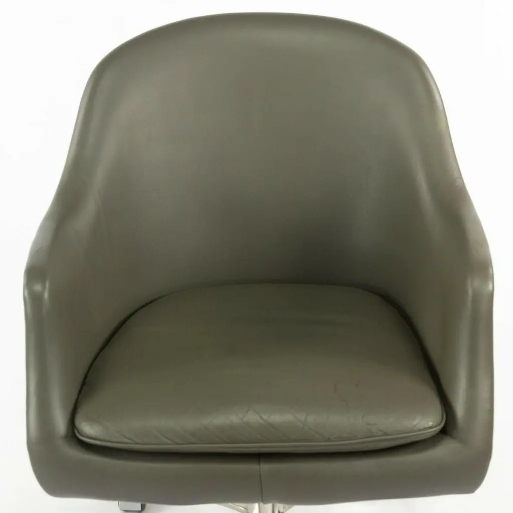 1980s Nicos Zographos Grey Leather Bucket Desk Chairs W/ Alpha Bases