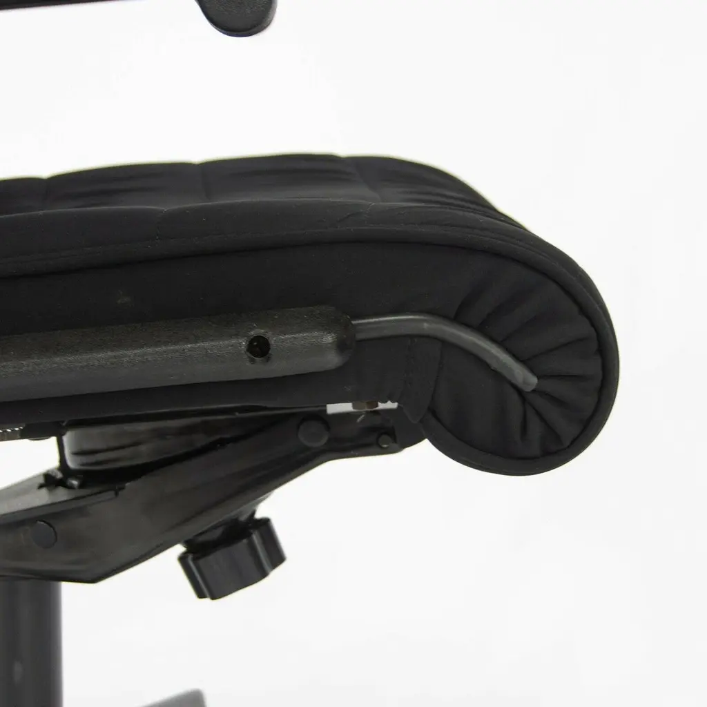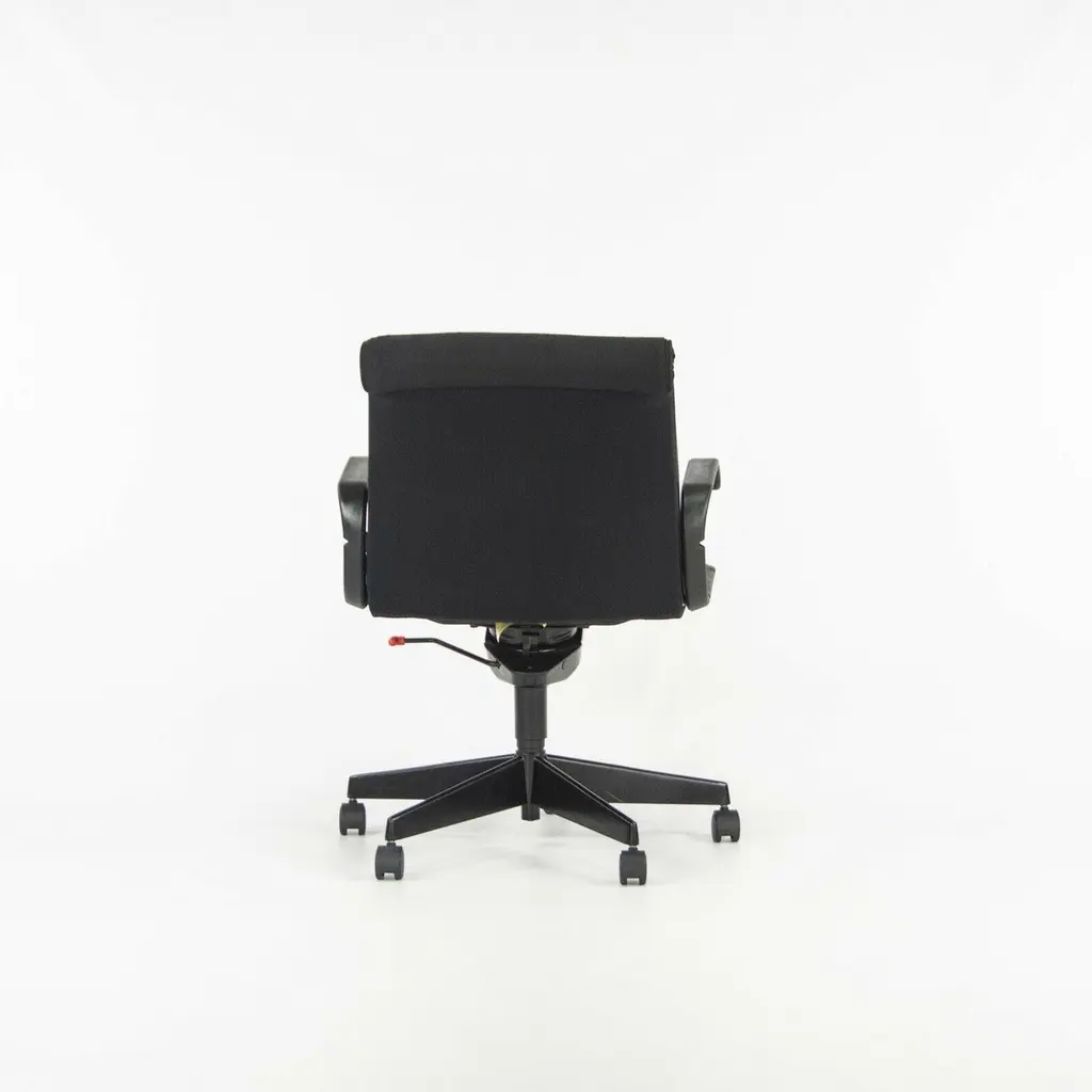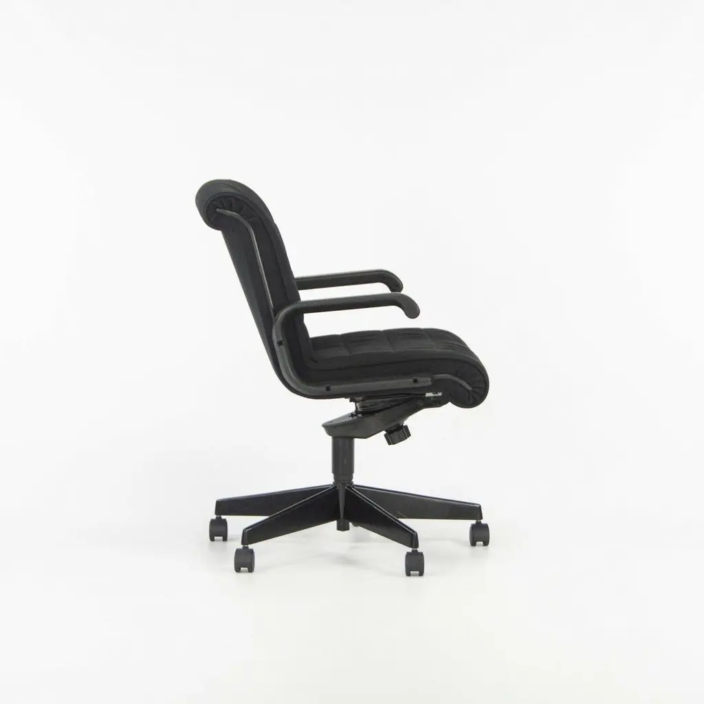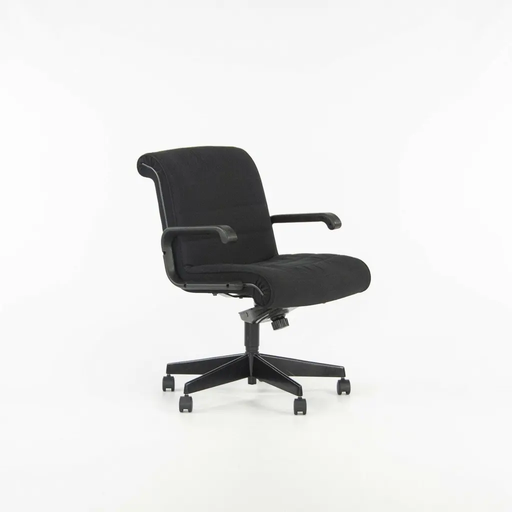 Listed for sale is a (multiple chairs are available but the price listed is for one chair) Richard Sapper for Knoll office / desk chair in black fabric with black enameled frame. This is an iconic design from the legendary industrial designer and in a less frequently seen material. The production date appears to be circa mid 1990s. Each of the chairs is in very good condition with some wear from use (see photos). The fabric shows some creases formed as shown, which have no affect on the chair comfort-wise.The chair measures 25 inches wide by 24.75 inches deep and 34-38 inches tall.