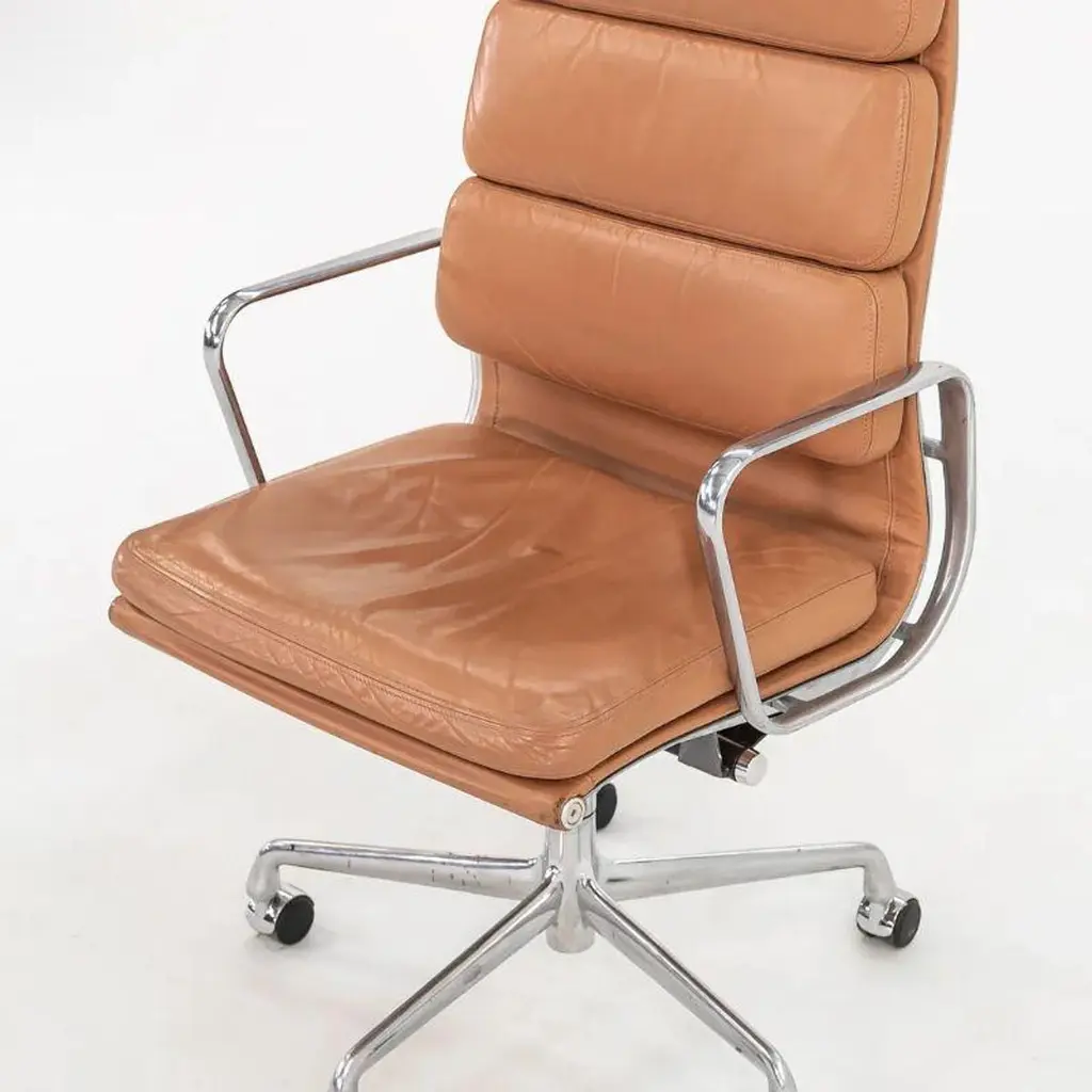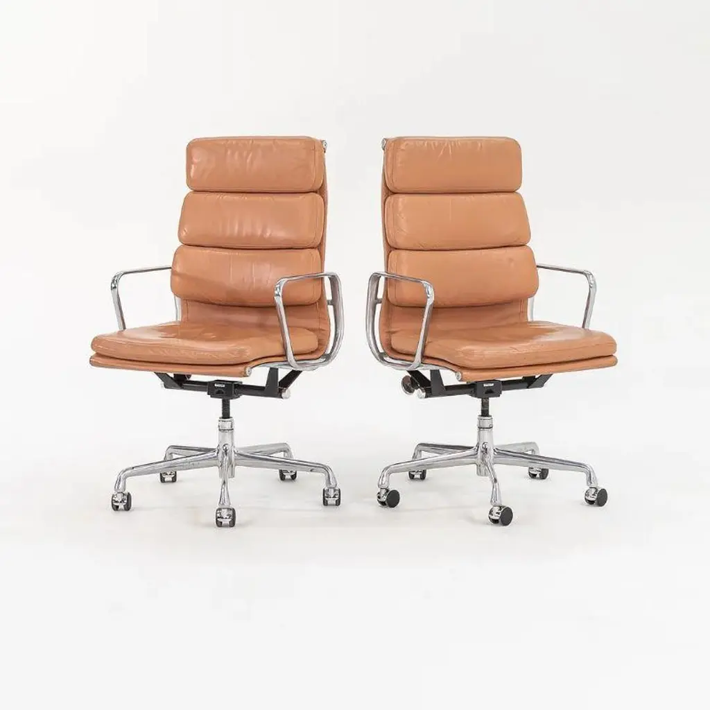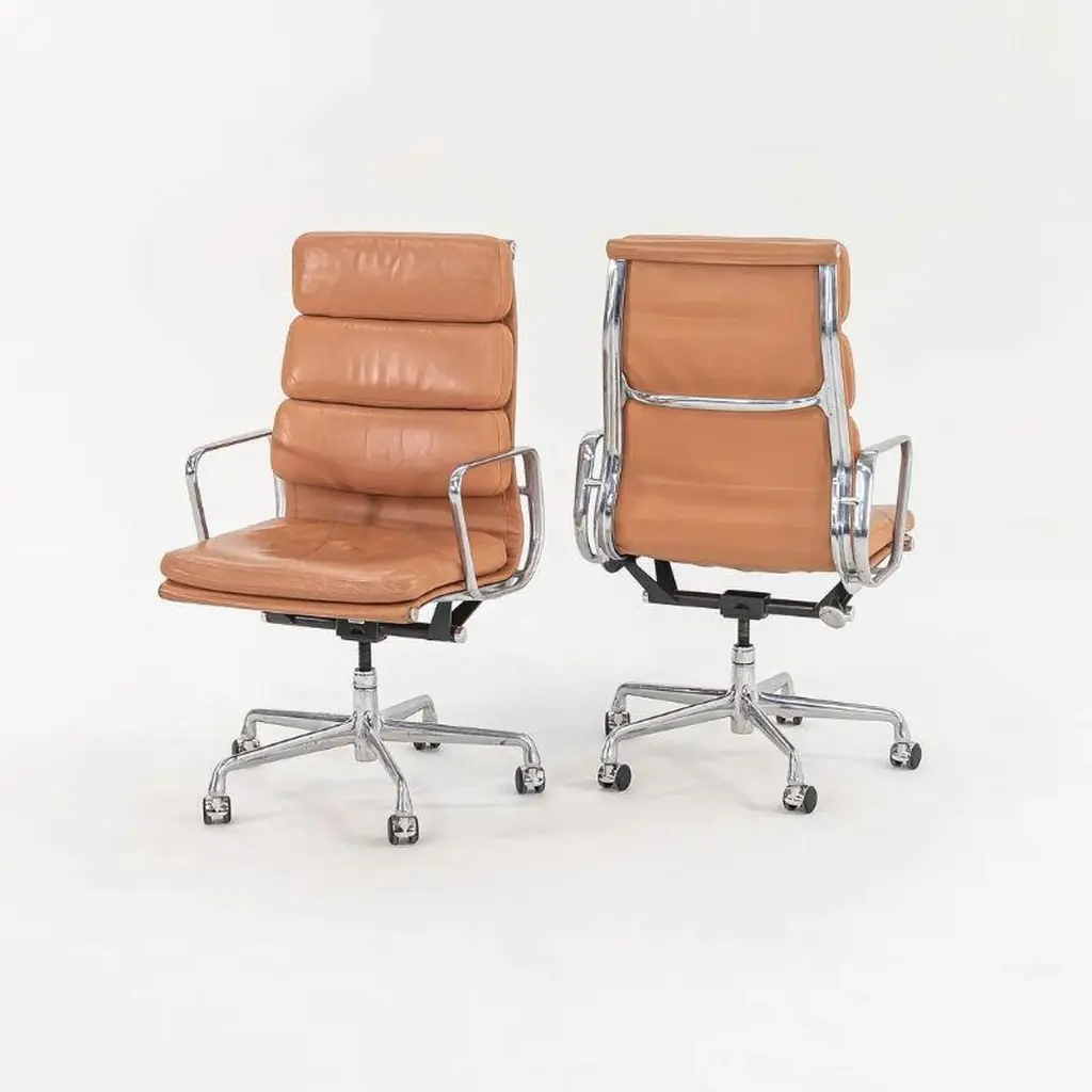 2004 Herman Miller Eames Soft Pad Executive Desk Chairs In Tan Leather
