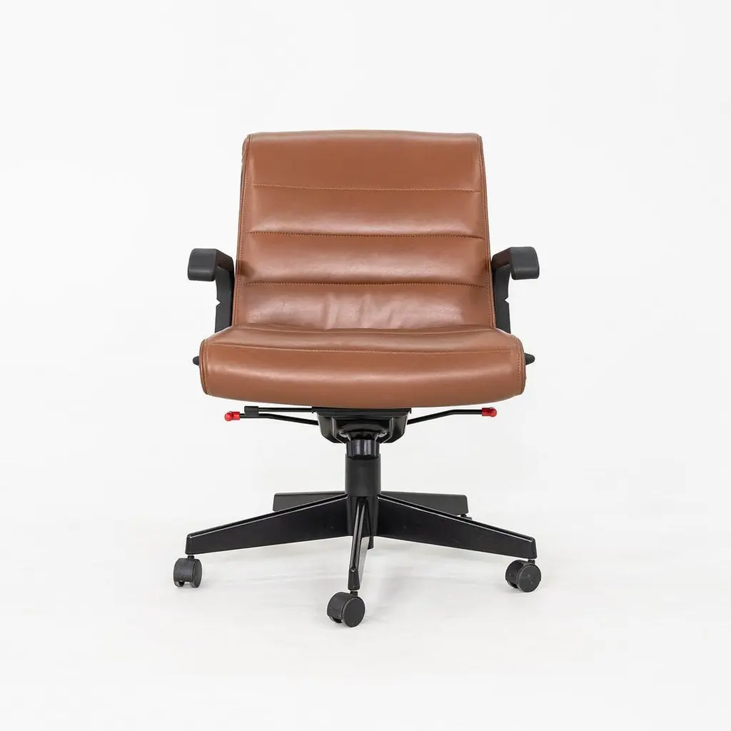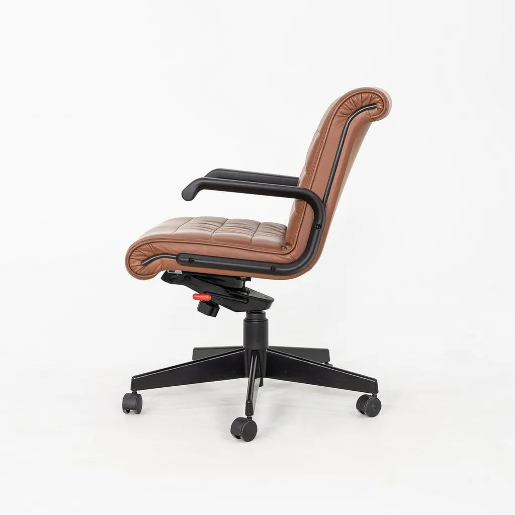 2005 Richard Sapper For Knoll Management Desk Chairs In Dark Cognac Leather
