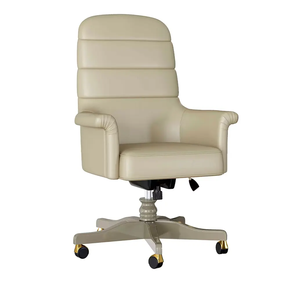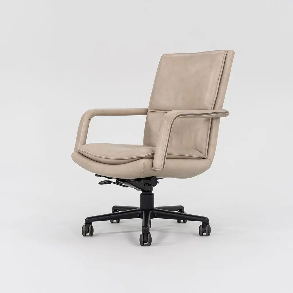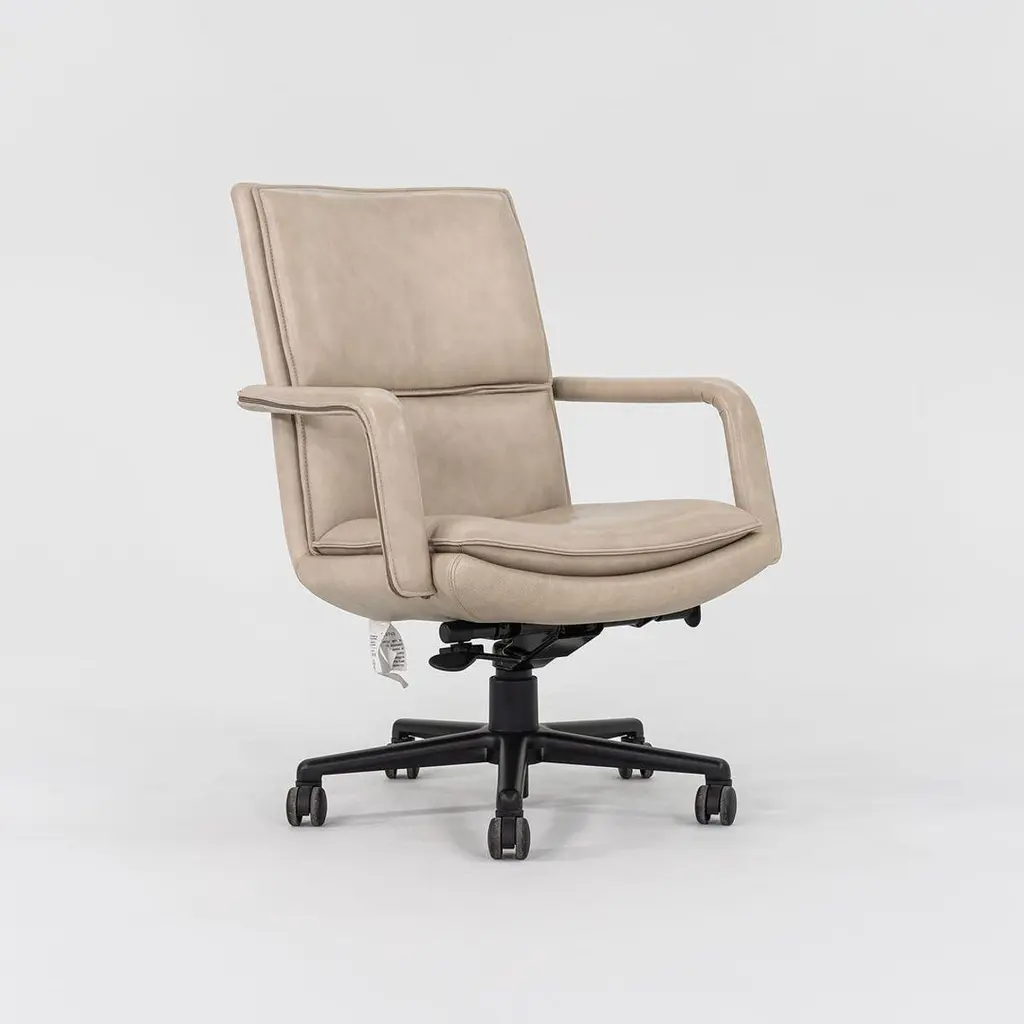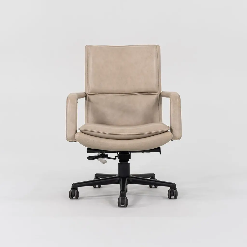2010s Keilhauer Elite 597 Desk Chair In Ecru Tumbled Leather W/ Pneumatic Base