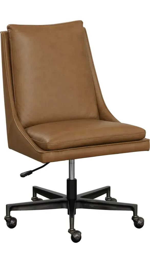 2016 Bernhardt Designs Cardan Desk Chair In Tan Leather With Pneumatic Base