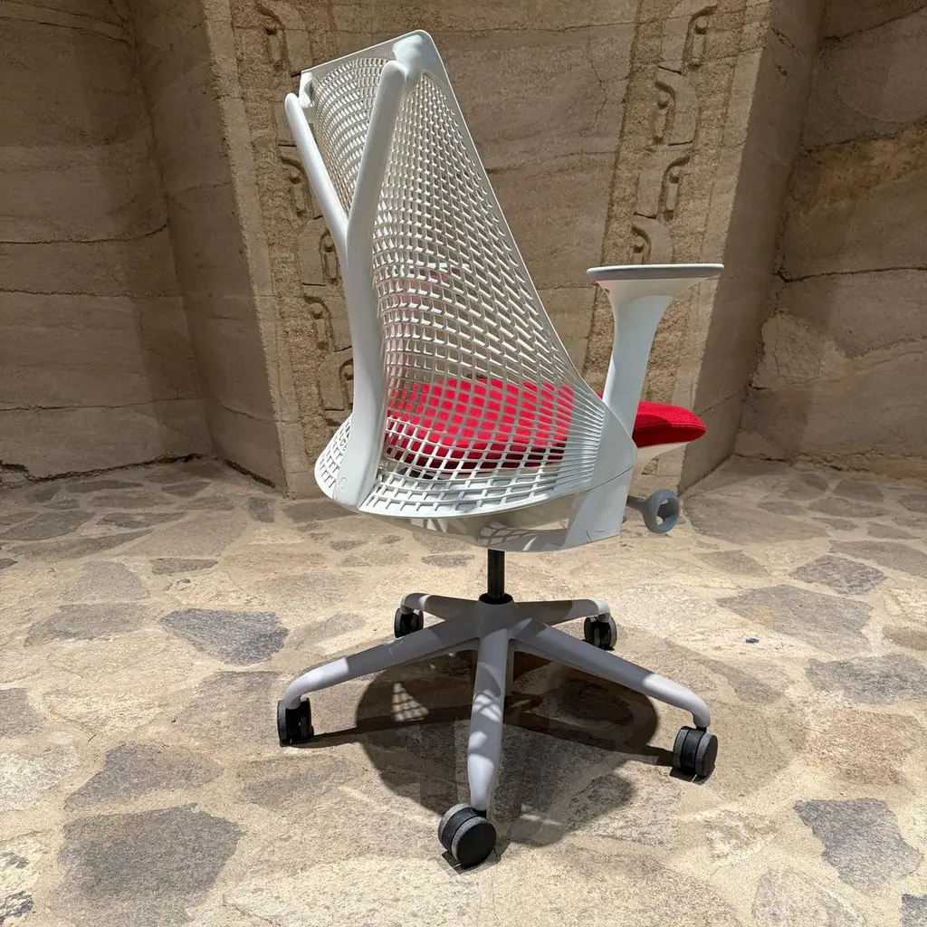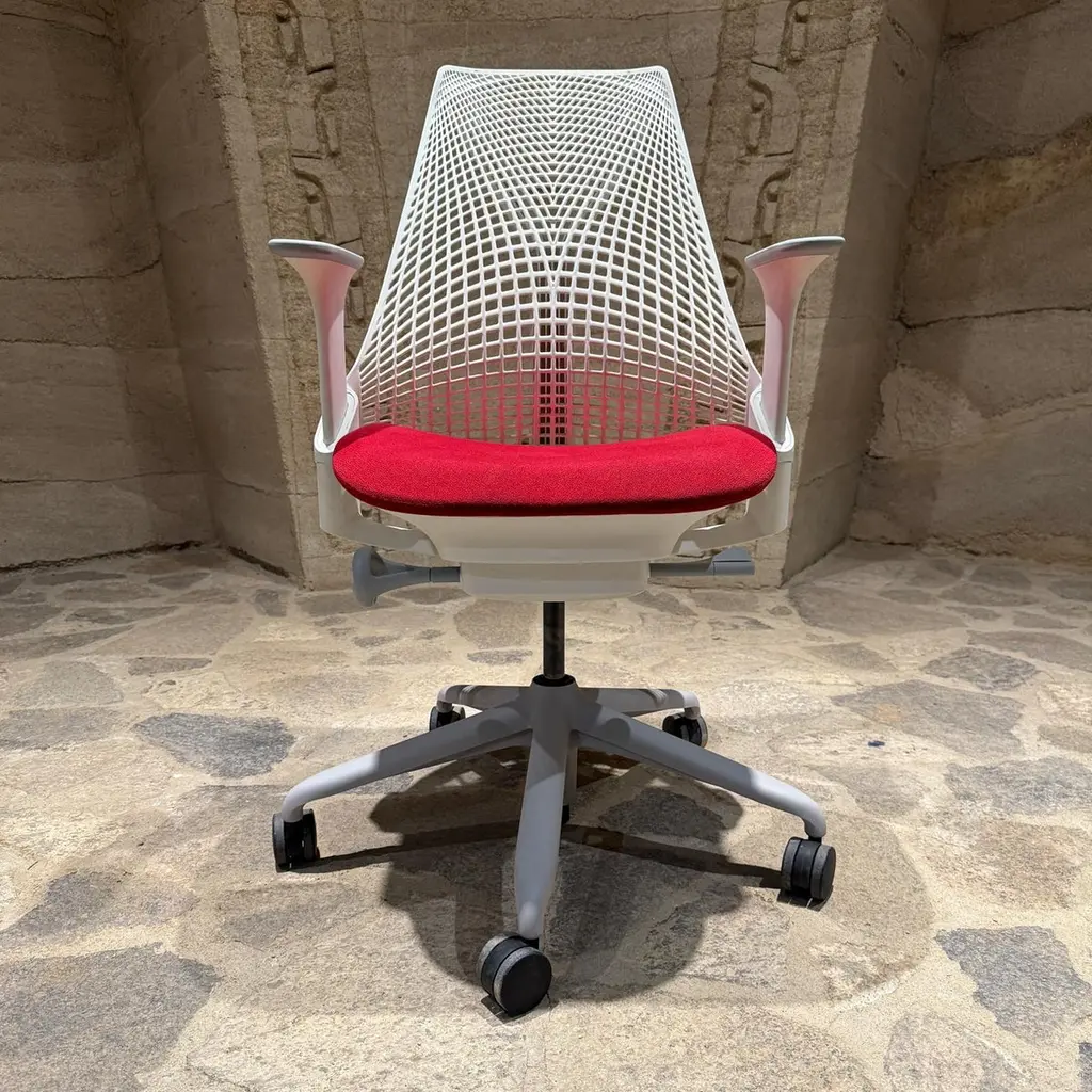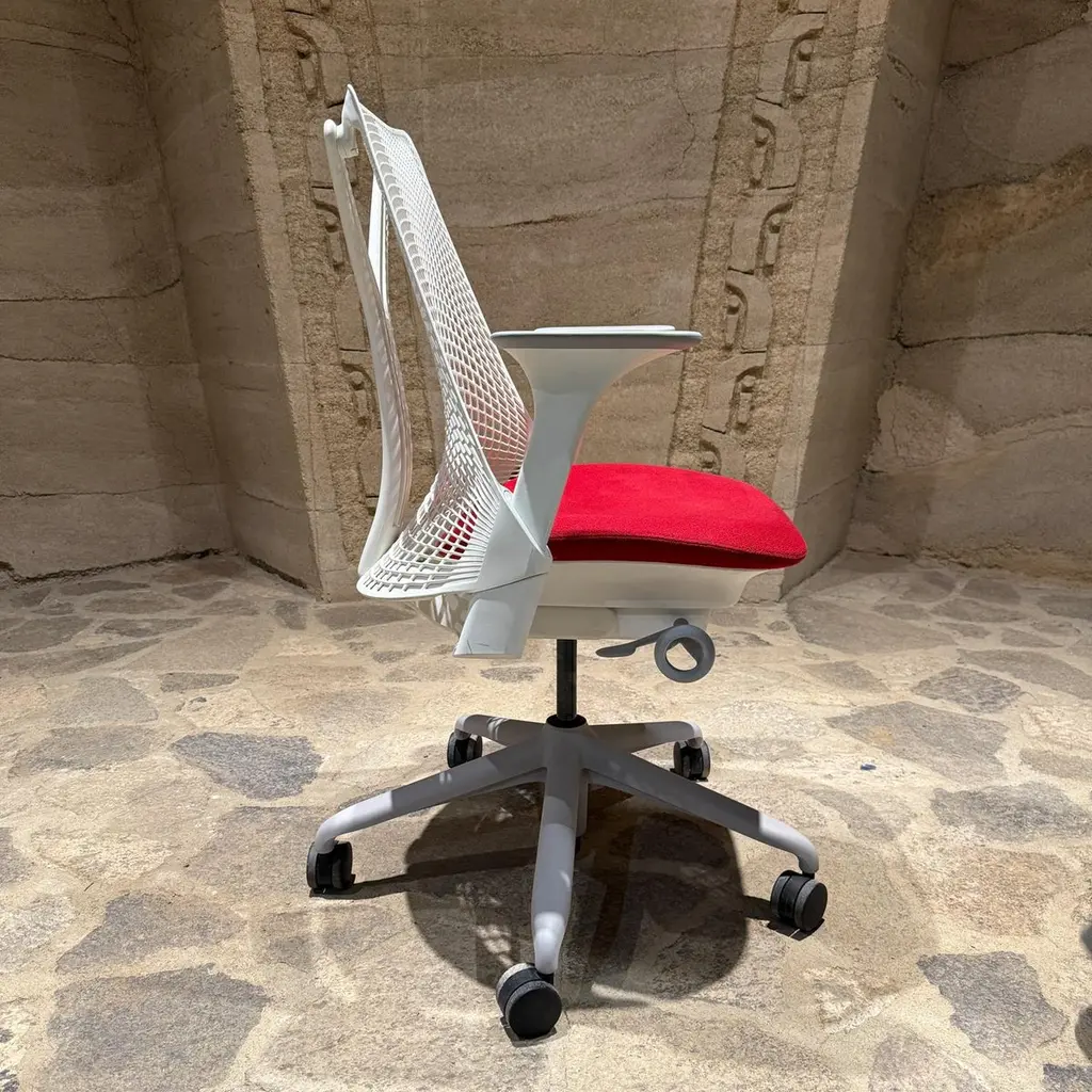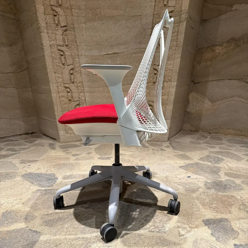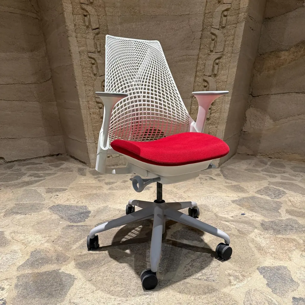 For your consideration a 2019 Herman Miller Red and White Sayl Office Task ChairAluminum , plastic and fabricdesign Yves Behar 201039 h x 24 w x 24 dadjustable seat height 16.5 -21Preowned vintage unrestored conditionRefer to all images listedDelivery within 200 miles from San Diego CA is available for an additional fee. (LA, OC, PS)