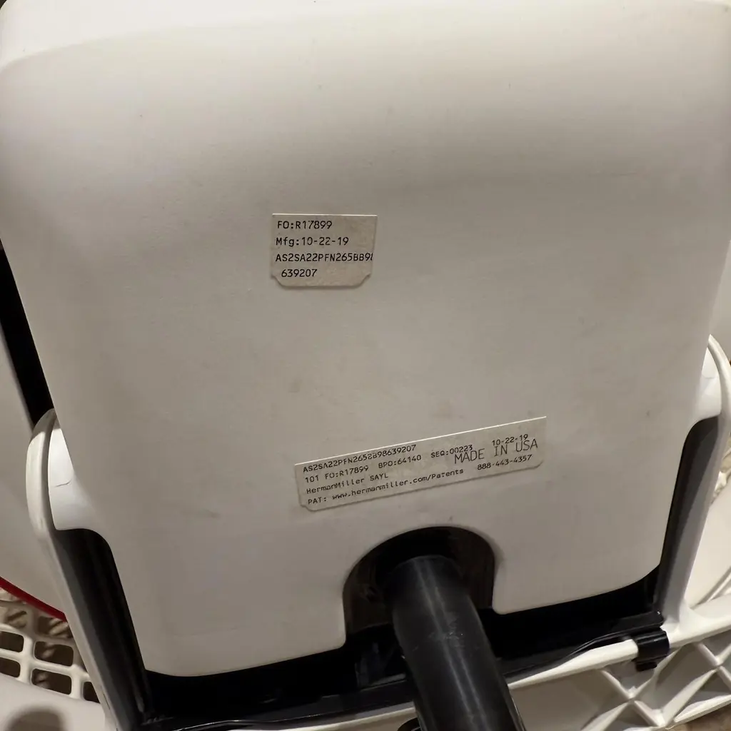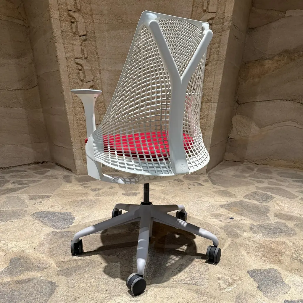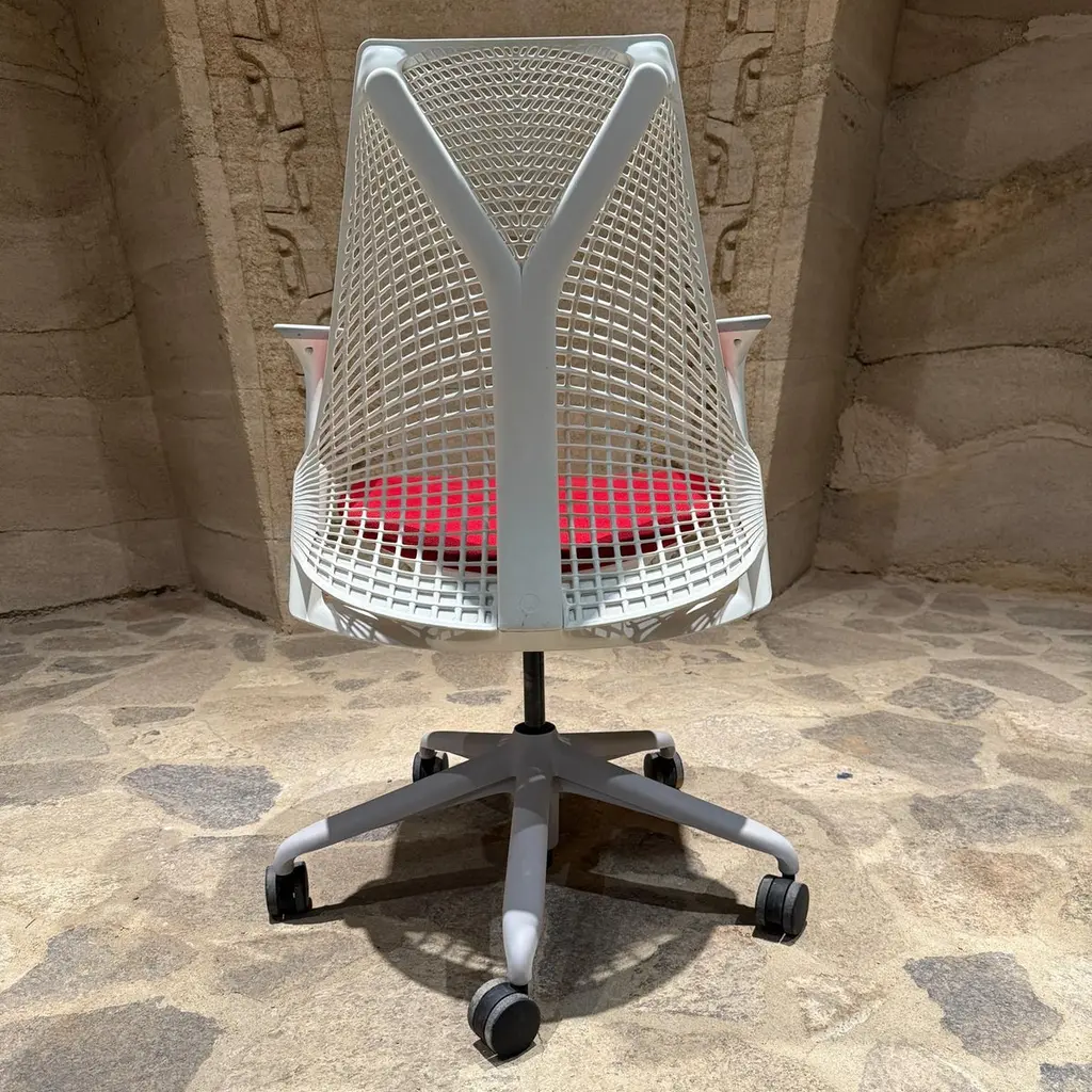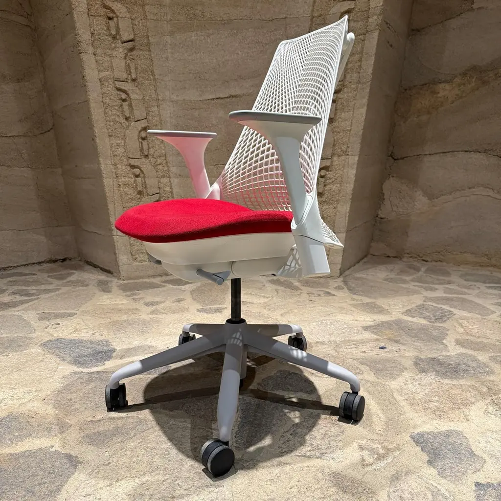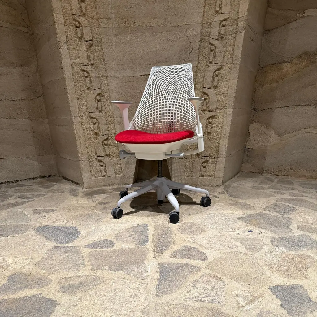 For your consideration a 2019 Herman Miller Red and White Sayl Office Task ChairAluminum , plastic and fabricdesign Yves Behar 201039 h x 24 w x 24 dadjustable seat height 16.5 -21Preowned vintage unrestored conditionRefer to all images listedDelivery within 200 miles from San Diego CA is available for an additional fee. (LA, OC, PS)