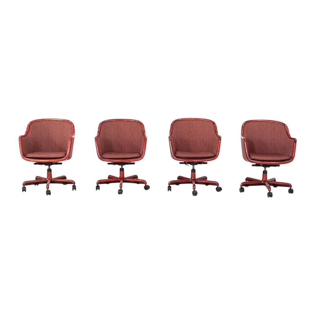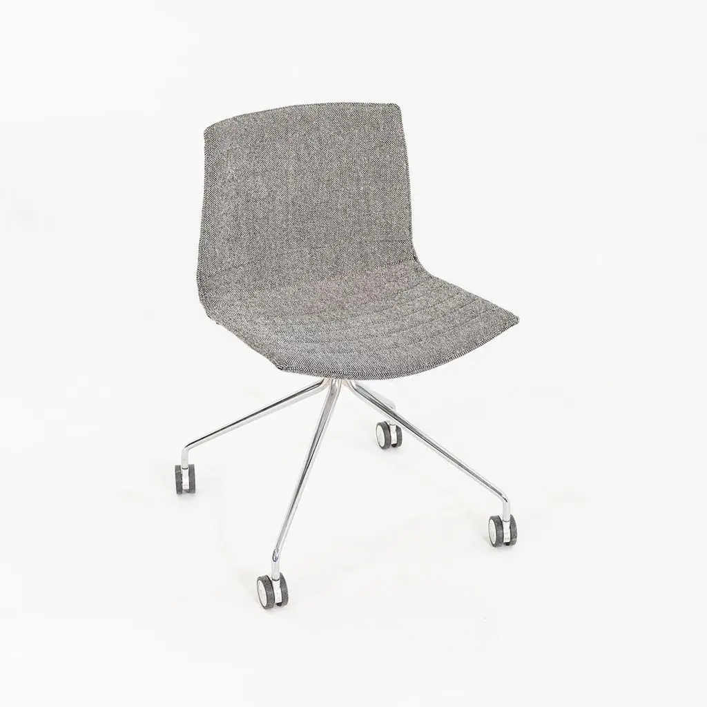 These are Catifa 53 Desk Chairs, originally designed by Lievore Altherr Molina in 2013. These particular examples were produced by Arper in Italy in 2020. The chairs are comprised of a 4 star aluminum pneumatic base with a plastic shell seat upholstered in grey fabric. The listed price includes one chair and there are four available to purchase. The Catifa 53 measures 25.625 inches deep, 25.75 inches wide, and 30.125 inches high. The chairs show minimal wear and overall are in very good to excellent condition. Please see photos.
