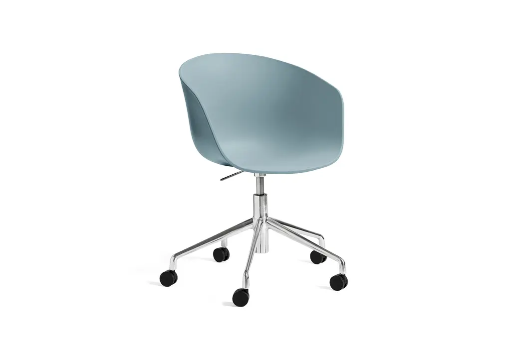 Now made with 100% recycled post-consumer plastic, the About A Chair 52 Task Armchair is distinguished by its height-adjustable caster base and curved shell that hugs the body. Similar in style to the About A Chair 252, the 52 model has a slightly lower back and higher armrests.