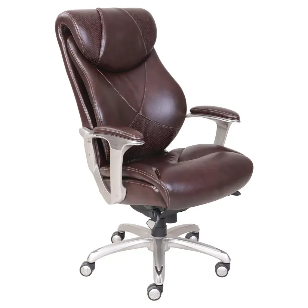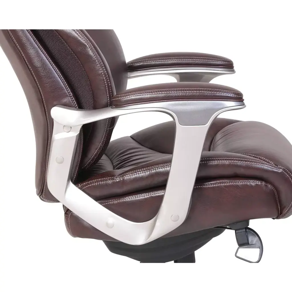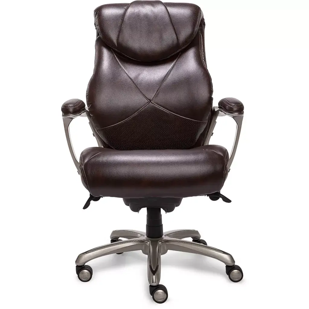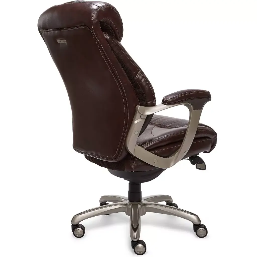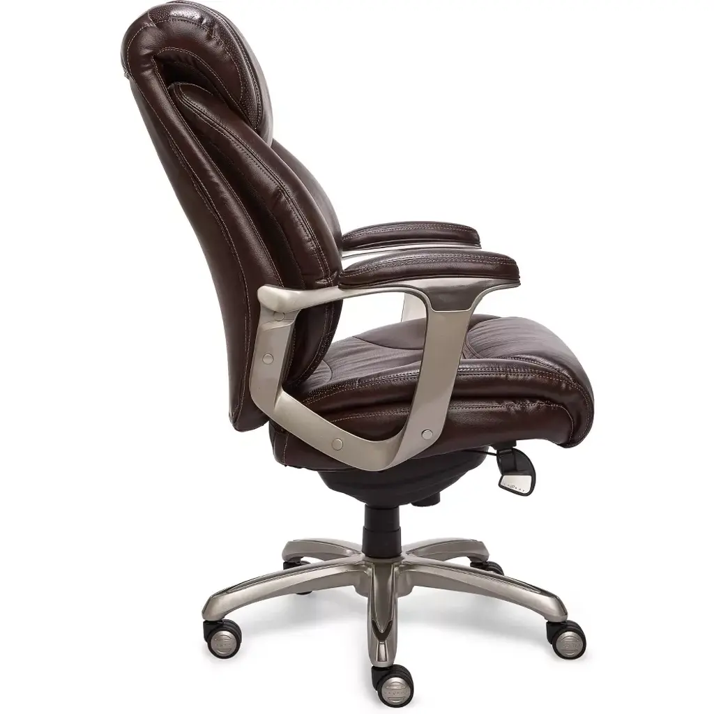Quality and craftsmanship from a trusted brand known for quality, innovative craftsmanship and comfort, the La-Z-Boy Cantania ComfortCore Innovations AIR Technology Executive Office Chair delivers advanced performance for exceptional support and comfort at work and play. Built to last, this executive office chair features a thicker plywood subcore, reinforced back bar and heavy-duty castors for durability you can count on for all your day-to-day activities.Crafted with painted components, this high-back office chair with hand-sculpted arms is upholstered in soft bonded leather to showcase comfortable, contemporary style with modern performance ideal for any office, home or entertainment space. The casters are intended for use on carpet and not recommended for use on tile or hardwood floors. LA-Z-BOY® is a trademark of LA-Z-BOY® Incorporated and is used under license to Living Style (Singapore) Pte. Limited.