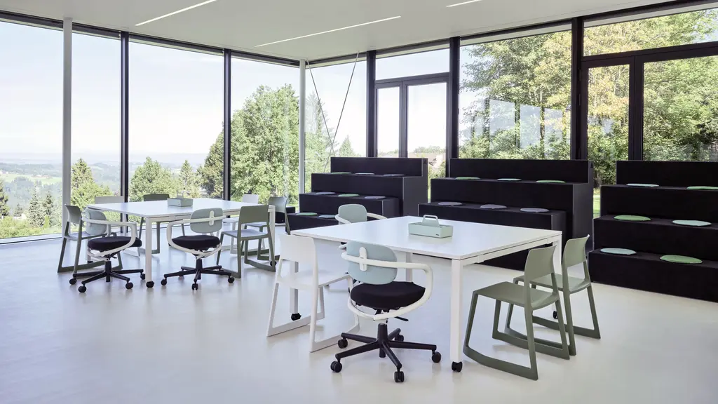 The Allstar office chair by Konstantin Grcic imparts a relaxed home-like feel and sense of familiarity. Its rounded form exudes comfort and yields a calming influence on the fast-paced dynamic of today's offices. Allstar also satisfies all the necessary functions of a task chair, allowing it to be used wherever high functional performance is desired but a classic office chair would not be appropriate for aesthetic reasons – an especially ideal choice for modern workplace concepts.