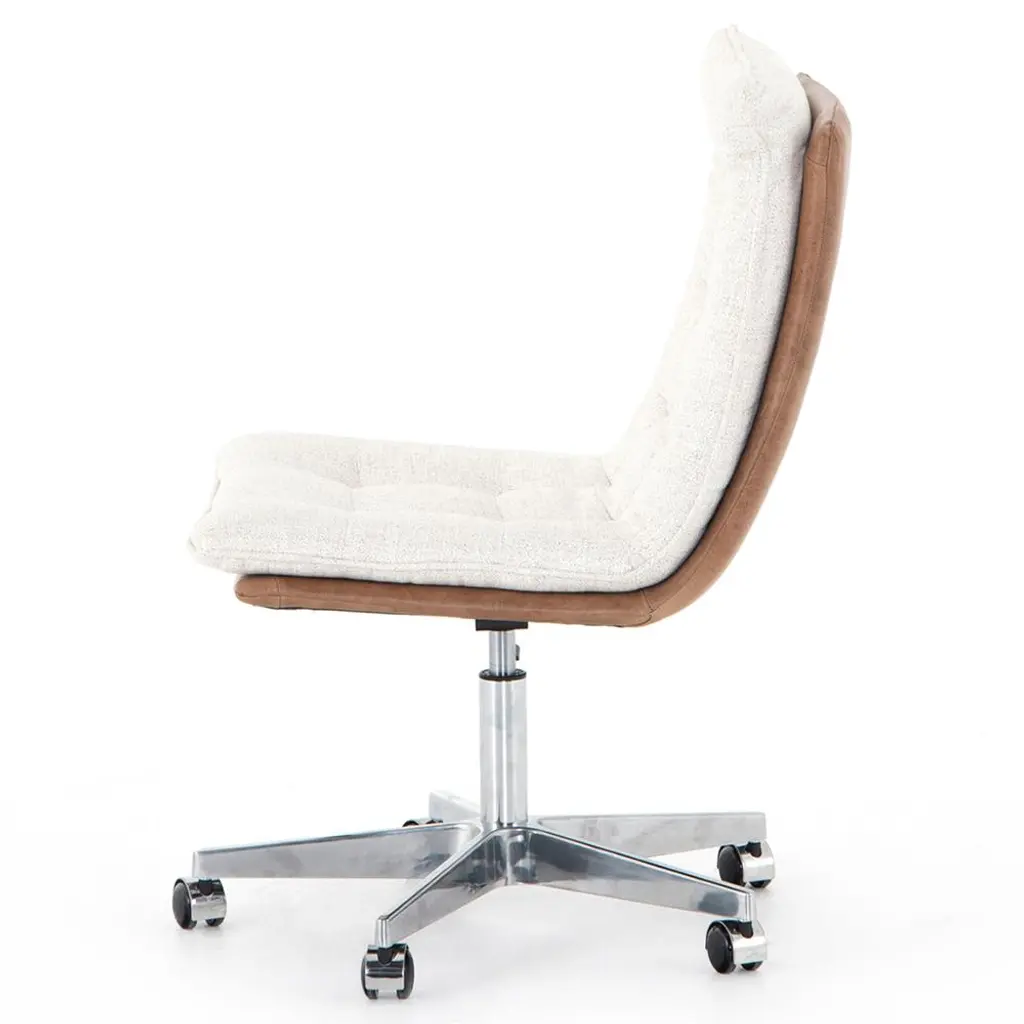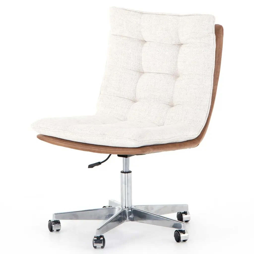Amir Modern Tufted Cream Upholstered Aluminum Casters Rolling Office Side Chair