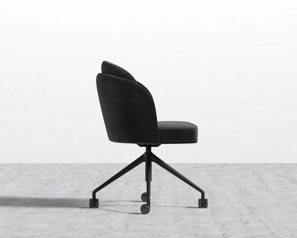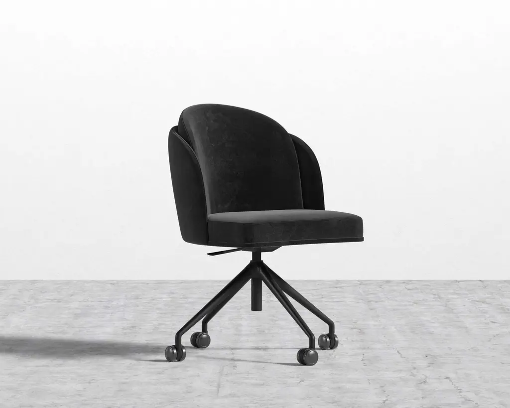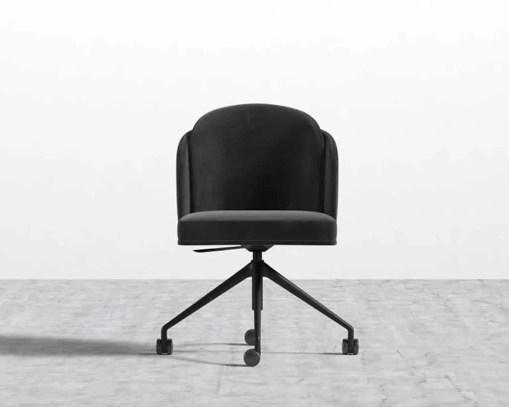 The timeless silhouette of the Angelo Office Chair exudes luxury within any office setting. The sleek black metal base complements the robust and accommodating seat featuring our premium filled backrest. Angelo's chic ambiance creates an indulgent work experience, adding to your space's overall aesthetic. Bring Italian inspired design to your office space with this modern piece available in your choice of premium upholstery. Explore our entire Angelo Collection here.